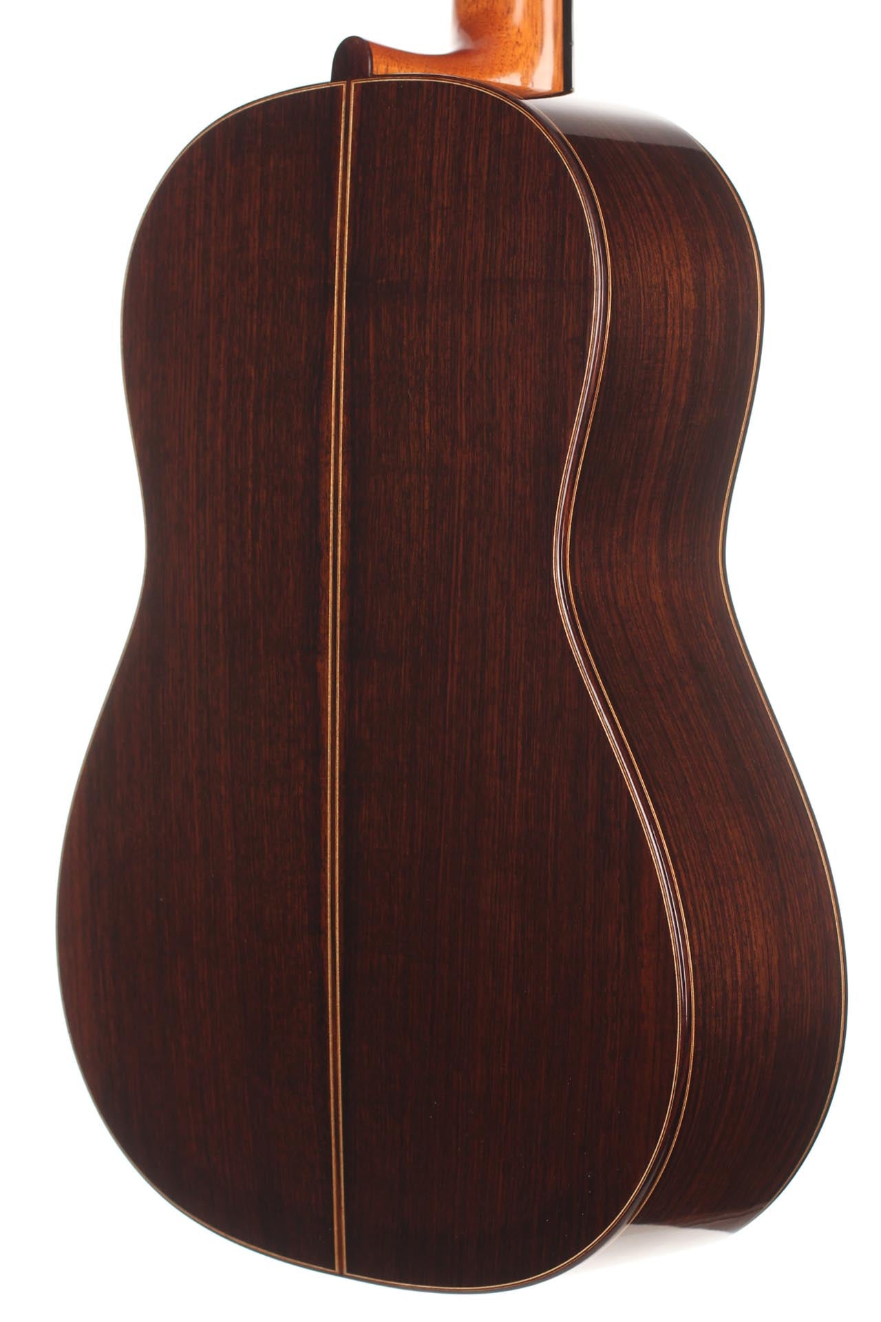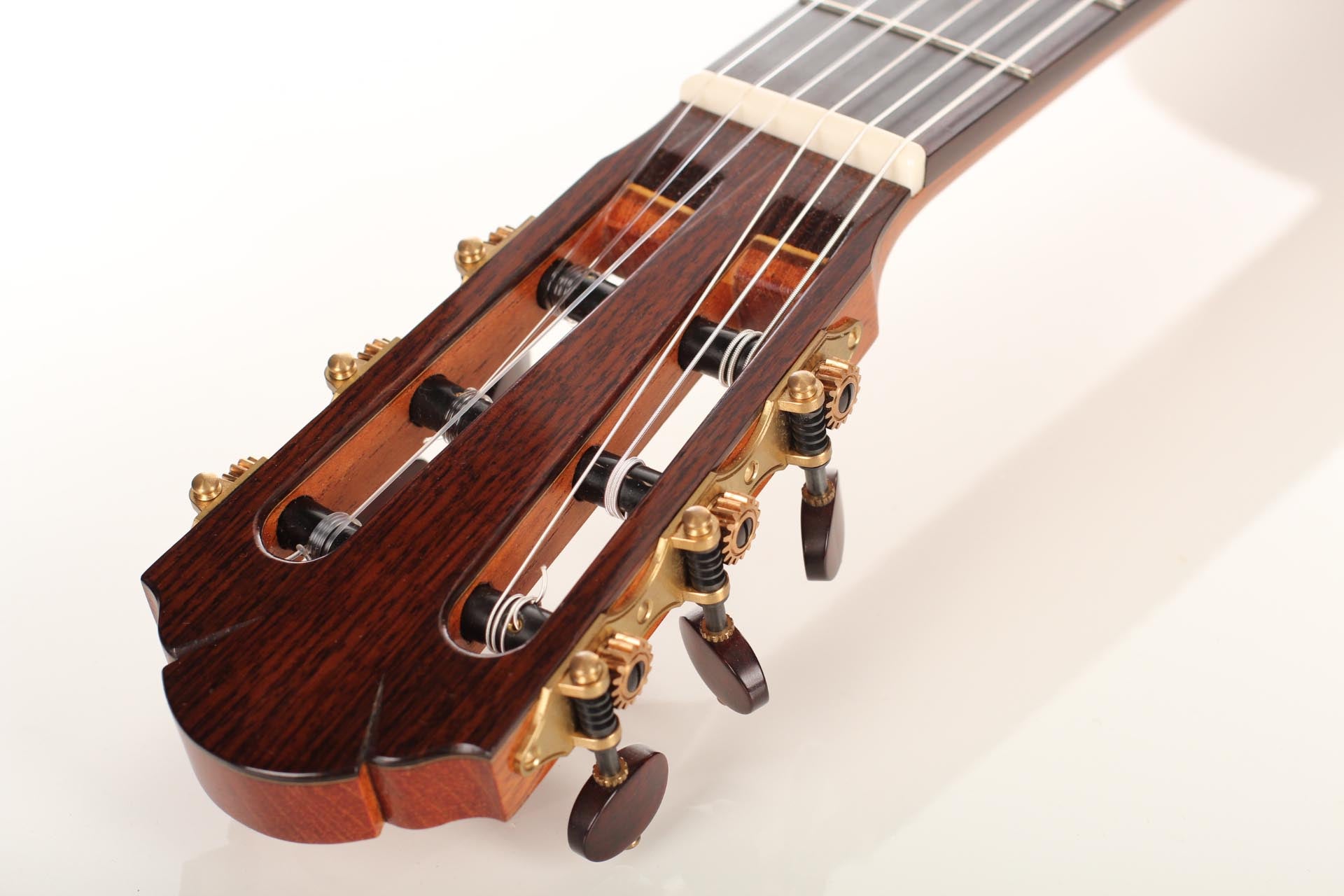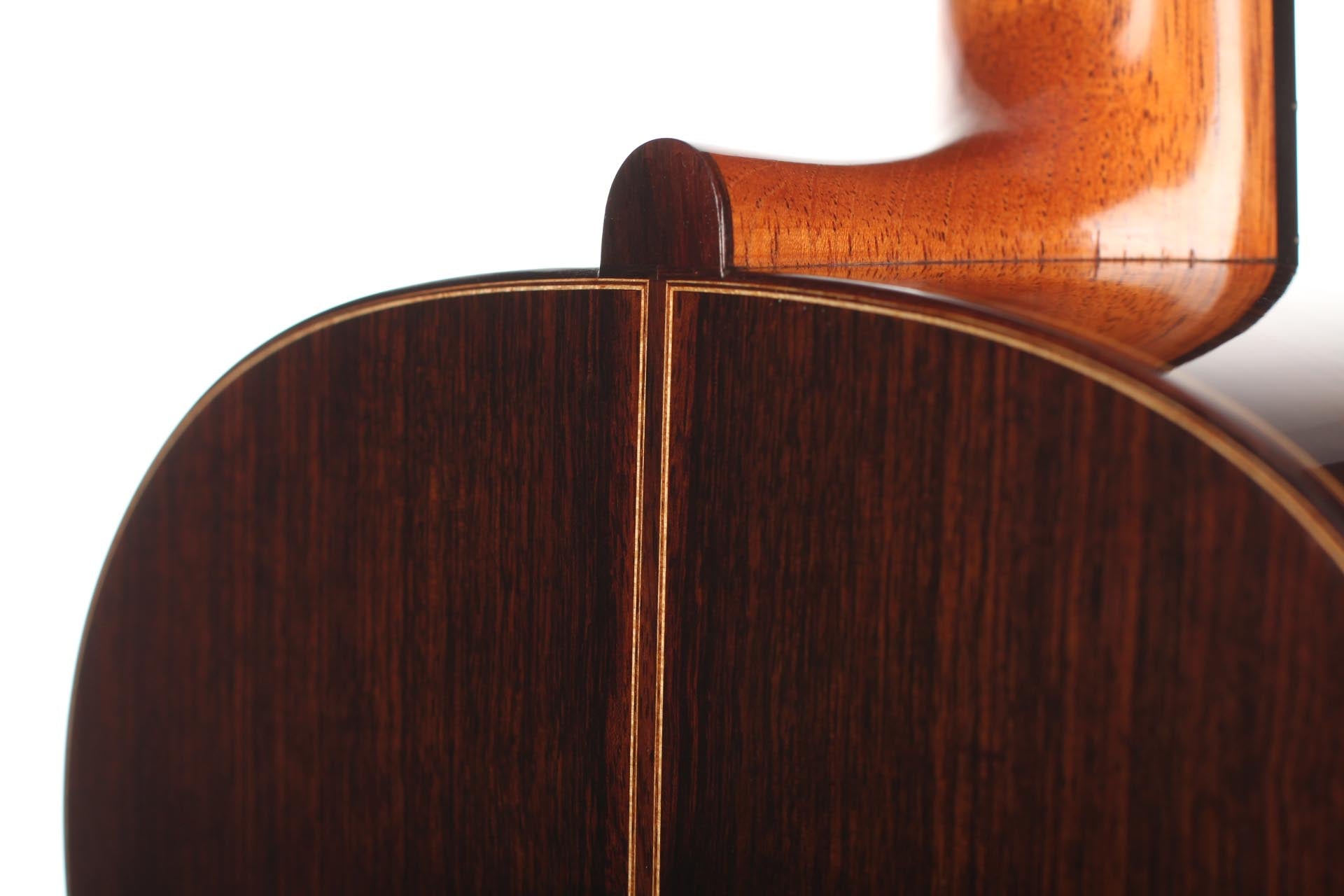 All Stenzel guitars have a unique neck and fingerboard shape yielding considerable benefits for playability and giving the guitarist more freedom to focus attention on the music. The construction of his instruments is thought out in the minutest detail. The top is made of spruce while back and sides are made of Indian Rosewood. This guitar is in very good condition and only has some slight handling marks. The tuning machines are made by Klaus Scheller. A Hiscox Pro II case is included.