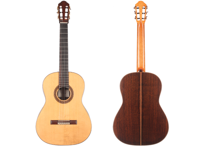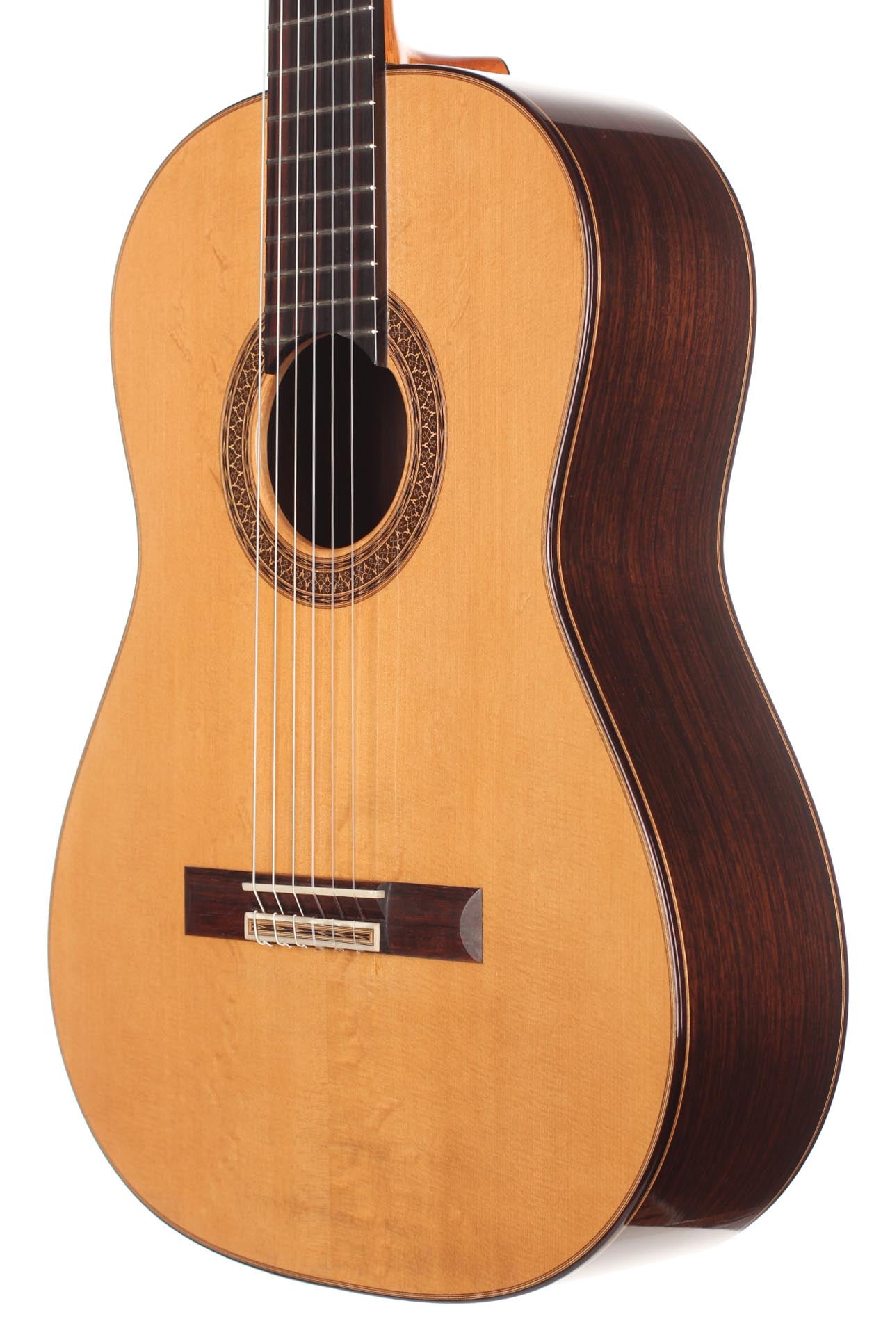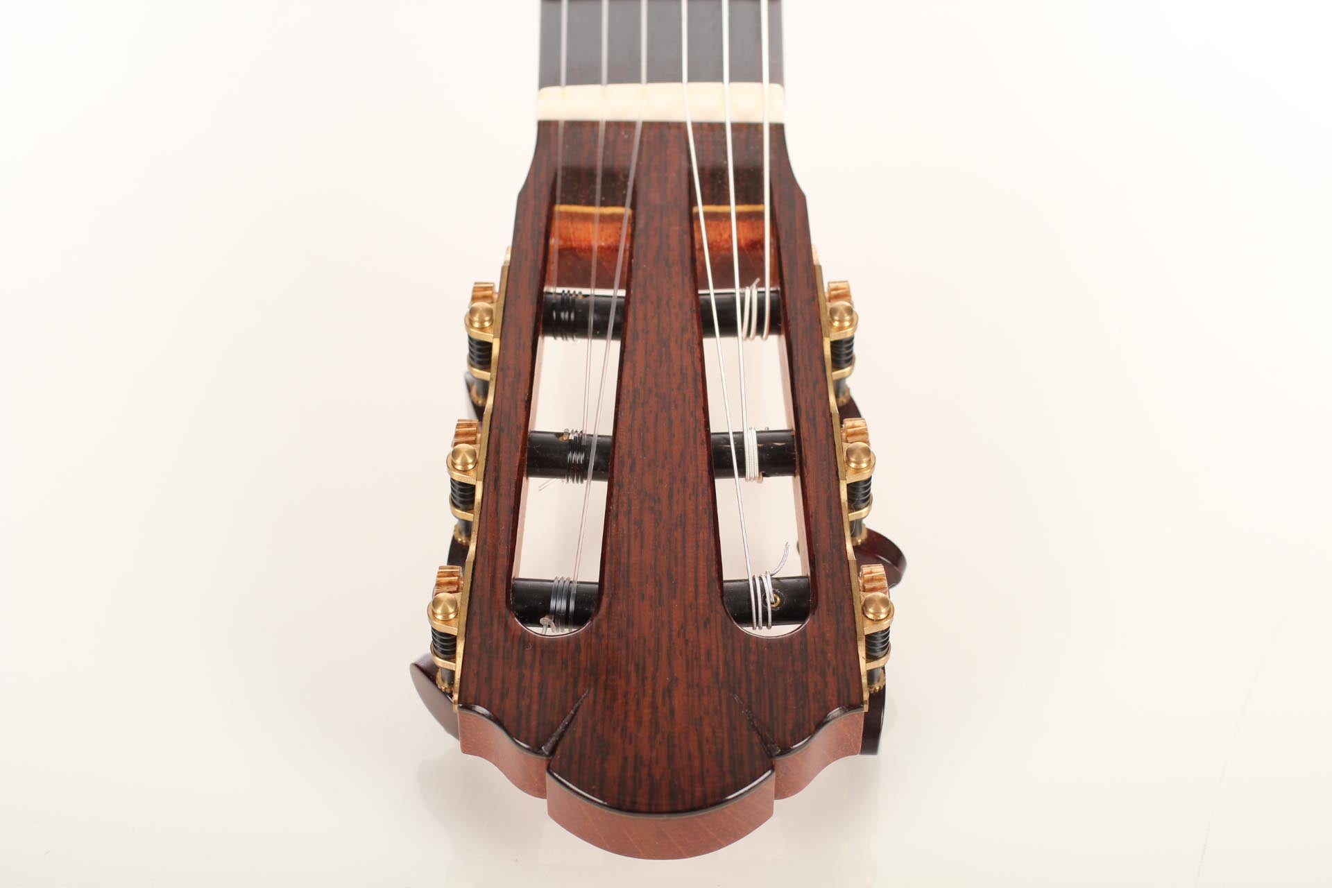 All Stenzel guitars have a unique neck and fingerboard shape yielding considerable benefits for playability and giving the guitarist more freedom to focus attention on the music. The construction of his instruments is thought out in the minutest detail. The top is made of spruce while back and sides are made of Indian Rosewood. This guitar is in very good condition and only has some slight handling marks. The tuning machines are made by Klaus Scheller. A Hiscox Pro II case is included.