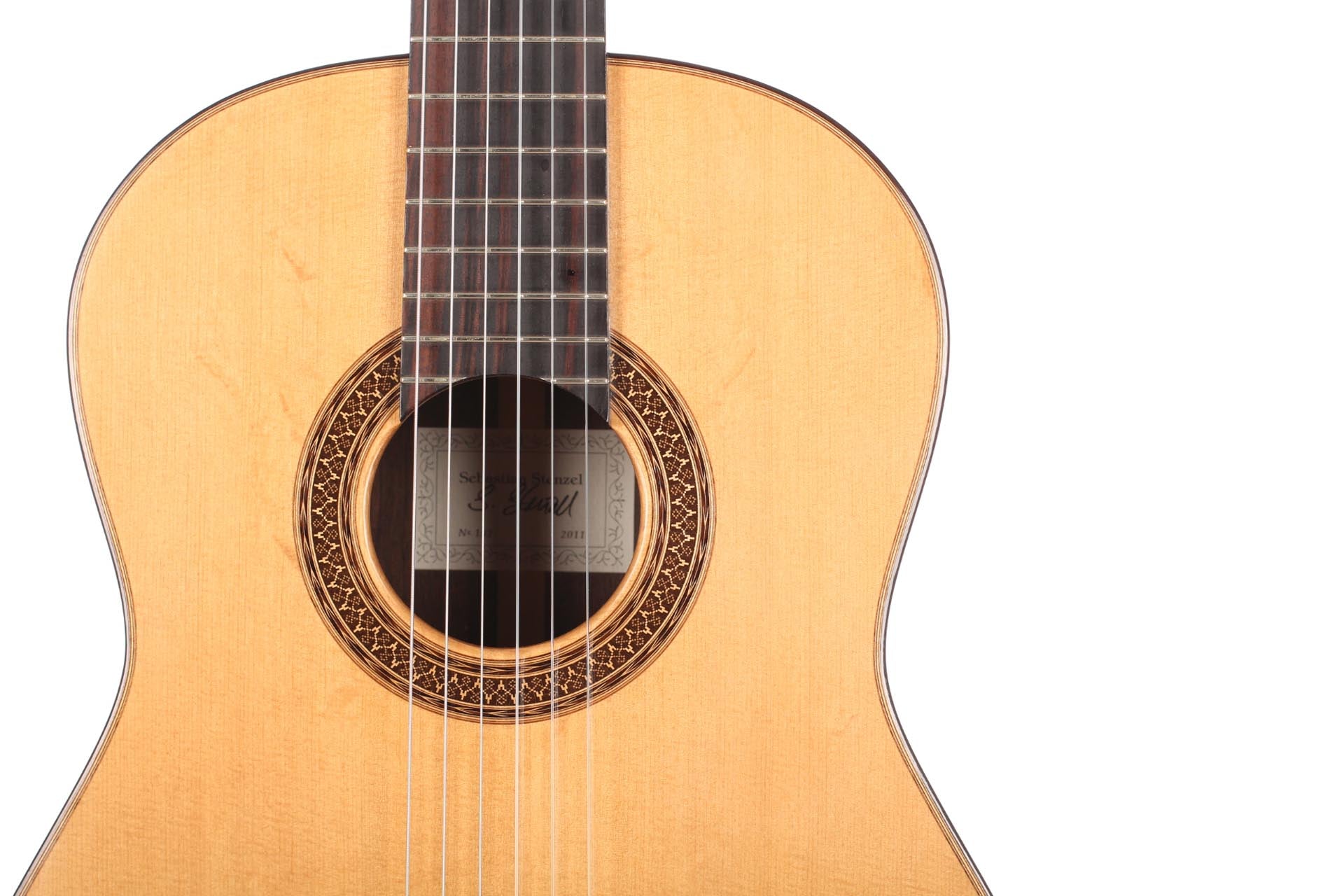 Sebastian Stenzel has constructed guitars since 1989 when he began an apprenticeship at the workshop of Gert Esmyol. He finished this apprenticeship in 1991 and focused on the development of his own guitar model. In 1996 he finally opened his own workshop in Munich. Shortly after, in 1998, he was awarded as part of his master’s certificate with the master price of the Bavarian state government. As a lecturer in “theory of guitar making”, he has taught at the Mozarteum in Salzburg since 2002. Since 2011 he has worked at his workshop in Emmendingen. In accordance with Sebastian Stenzel’s sound ideal, he makes guitars that “have sonorous, floating basses, a warm, creamy mid-range and lyrical, singing trebles. The sound should offer the musician all possibilities of sound shaping and dynamics, without being obtrusive.” (Quote: S. Stenzel)