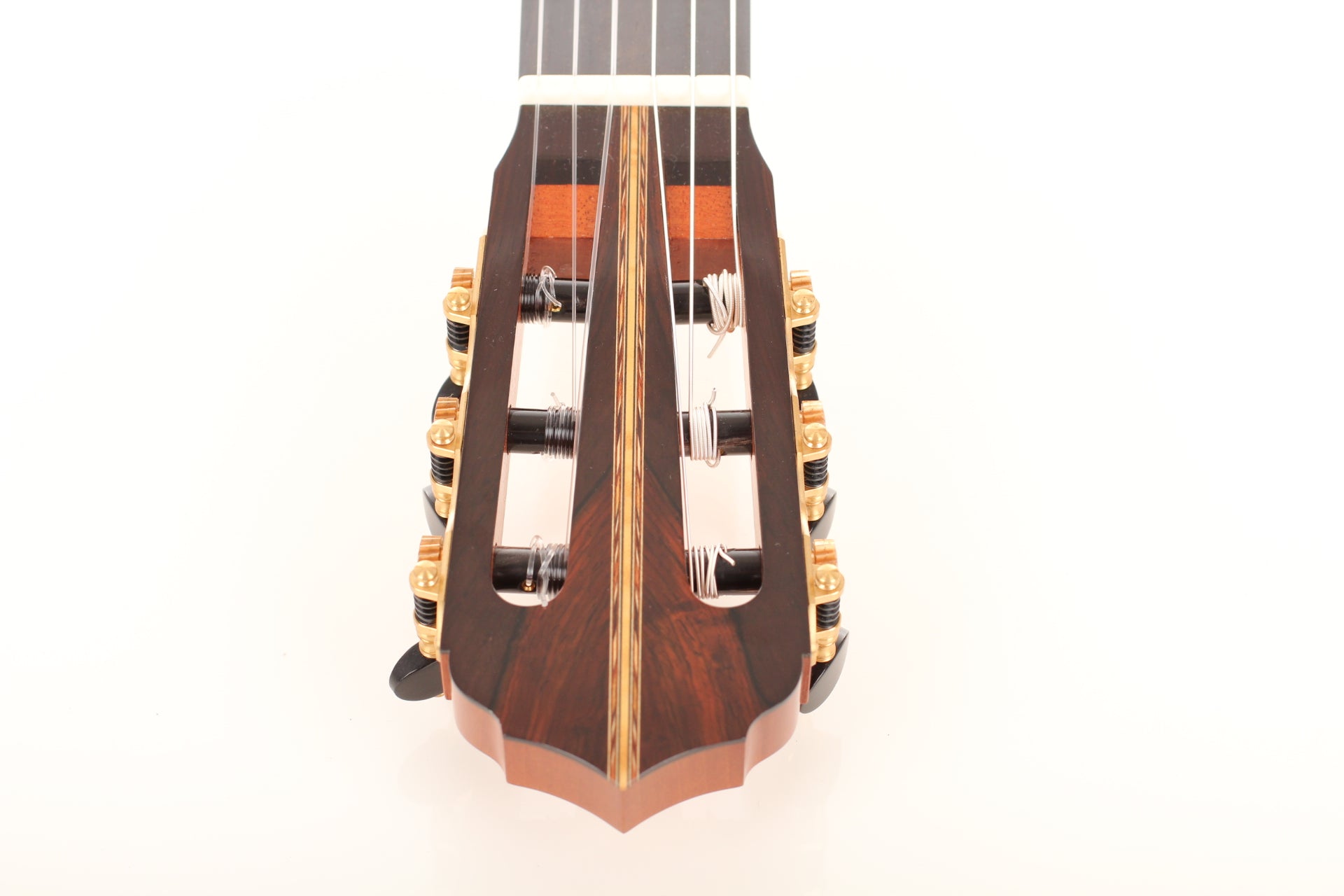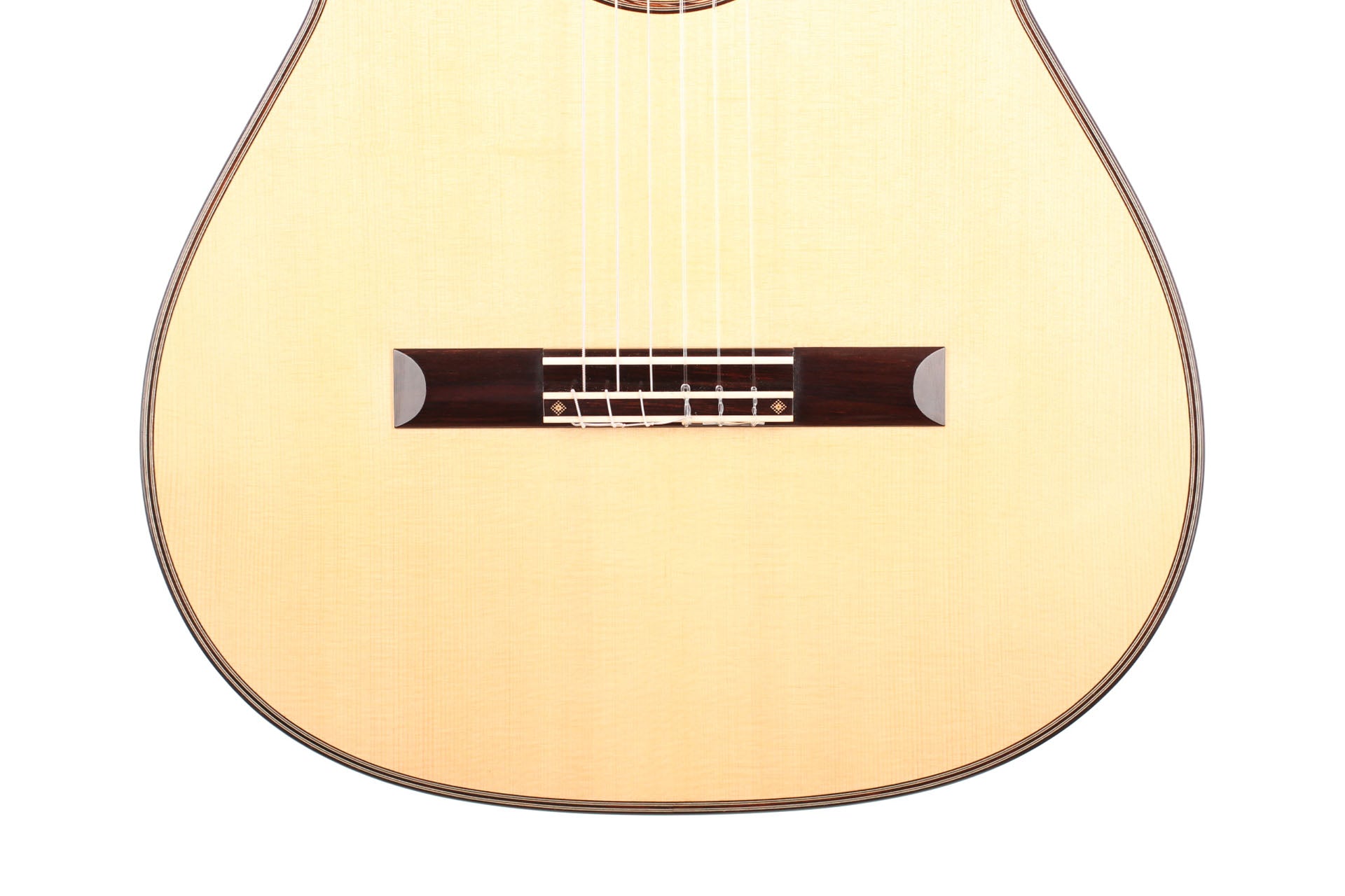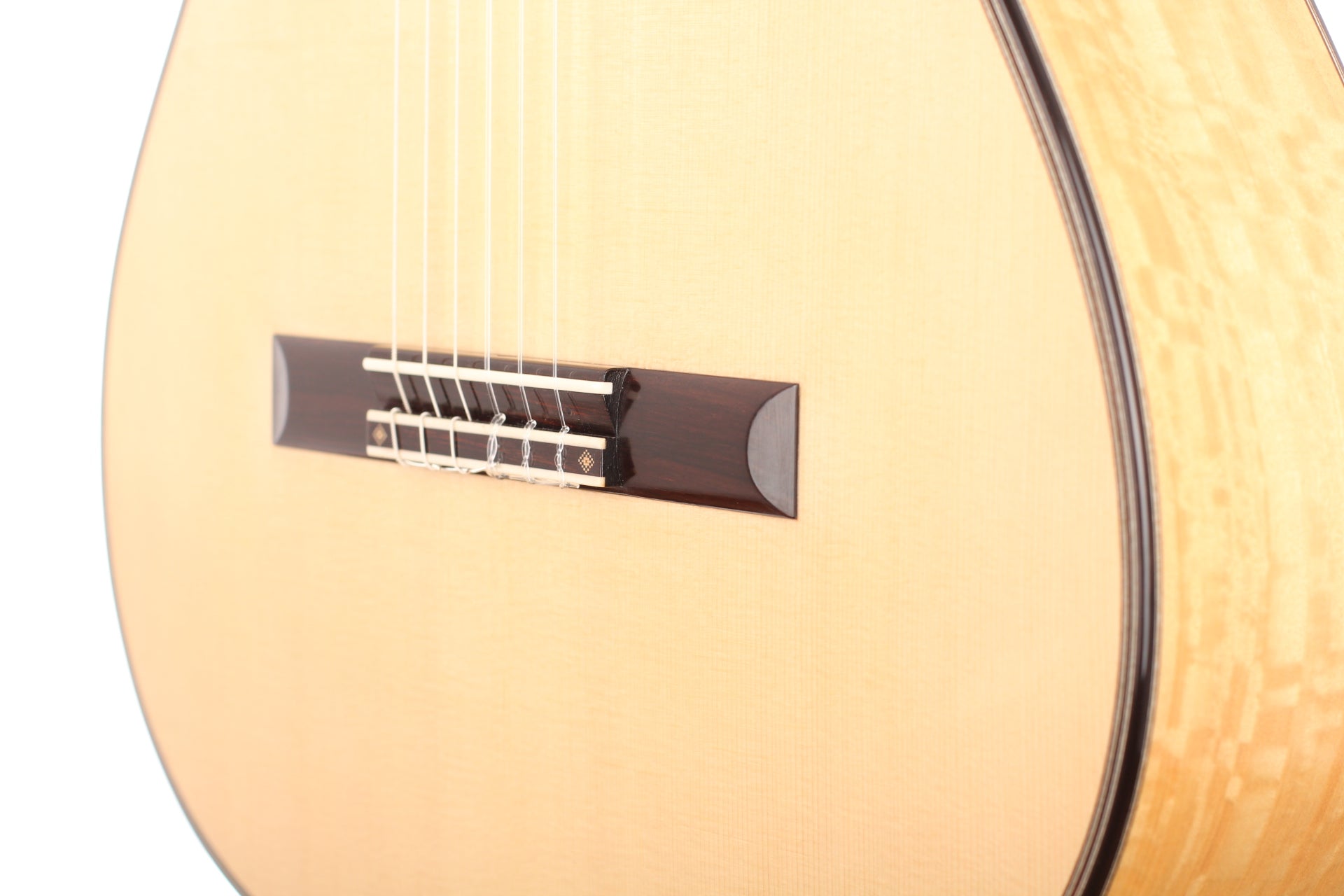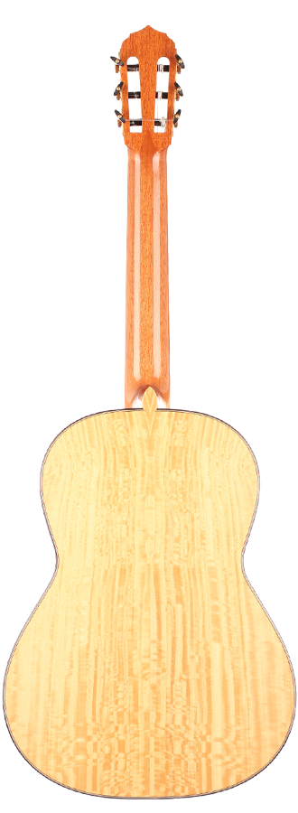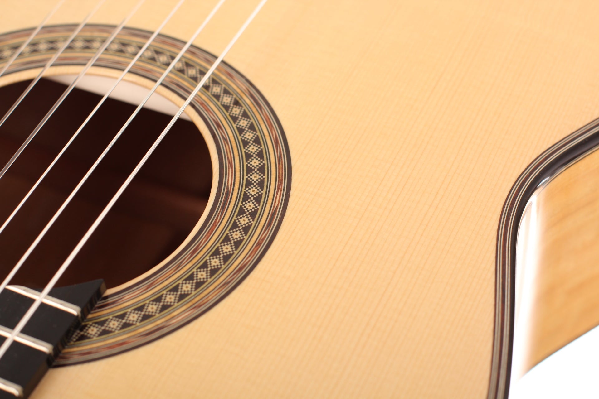 His concert guitars (like this one) owe their inspiration to the instruments of Antonio de Torres, the early 20th century Spanish makers. By combining design elements from wonderful makers with his own ideas he produces instruments which are traditional in style, lightly built and very responsive. He's aiming for a sound which has real beauty, with the notes evenly focused and well balanced across the whole musical spectrum. This guitar has Satinwood back and sides and a spruce wood top. The tuners of this guitar are made by Klaus Scheller. A hardshell case is included.
