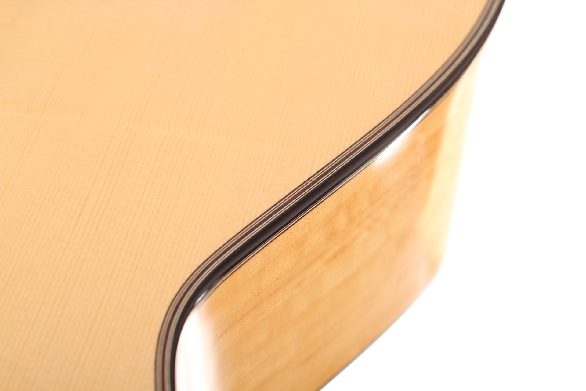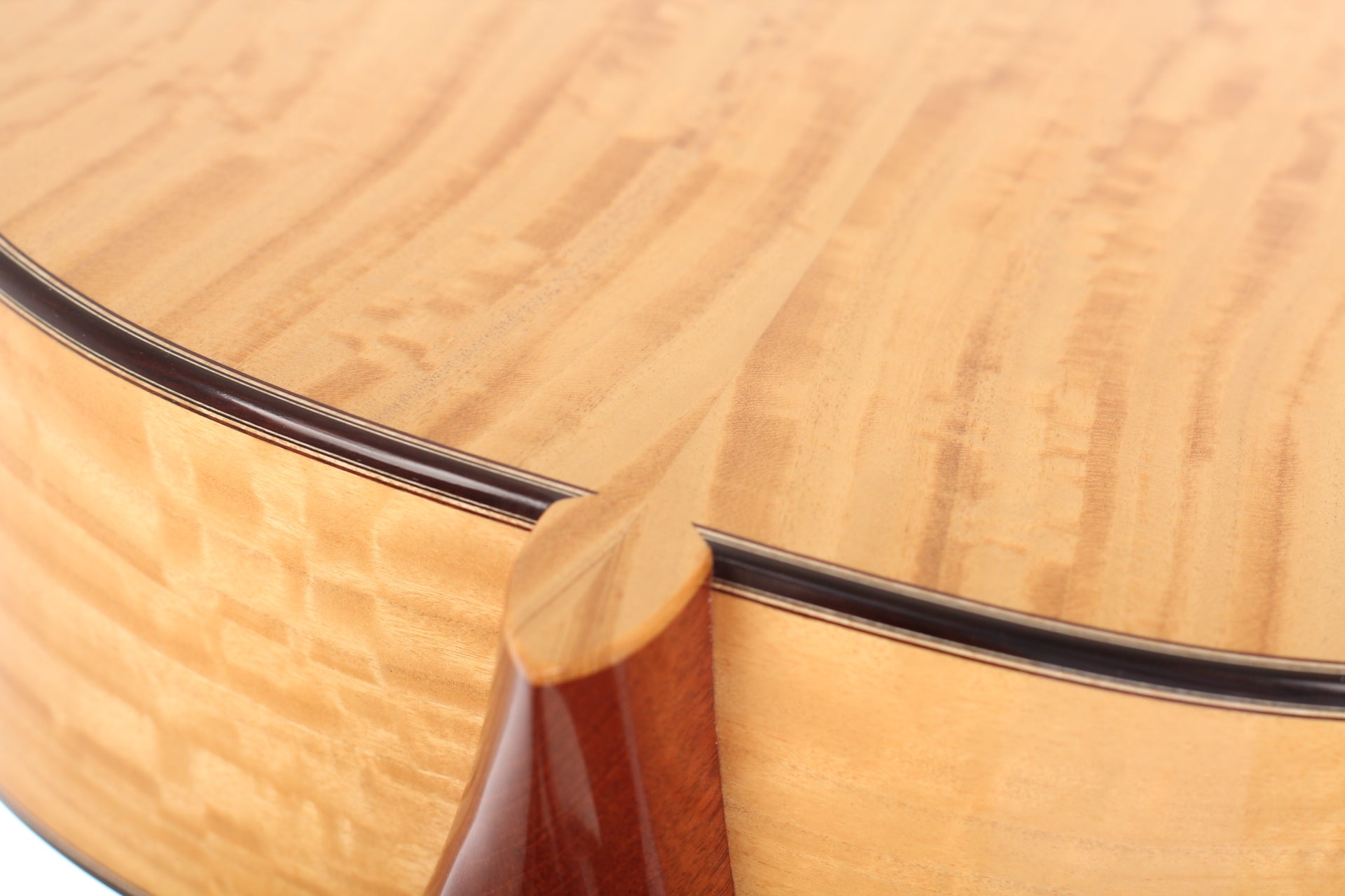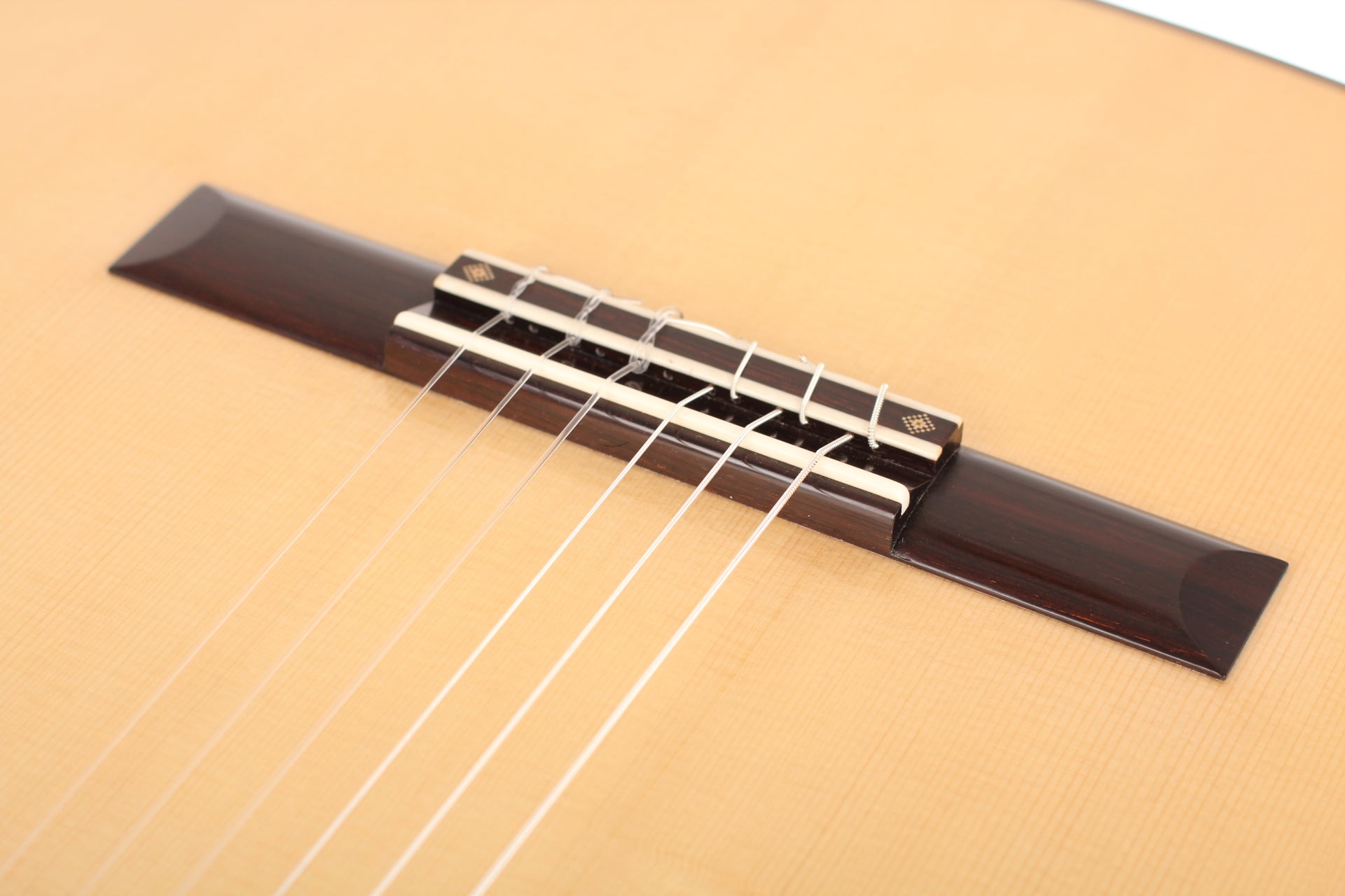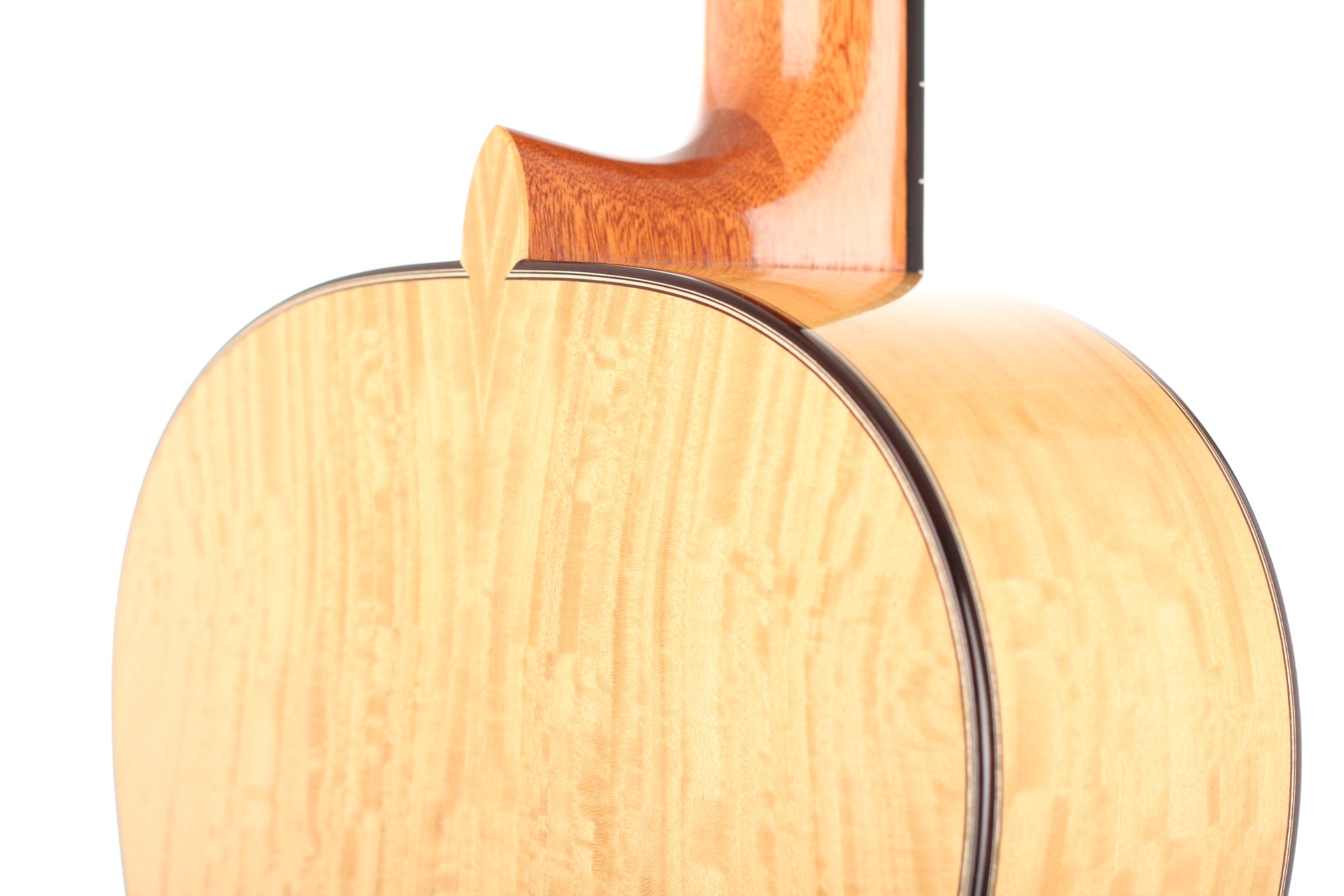 His concert guitars (like this one) owe their inspiration to the instruments of Antonio de Torres, the early 20th century Spanish makers. By combining design elements from wonderful makers with his own ideas he produces instruments which are traditional in style, lightly built and very responsive. He's aiming for a sound which has real beauty, with the notes evenly focused and well balanced across the whole musical spectrum. This guitar has Satinwood back and sides and a spruce wood top. The tuners of this guitar are made by Klaus Scheller. A hardshell case is included.