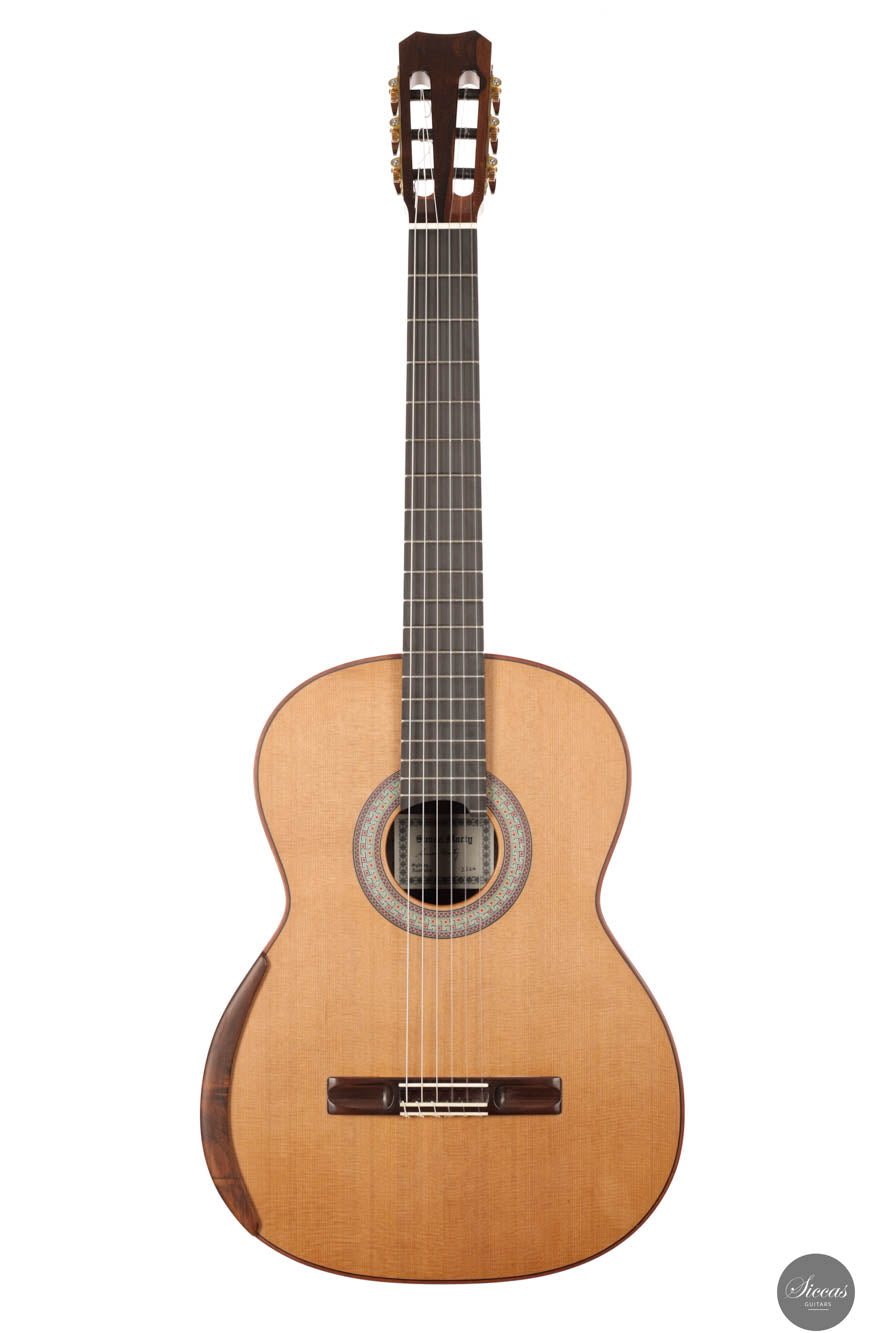 Diese brandneue Gitarre präsentiert eine hervorragend gefertigte Zedernholzdecke, ausgewählt wegen ihrer gleichmäßigen Maserung und außergewöhnlichen Resonanz, ergänzt durch markantes Wengeholz für Rücken und Seiten. Diese exotische Kombination verbessert nicht nur die optische Anziehungskraft der Gitarre, sondern bereichert auch ihre Klangqualität, indem sie eine einzigartige Farbe hinzufügt, die sowohl ihre Ästhetik als auch ihre akustische Leistung hebt. Eine Simon Marty Gitarre zu besitzen, bekannt für die lange Warteliste aufgrund des außergewöhnlichen Rufs des Gitarrenbauers, ist eine bedeutende Errungenschaft und ein Privileg für ein Leben lang. Frisch aus seiner renommierten Werkstatt, steht das Modell 2024 als schwer fassbares Juwel, bereit, zum Kronjuwel in der Sammlung eines jeden anspruchsvollen Gitarristen zu werden.