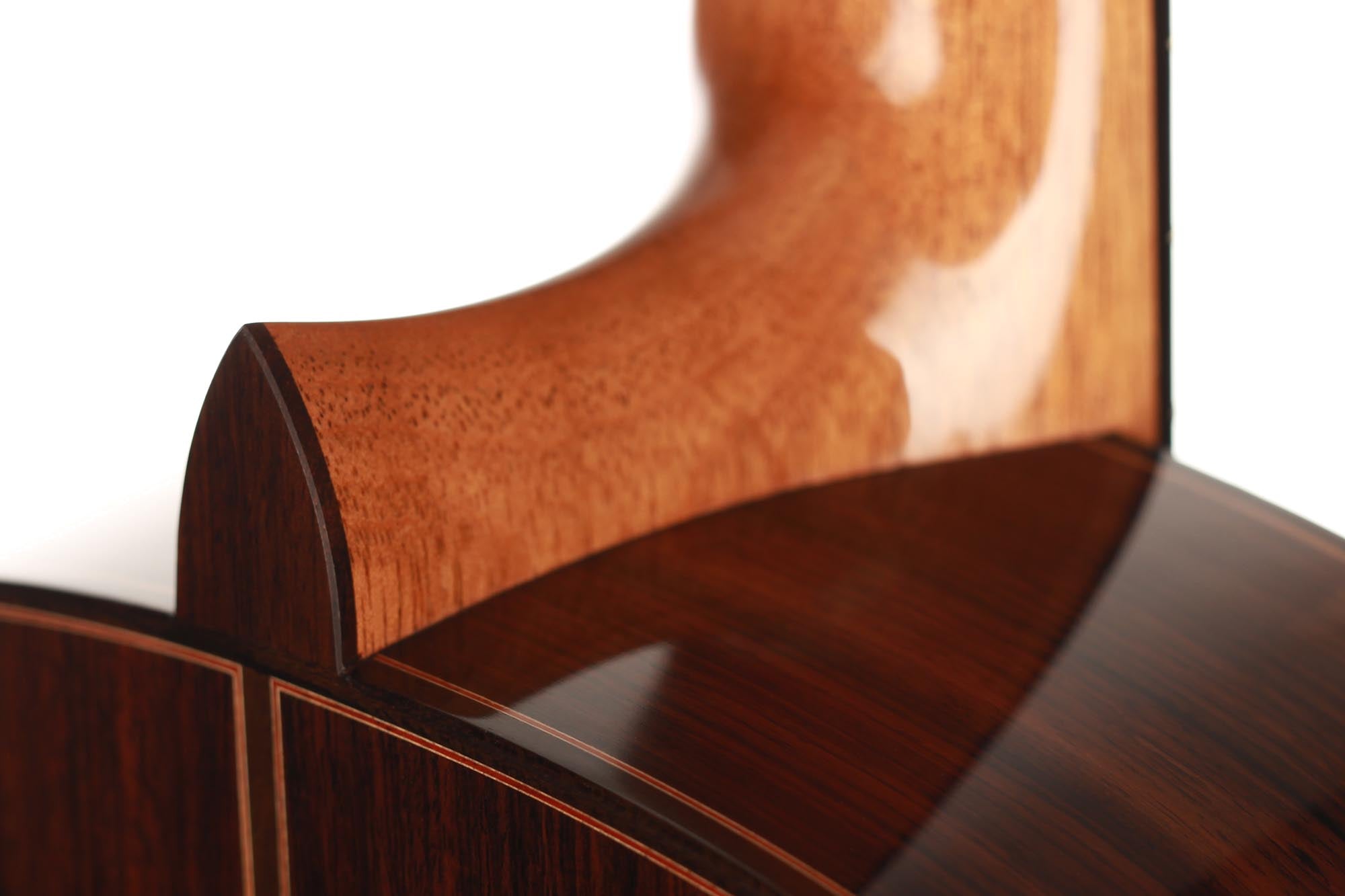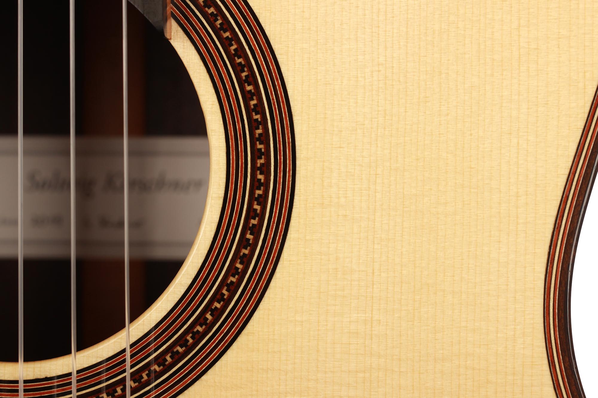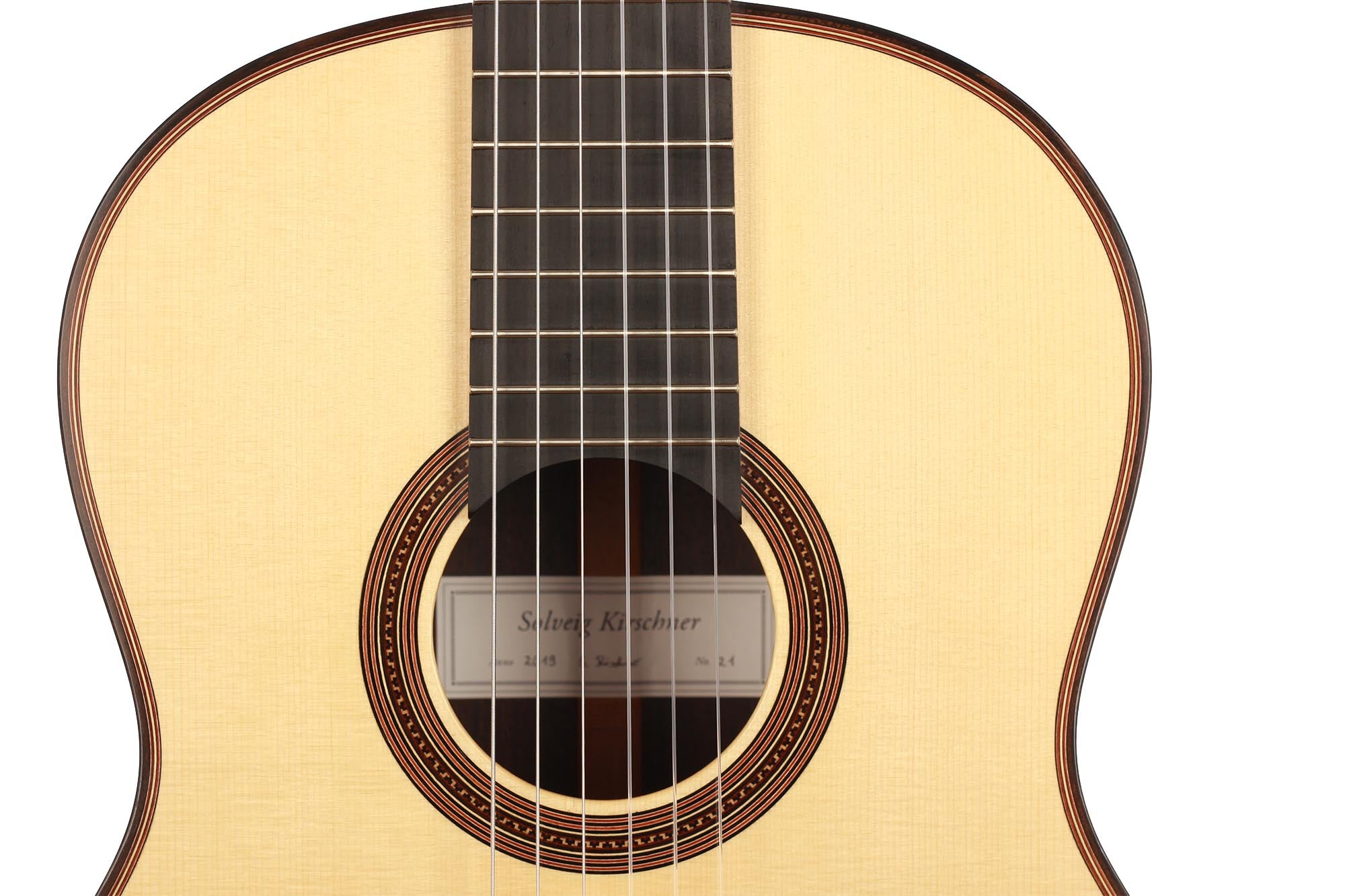 This beautiful guitar was built in 2019 and delivered by Solveig Kirschner during the 2019 Antwerp Guitar Festival. It is a love at first play, and we were not the only ones to think so. Solveig’s guitars made a really good impression during the sound comparison at the festival and we are now pleased to offer one of her instruments in our shop. The playability of this guitar is fantastic, and its volume is more than satisfying for any concert player. Moreover, the rich sound and warm depth of the basses make it an inspiring guitar that meets all the requirements of a first-class instrument.