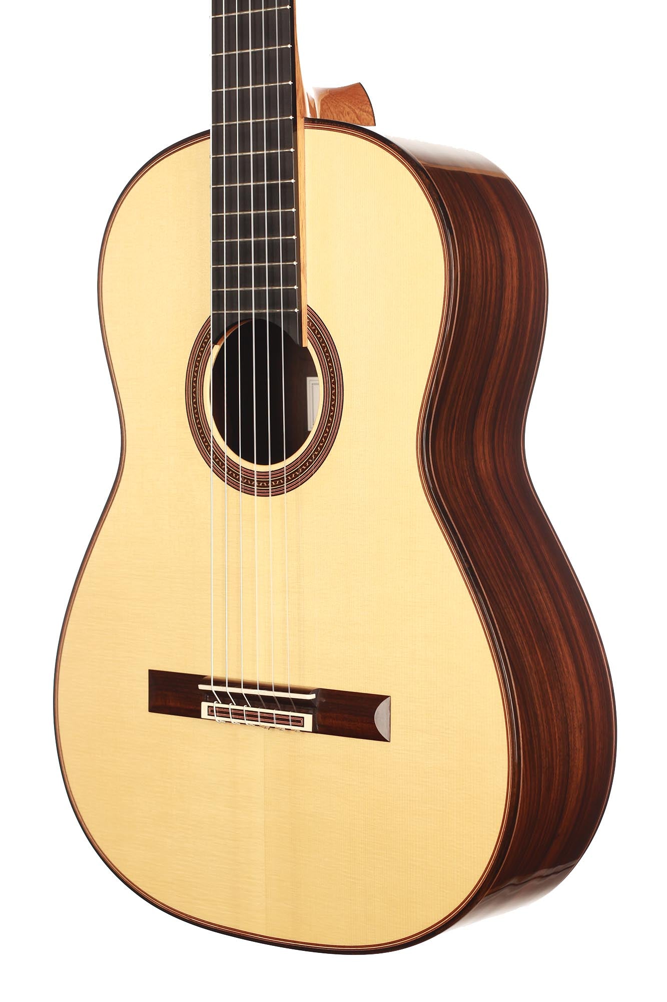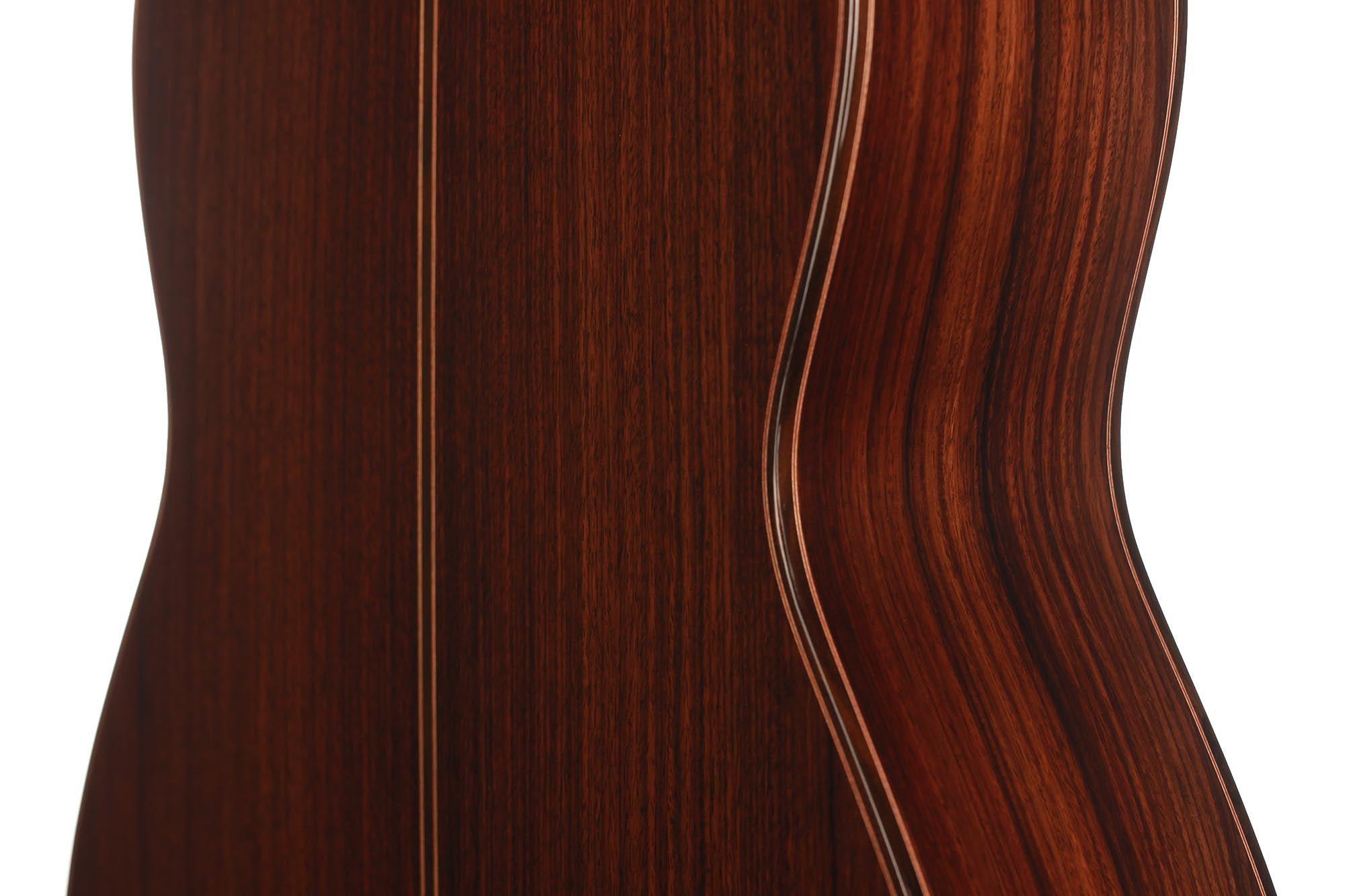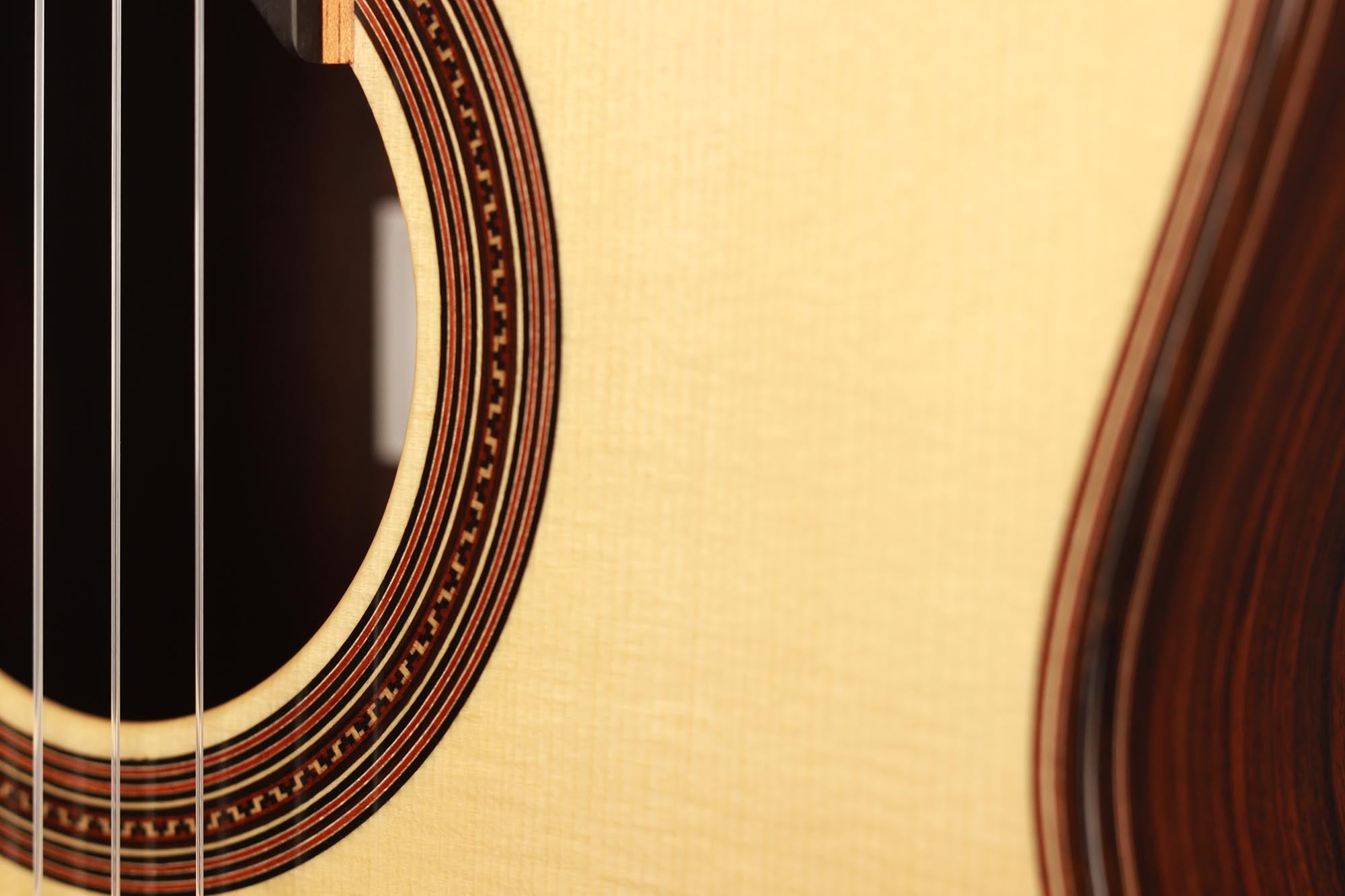 This beautiful guitar was built in 2019 and delivered by Solveig Kirschner during the 2019 Antwerp Guitar Festival. It is a love at first play, and we were not the only ones to think so. Solveig’s guitars made a really good impression during the sound comparison at the festival and we are now pleased to offer one of her instruments in our shop. The playability of this guitar is fantastic, and its volume is more than satisfying for any concert player. Moreover, the rich sound and warm depth of the basses make it an inspiring guitar that meets all the requirements of a first-class instrument.