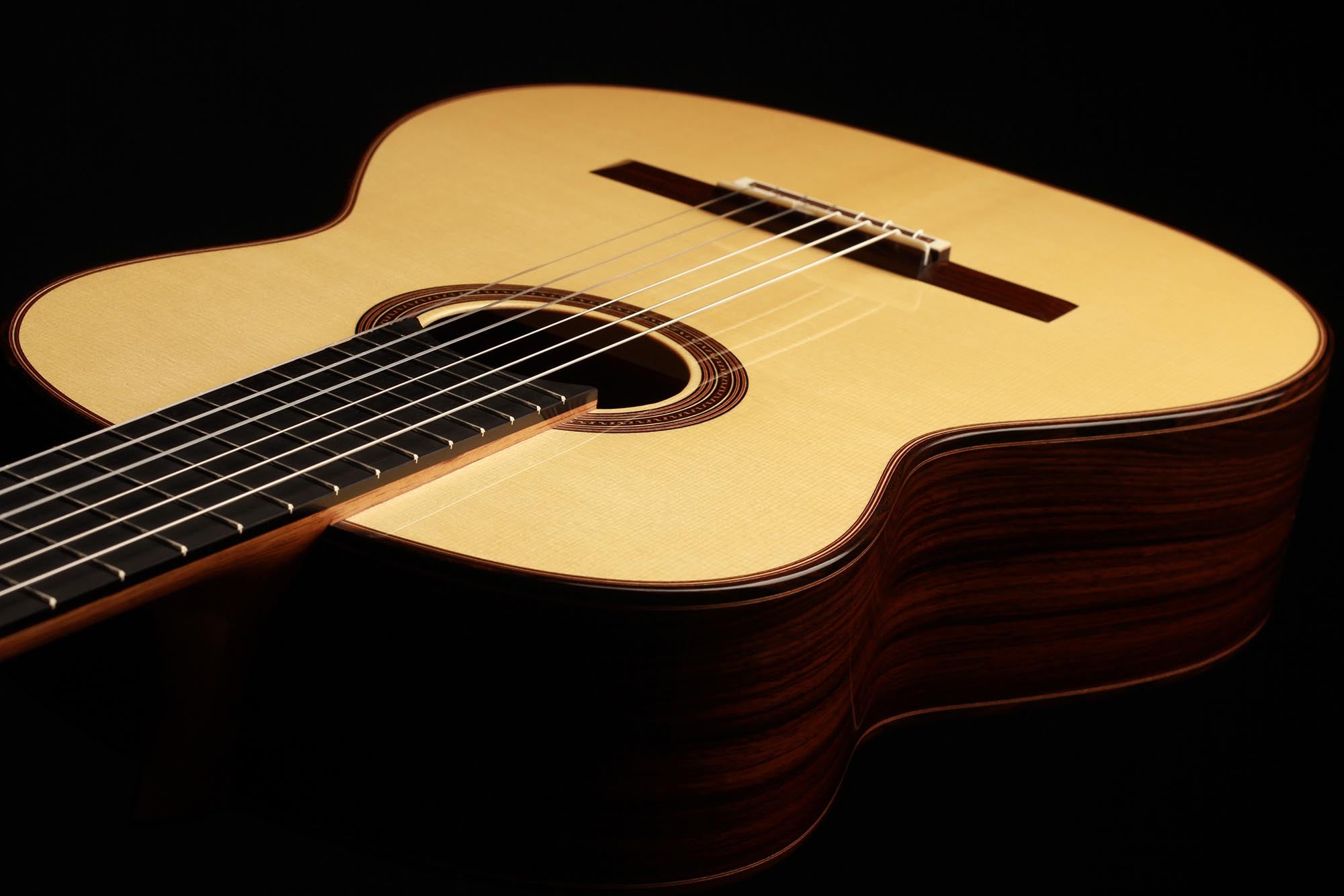Solveig studied lutherie at the State School of Musical Instrument Making in Mittenwald/Germany and now lives and works in Niedenstein/Germany, where she and her husband Andreas run a joint guitar workshop where her wonderful guitars are made. She only builds four to five guitars a year, but with the highest devotion and precision, creating breathtakingly beautiful instruments. Solveig’s guitars are traditionally built, very light and impressively powerful. Typical for her instruments is the charming and elegant sound of the trebles, which in combination with perfect balance and long sustain results in a fantastic singing guitar.