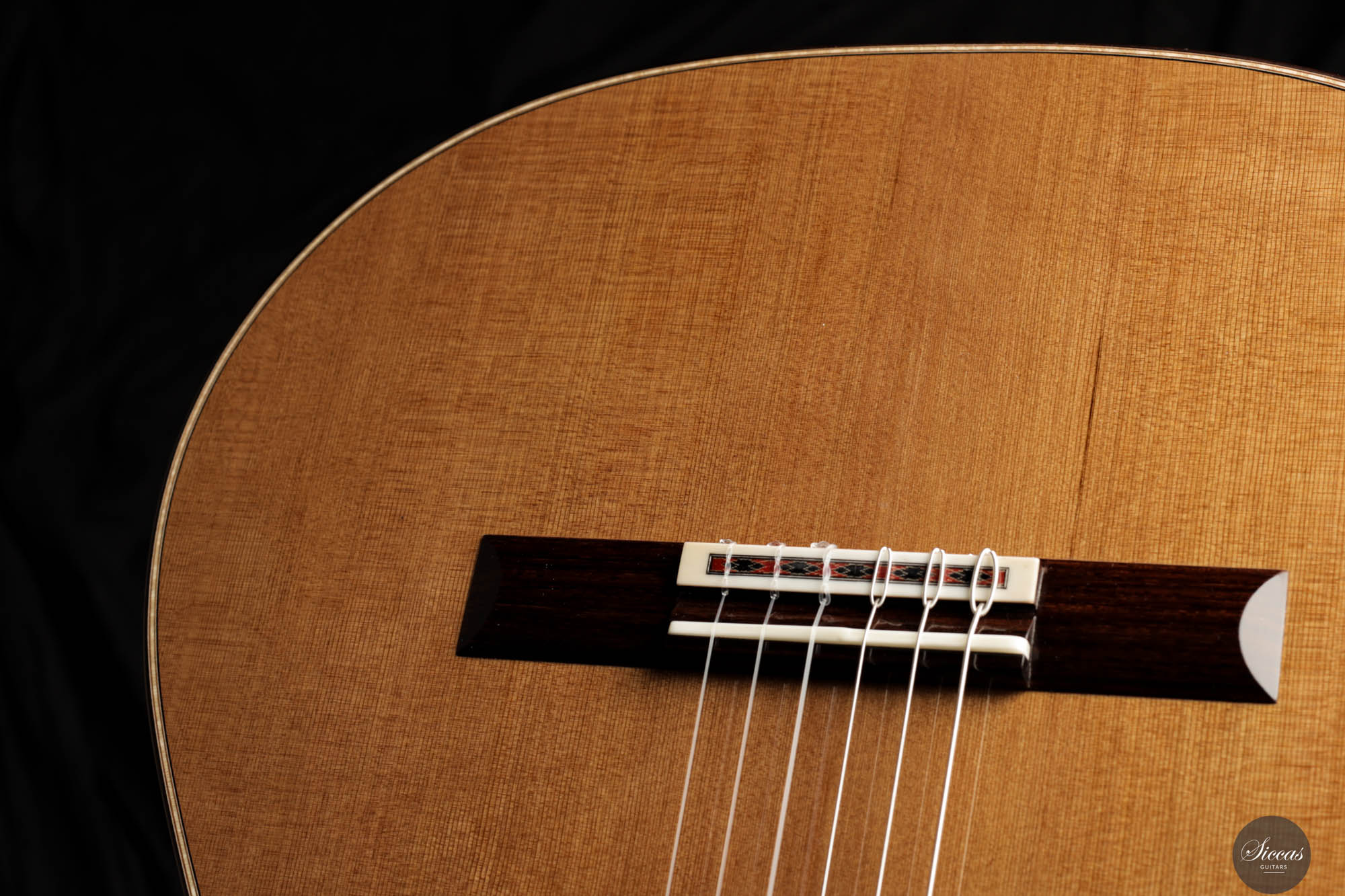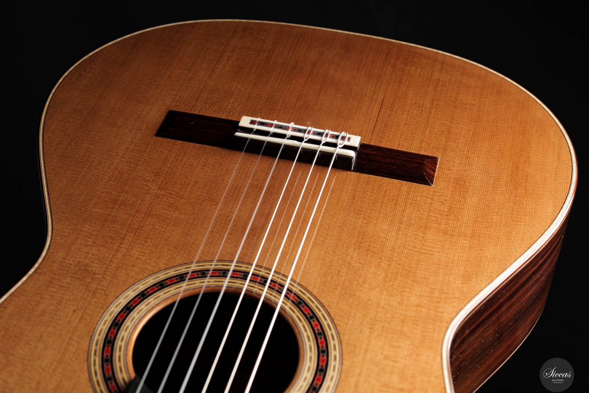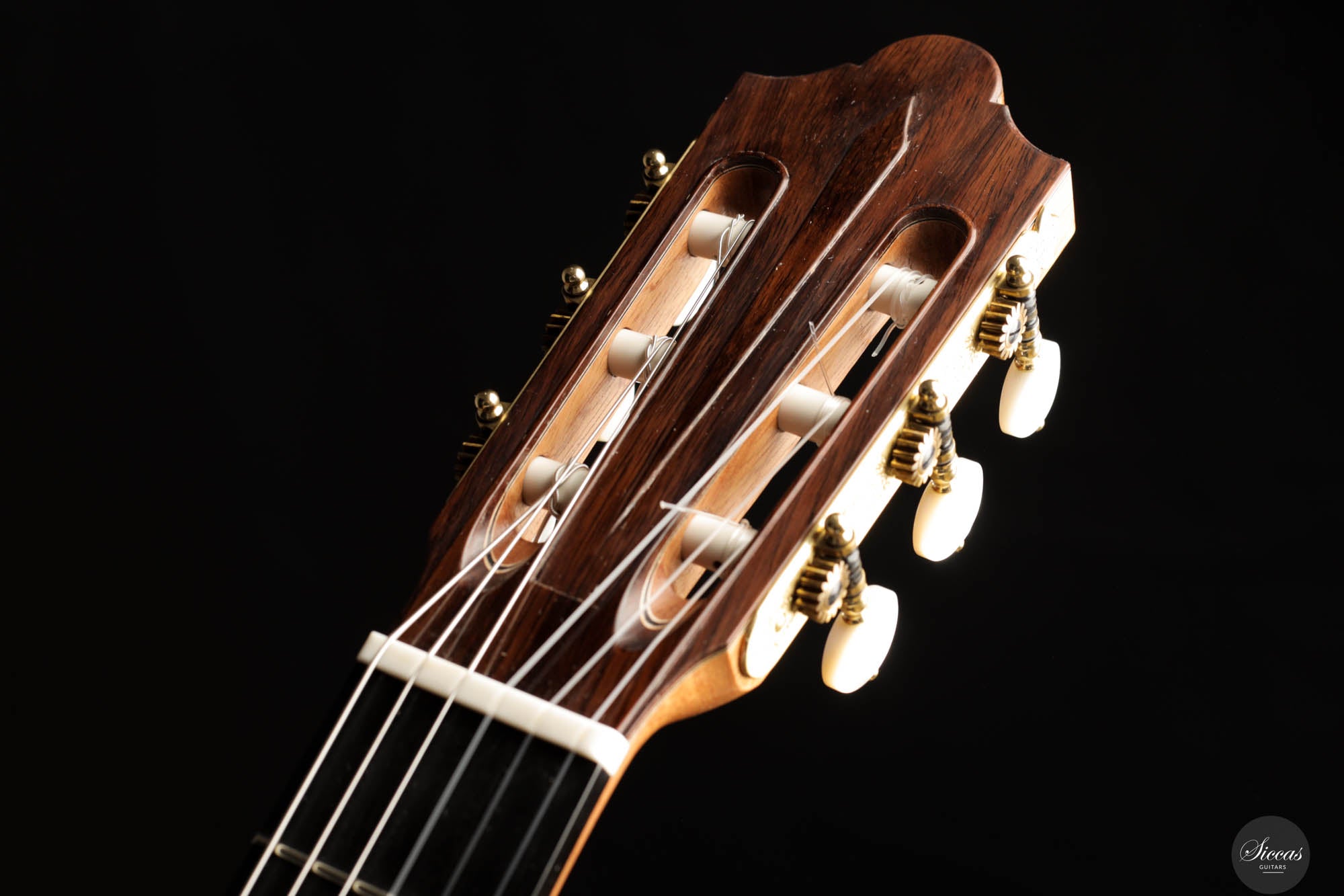 Klanglich ist diese Gitarre ein Wunderwerk, das komplexe, aber lyrische Höhen perfekt mit tiefen, kraftvollen Bässen ausbalanciert. Diese harmonische Mischung von Tönen macht die Gitarre außerordentlich vielseitig und gut geeignet für Konzertaufführungen, um den vielfältigen Anforderungen von Konzertinterpreten gerecht zu werden. Das komplexe Klangprofil und die kraftvolle Projektion der Gitarre machen sie zur idealen Wahl für eine breite Palette von Musikstilen und -einstellungen. Ob in einem Konzertsaal oder einem intimen Aufführungsort, diese Gitarre verspricht, einen Klang zu liefern, der sowohl fesselnd als auch erfüllend ist. Ihre Konstruktion spiegelt ein tiefes Verständnis von Friederichs Vermächtnis wider, was sie nicht nur zu einem Instrument macht, sondern zur Fortsetzung einer geschichtsträchtigen Tradition im Gitarrenhandwerk.