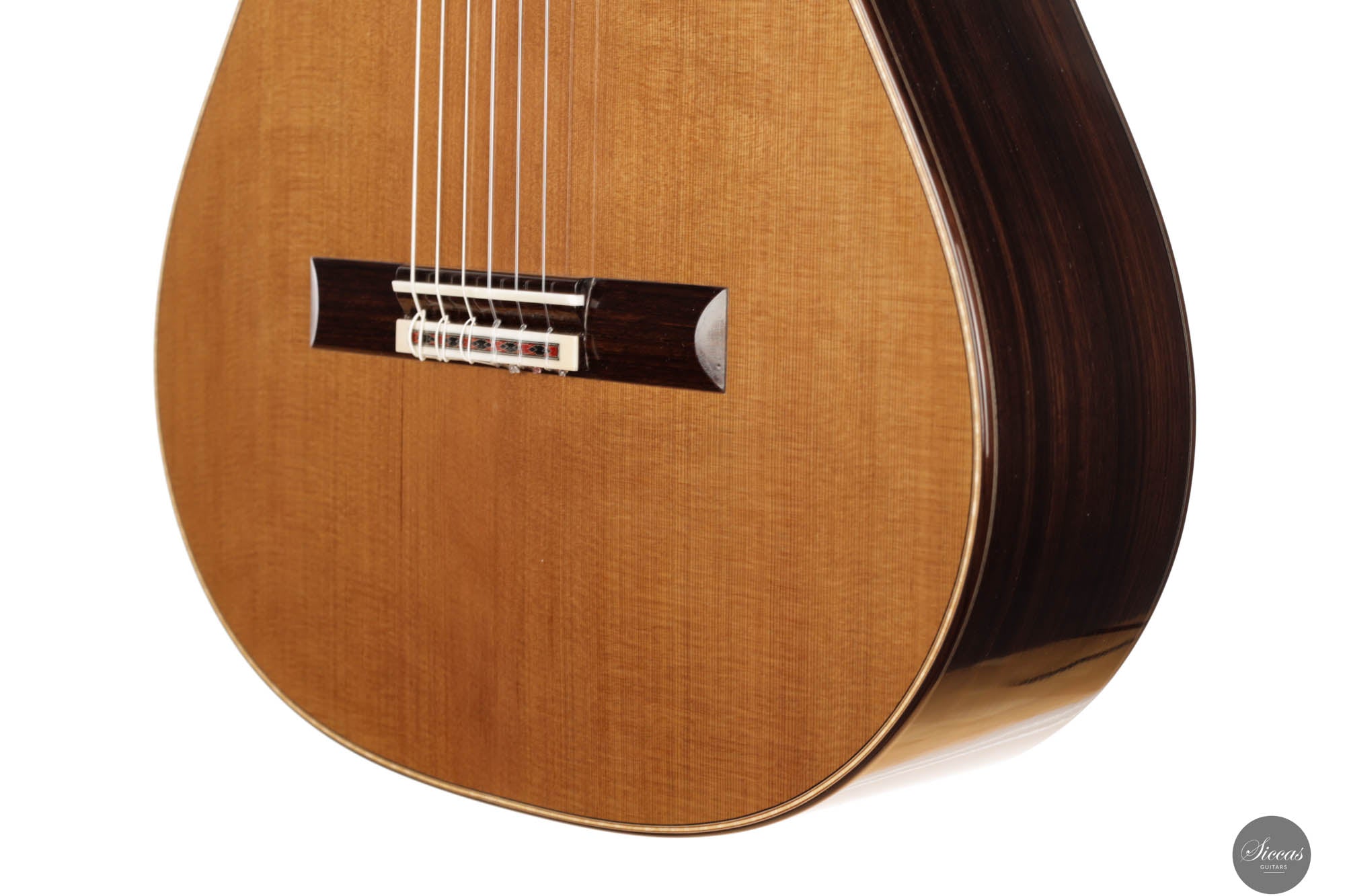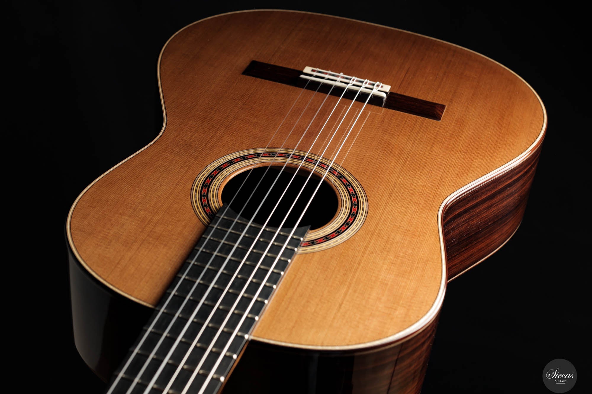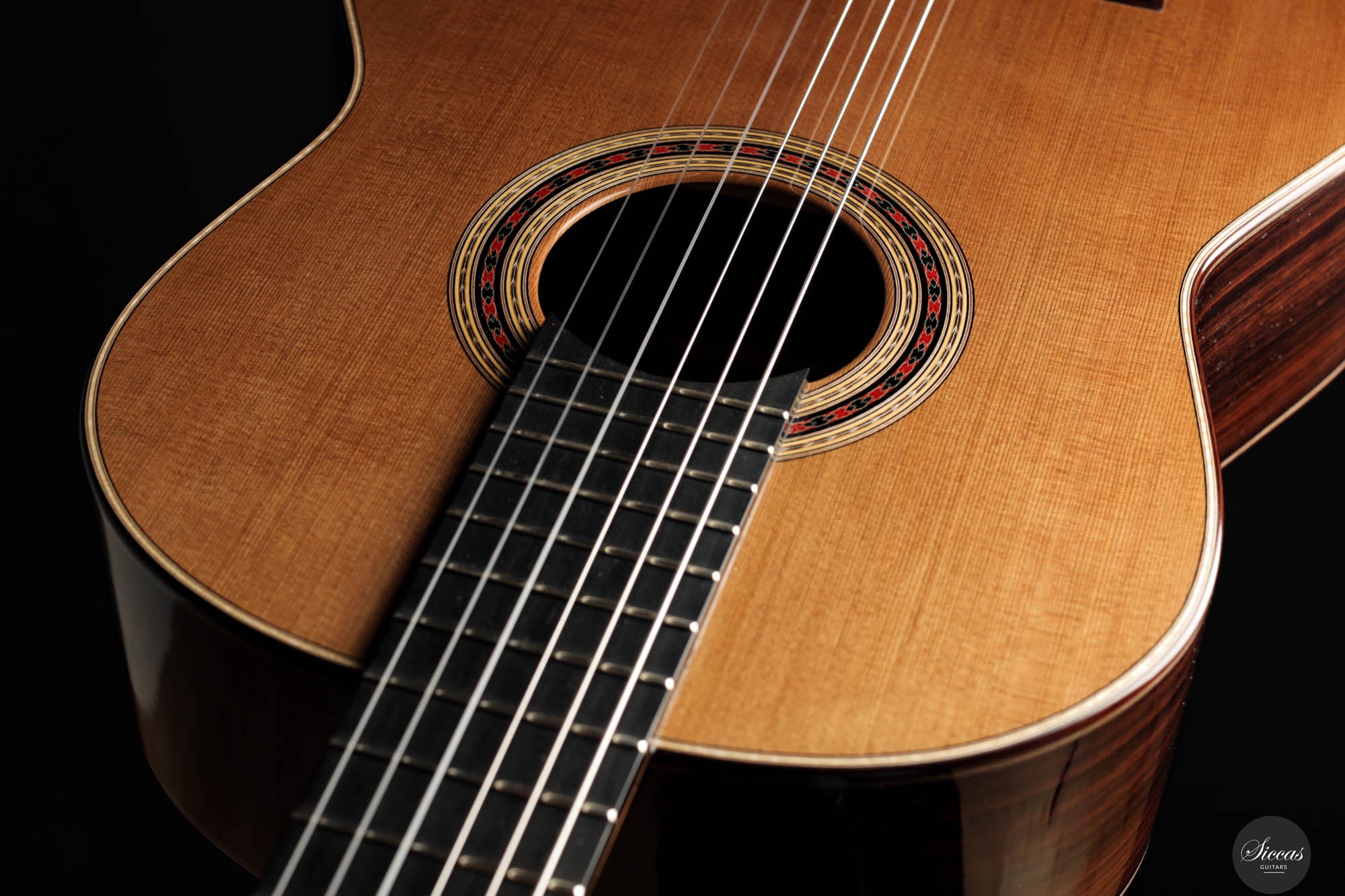 Klanglich ist diese Gitarre ein Wunderwerk, das komplexe, aber lyrische Höhen perfekt mit tiefen, kraftvollen Bässen ausbalanciert. Diese harmonische Mischung von Tönen macht die Gitarre außerordentlich vielseitig und gut geeignet für Konzertaufführungen, um den vielfältigen Anforderungen von Konzertinterpreten gerecht zu werden. Das komplexe Klangprofil und die kraftvolle Projektion der Gitarre machen sie zur idealen Wahl für eine breite Palette von Musikstilen und -einstellungen. Ob in einem Konzertsaal oder einem intimen Aufführungsort, diese Gitarre verspricht, einen Klang zu liefern, der sowohl fesselnd als auch erfüllend ist. Ihre Konstruktion spiegelt ein tiefes Verständnis von Friederichs Vermächtnis wider, was sie nicht nur zu einem Instrument macht, sondern zur Fortsetzung einer geschichtsträchtigen Tradition im Gitarrenhandwerk.