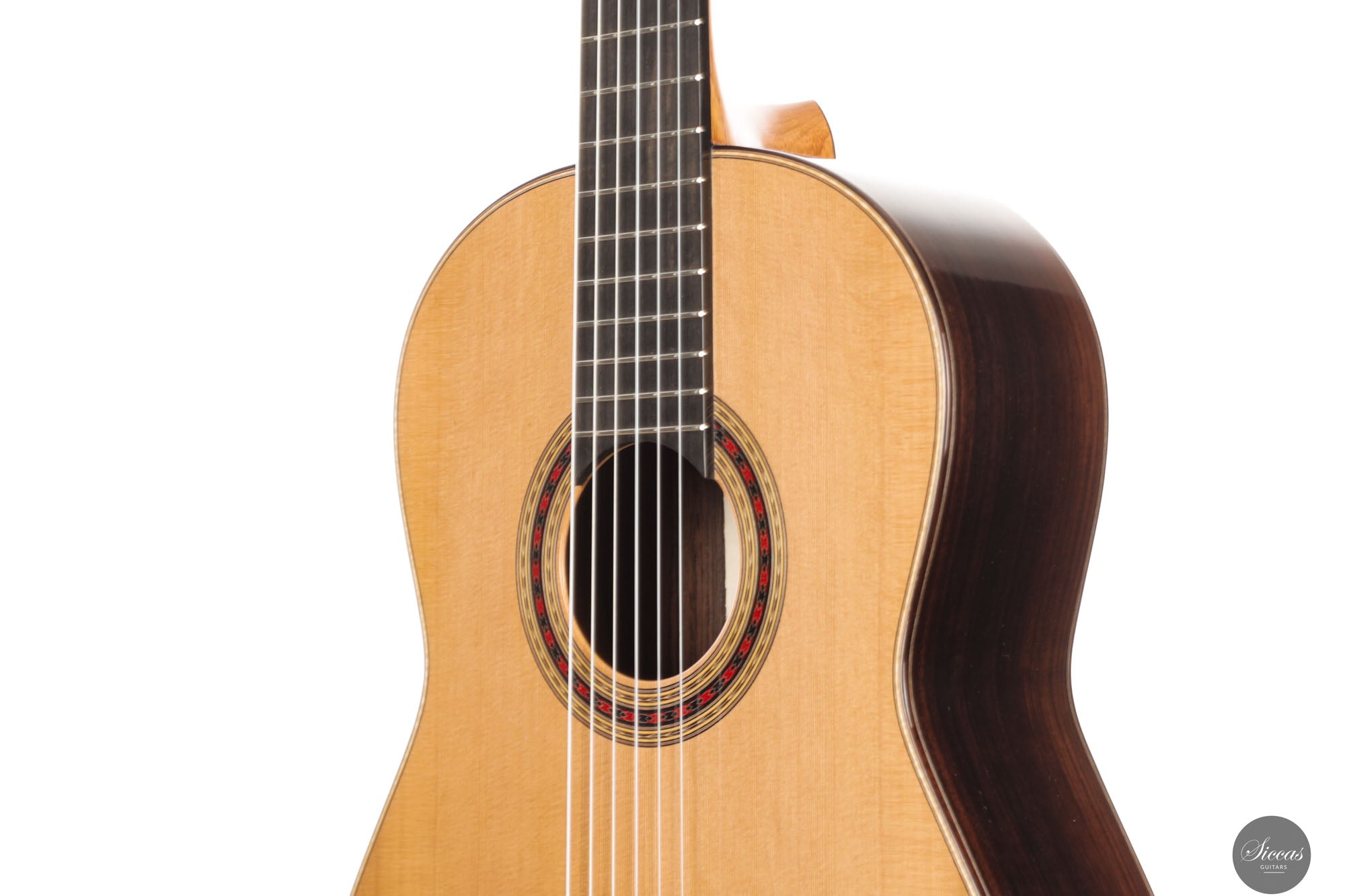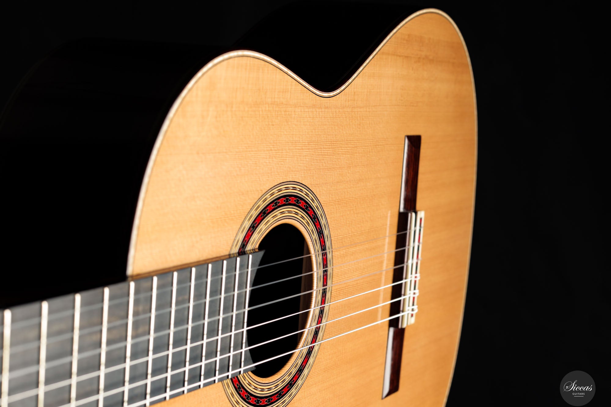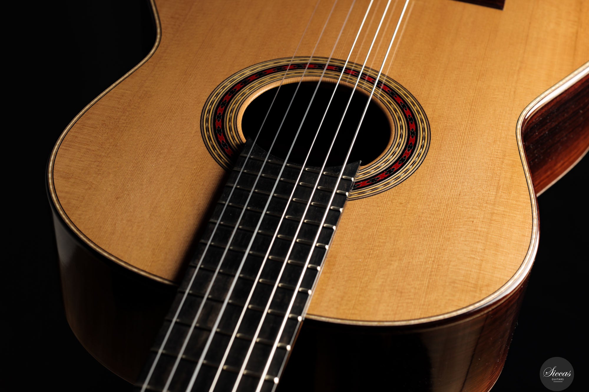 Die Diskantsaiten dieser Gitarre sind komplex und lyrisch und verbinden sich harmonisch mit den tiefen, samtigen Bässen zu einem Klang, der sowohl reichhaltig als auch nuanciert ist. Mit ihrem breiten Dynamikbereich und ihrer ausdrucksstarken Klangtreue ist dieses Instrument eine außergewöhnliche Wahl für Konzertgitarristen, die eine Gitarre suchen, die unvergleichliche Musikalität und emotionale Tiefe bietet.