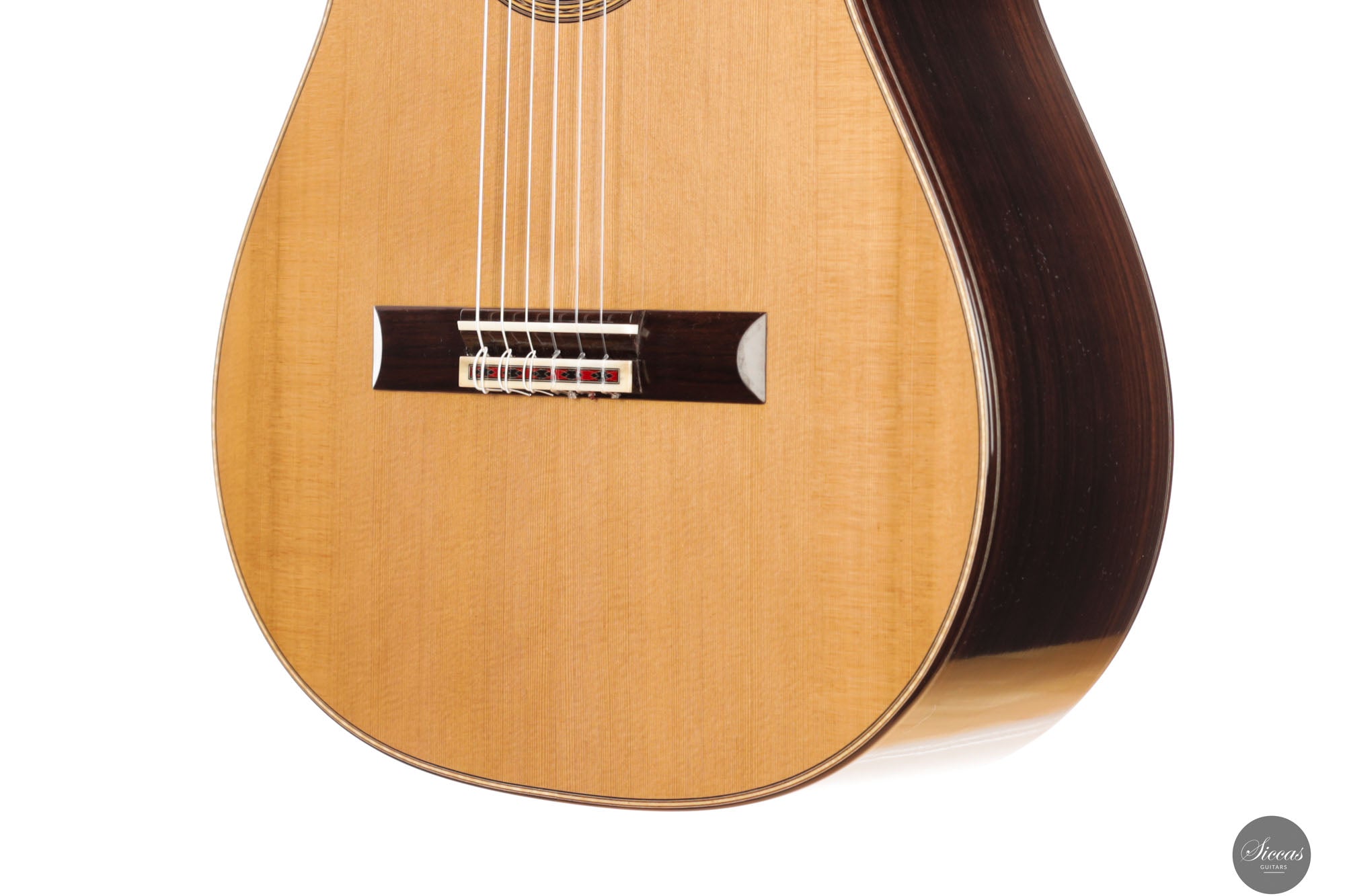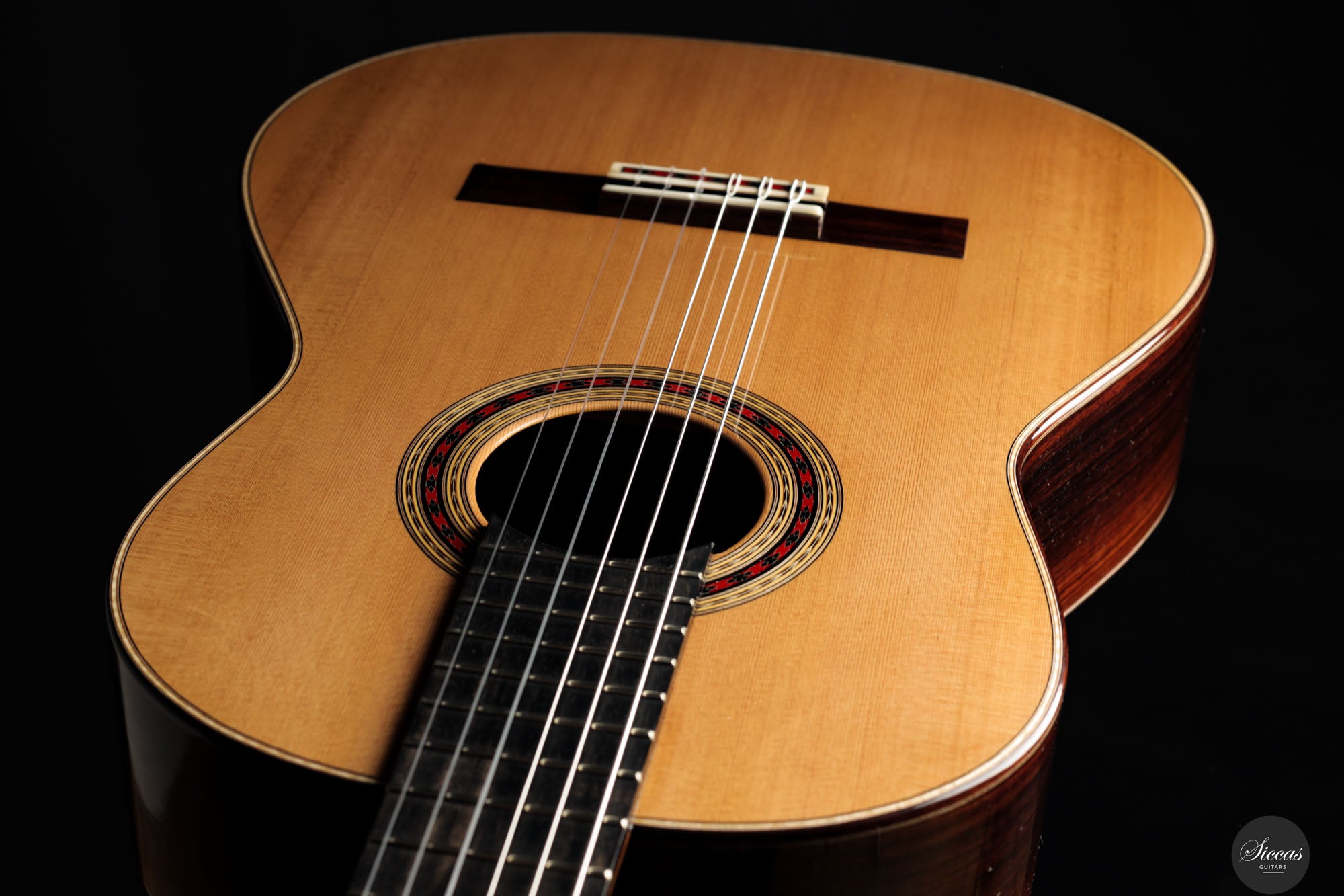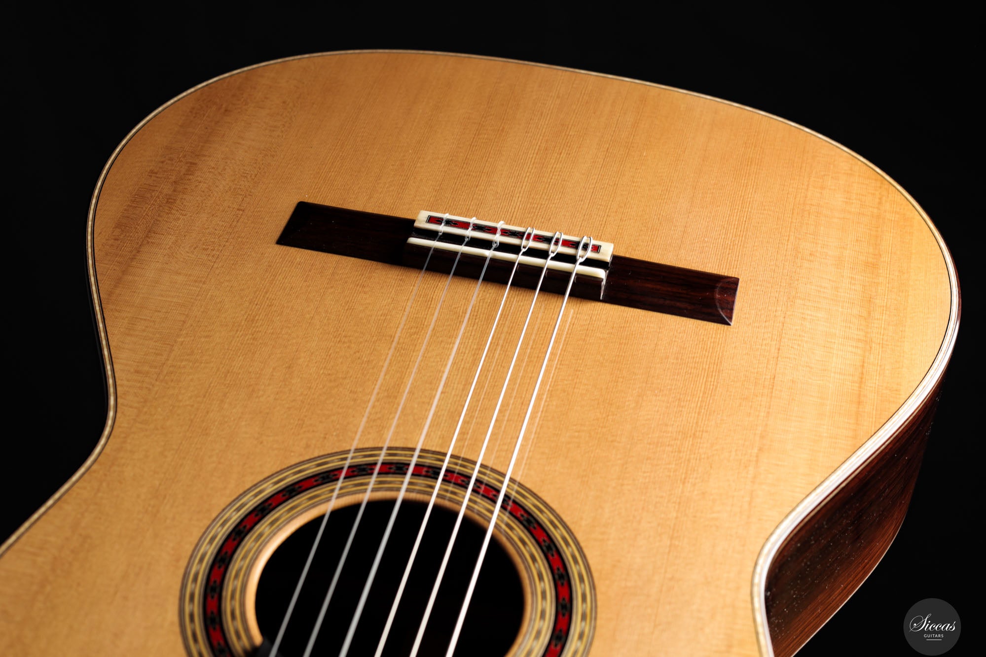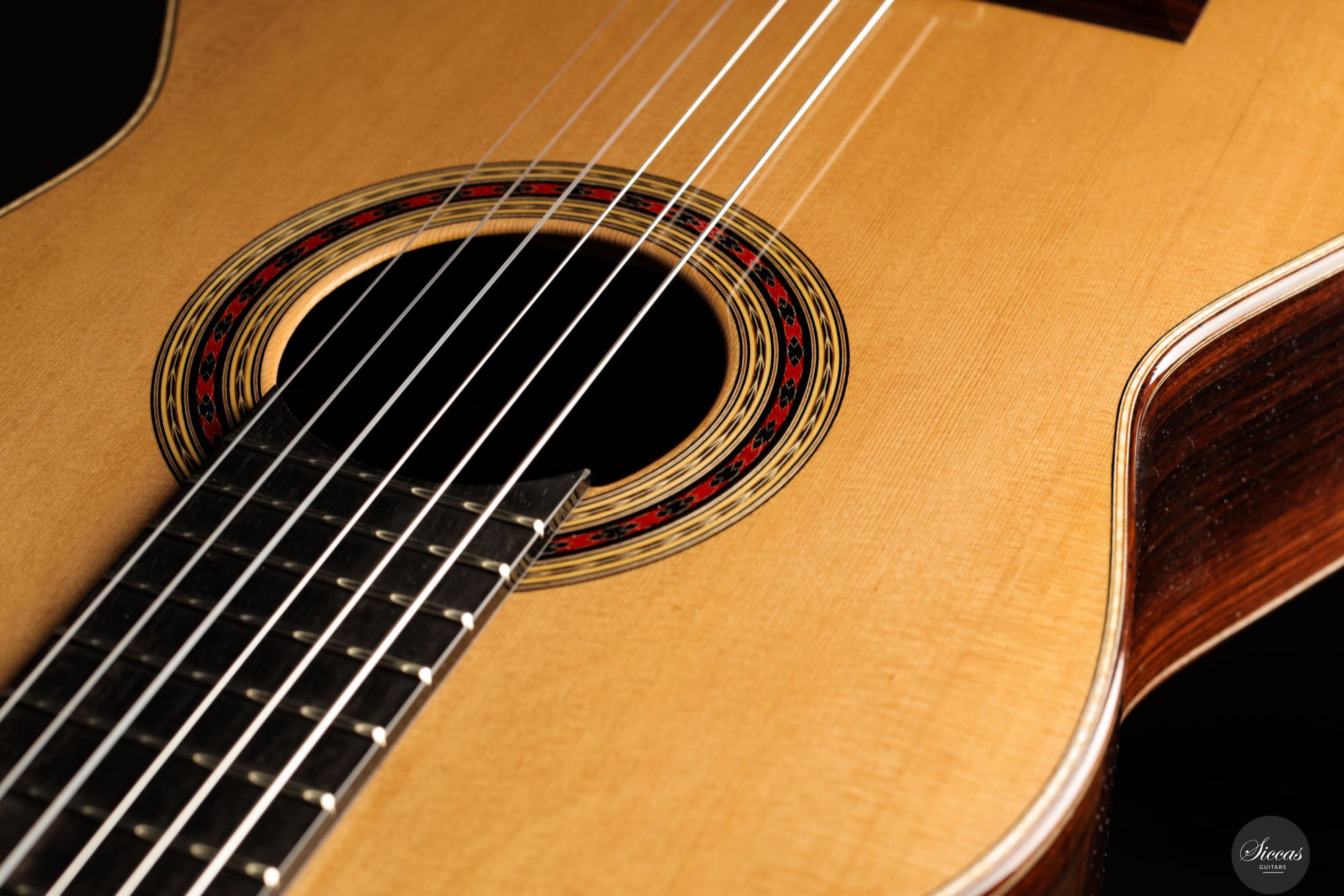 Die Diskantsaiten dieser Gitarre sind komplex und lyrisch und verbinden sich harmonisch mit den tiefen, samtigen Bässen zu einem Klang, der sowohl reichhaltig als auch nuanciert ist. Mit ihrem breiten Dynamikbereich und ihrer ausdrucksstarken Klangtreue ist dieses Instrument eine außergewöhnliche Wahl für Konzertgitarristen, die eine Gitarre suchen, die unvergleichliche Musikalität und emotionale Tiefe bietet.