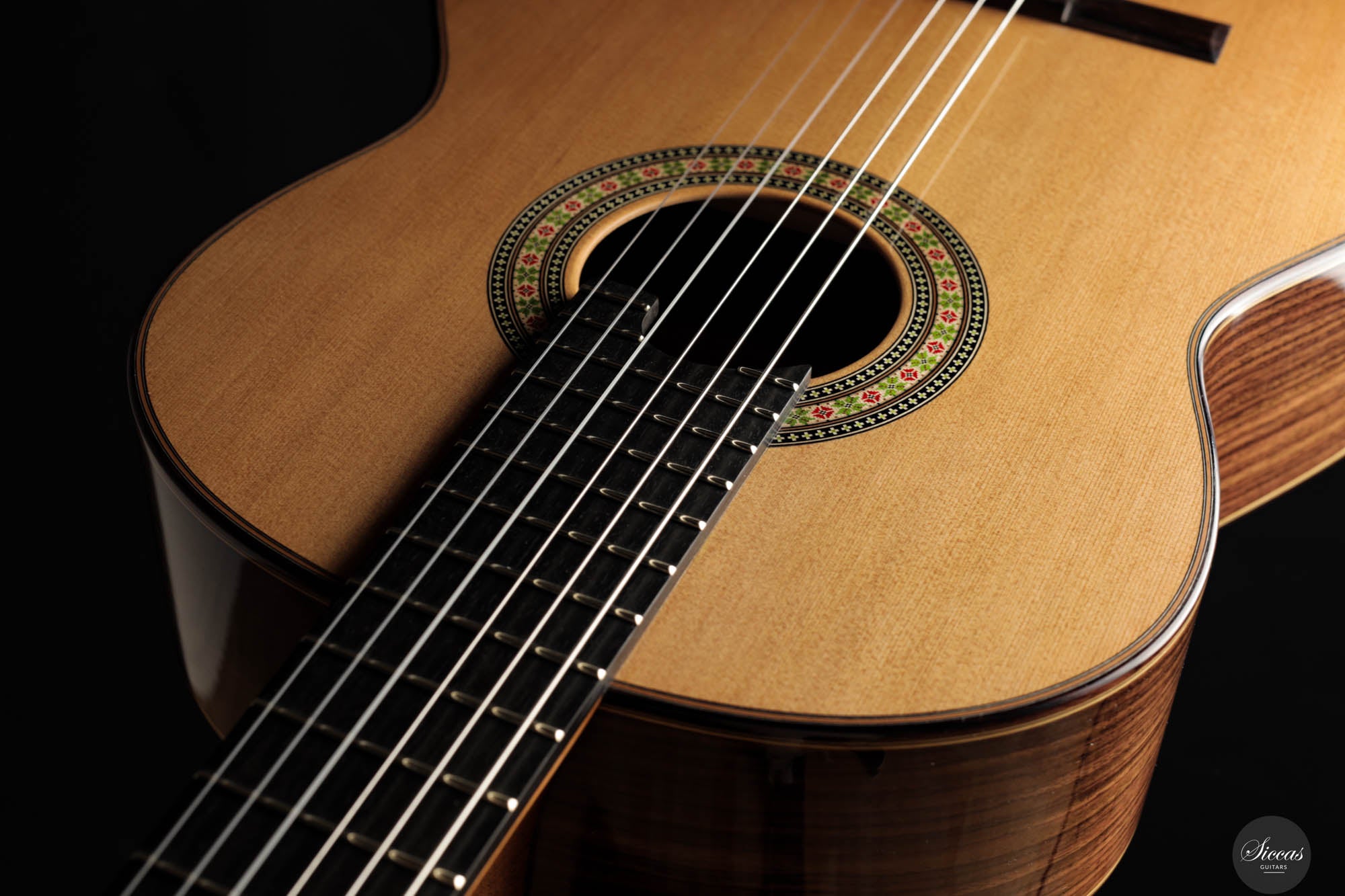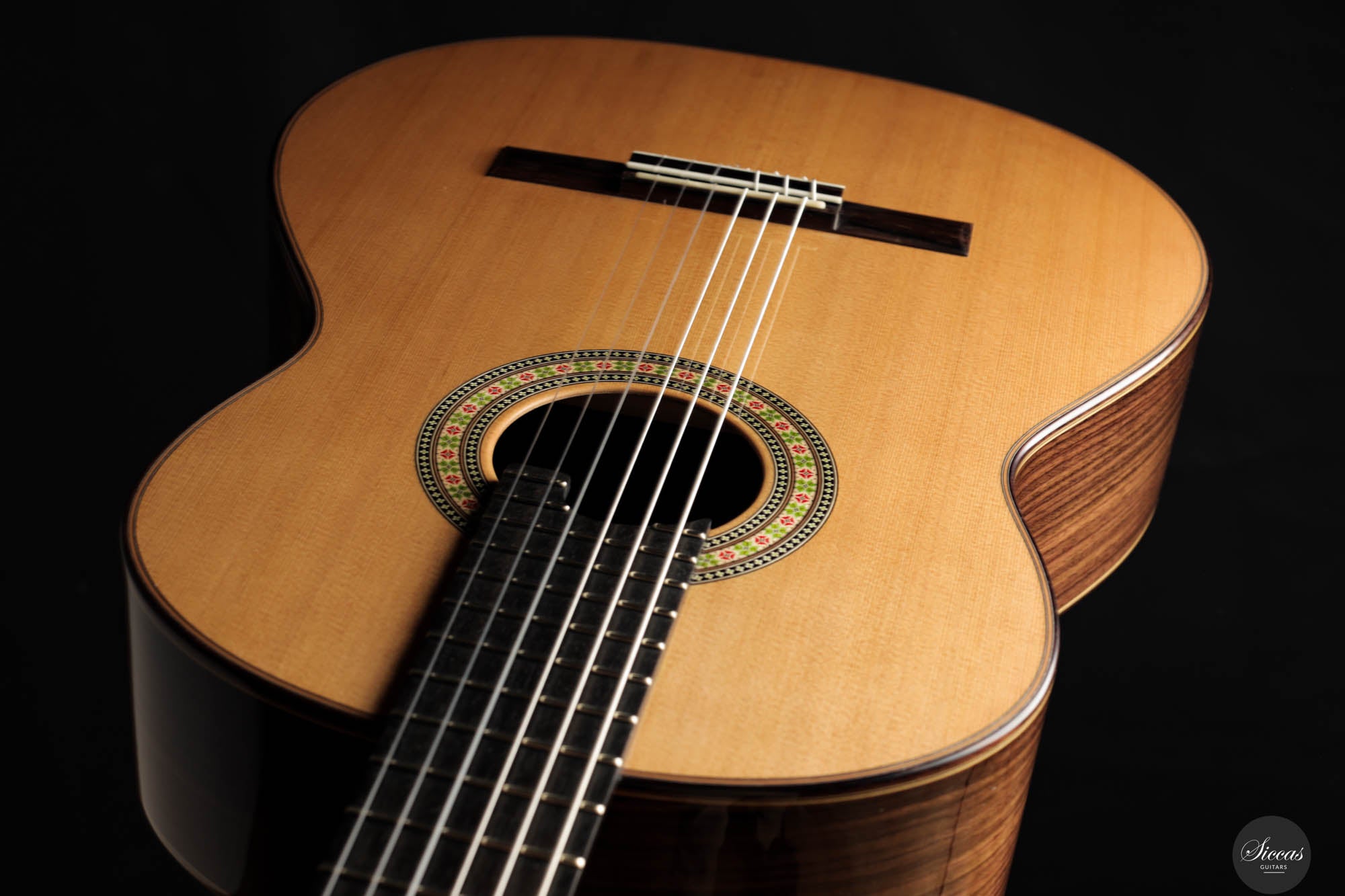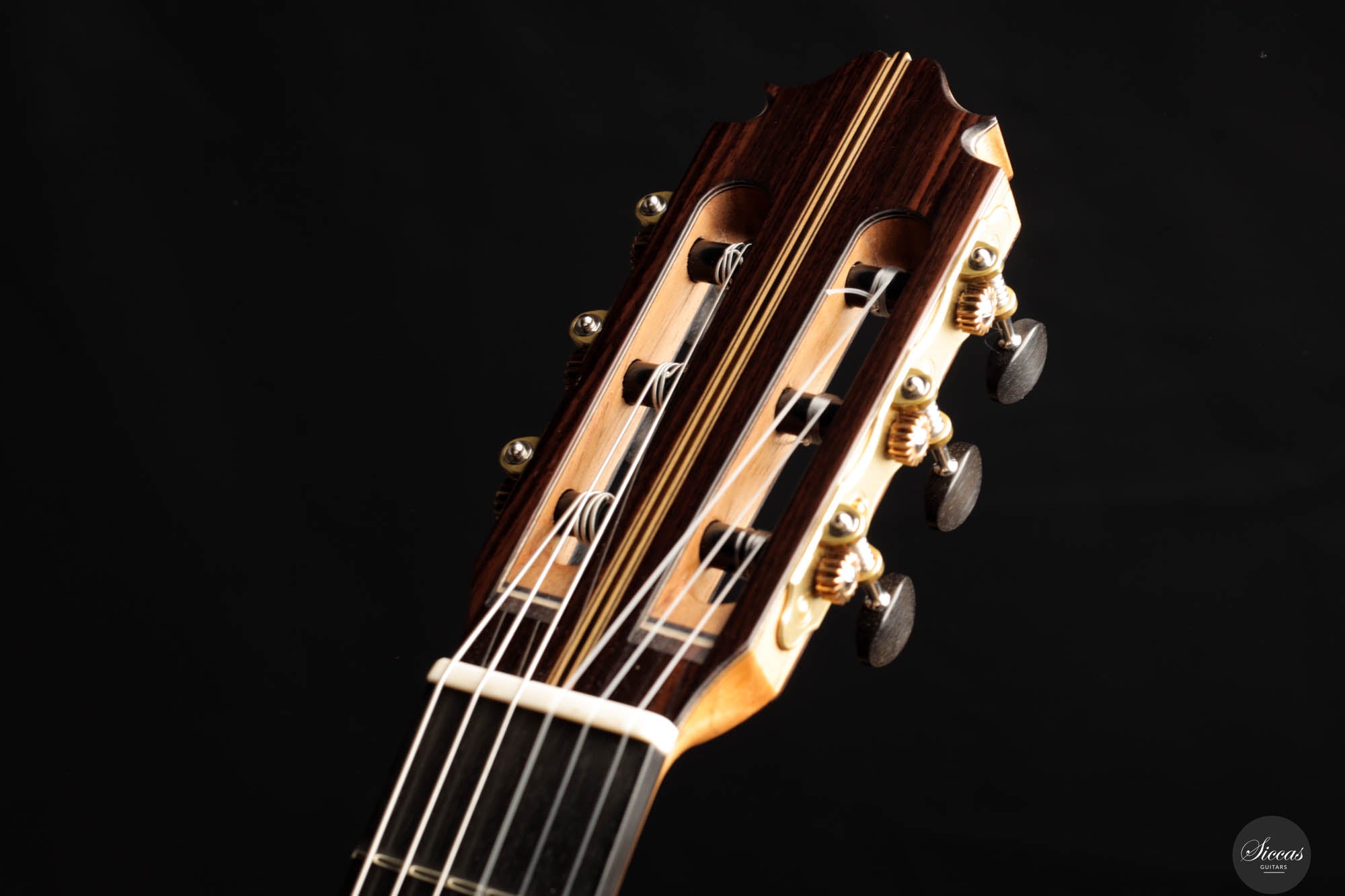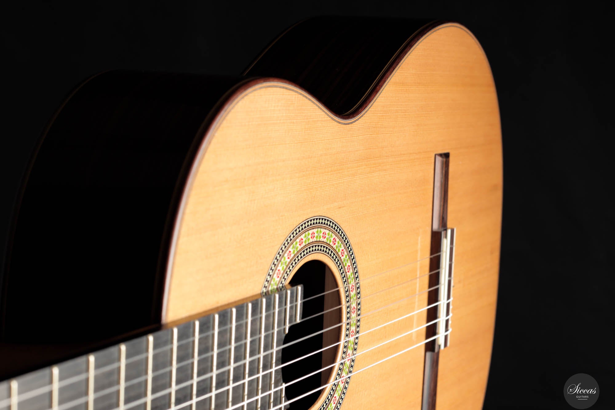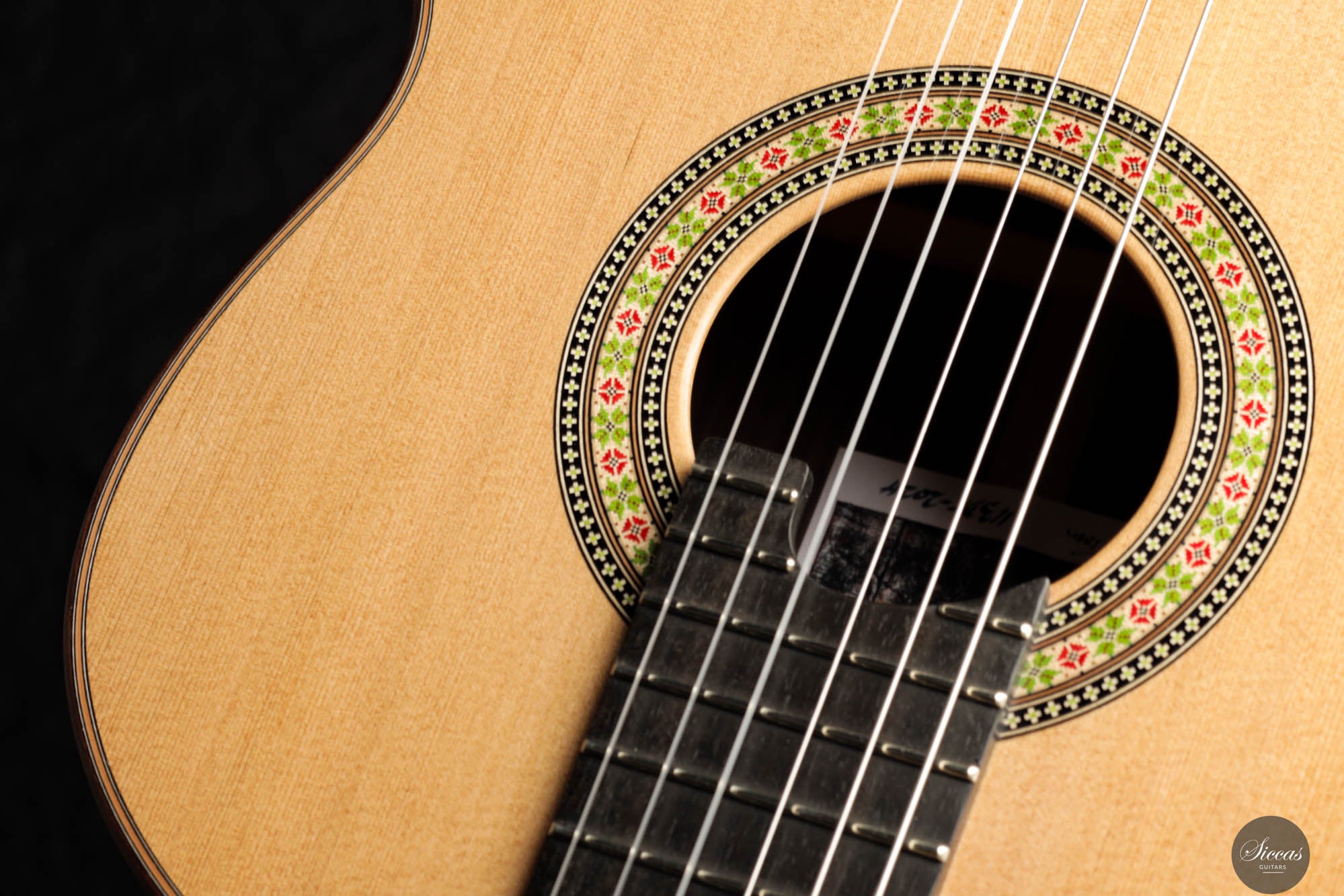 Die klassische Gitarre mit ihren weichen Nylonsaiten und ihrem charakteristischen Timbre ist zum Symbol der Kammermusik, der spanischen Tradition und des Konzertrepertoires geworden. Ihre moderne Form prägte Antonio de Torres im 19. Jahrhundert, indem er den Standard für Korpus, Fächerbeleistung und die 65-Zentimeter-Mensur setzte, die bis heute verwendet werden. Instrumente dieser Kategorie eröffnen eine reiche Palette von den feinen romantischen Miniaturen Tárregas bis zu den majestätischen Konzerten Rodrigos. Hier finden Sie Gitarren, die historische Kontinuität bewahren und zugleich zu neuen Interpretationen anregen.