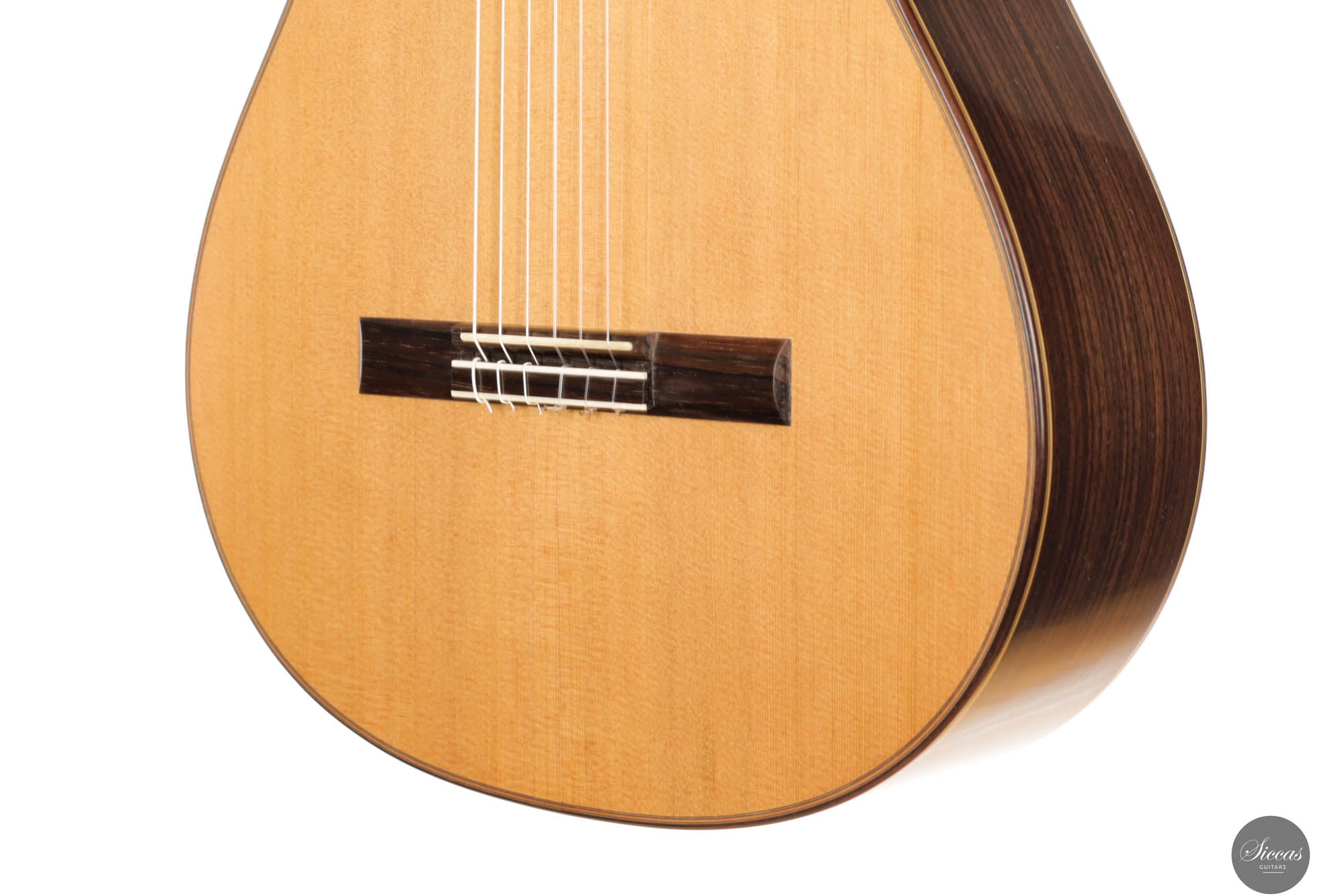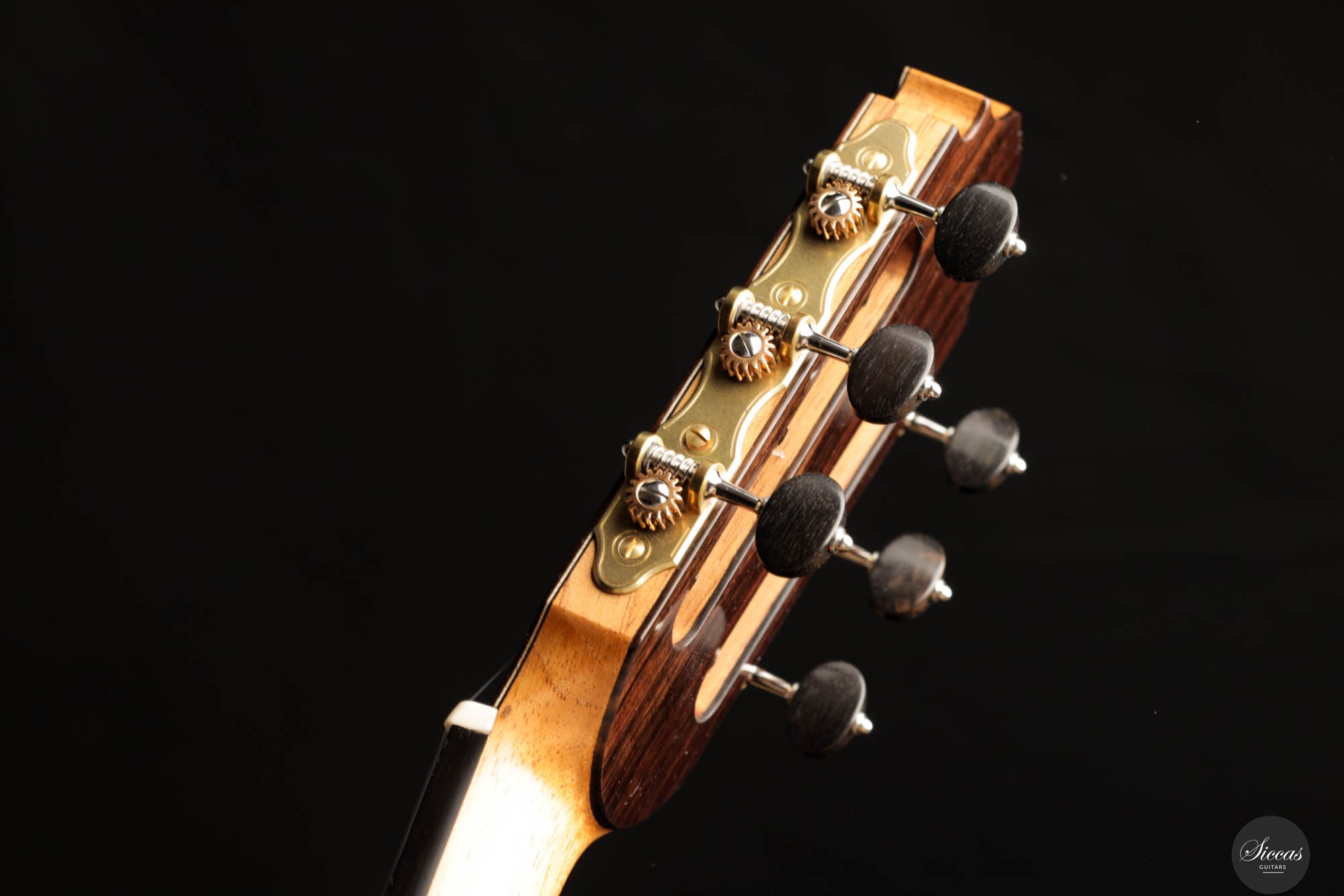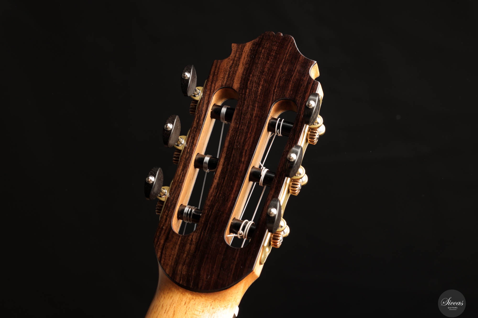 Mit einer Leidenschaft für detaillierte, fliegende Modellflugzeuge aus Holz und dem Gitarrespielen, schien Steve Toon für eine Karriere bestimmt, die diese Interessen vereint. Ursprünglich als Schreiner ausgebildet, vertiefte Steve seine Fähigkeiten am London College of Furniture, wo er sich auf den Bau früher Zupfinstrumente spezialisierte. Ende der 1970er Jahre, nach dem Studium, arbeitete er kurzzeitig als Tontechniker für Live-Veranstaltungen, bevor er in die Möbelindustrie wechselte, wo er sich zum Fertigungsberater hocharbeitete. Trotz seines beruflichen Weges blühte Steves Leidenschaft für den Bau klassischer Gitarren als persönliches Hobby auf. Dieses Hobby entwickelte sich schließlich Anfang der 2000er Jahre zu einem Vollzeitberuf, wobei der Fokus auf dem Bau von Steel-String- und Jazzgitarren lag, neben sorgfältig handgefertigten klassischen Gitarren, inspiriert durch ein Reparaturprojekt einer Hauser-Gitarre. Heute ist Steve bekannt für seinen fast ausschließlichen Fokus auf klassische Gitarren, bei denen er traditionelle Handwerkskunst mit innovativem Design verbindet. Seine Arbeit umfasst nun traditionelle Fichtendecken-Klassikgitarren, beeinflusst von Hauser II, und Zedernfrontgitarren, inspiriert von Friedrich. Kürzlich hat sich Steve dem Bau von Doppeldeckengitarren zugewandt, einem Konzept, das von Matthias Dammann und Gernot Wagner entwickelt wurde, wobei er Nomex verwendet, um sowohl Lautstärke als auch Sustain zu erhöhen, während er die warmen Töne traditioneller Gitarren beibehält. Seine Kreationen sind ein Zeugnis seiner lebenslangen Hingabe an die Verbindung von Holzbearbeitungsfähigkeiten und seiner Liebe zur Musik, gekennzeichnet durch eine moderne, schlichte Eleganz.