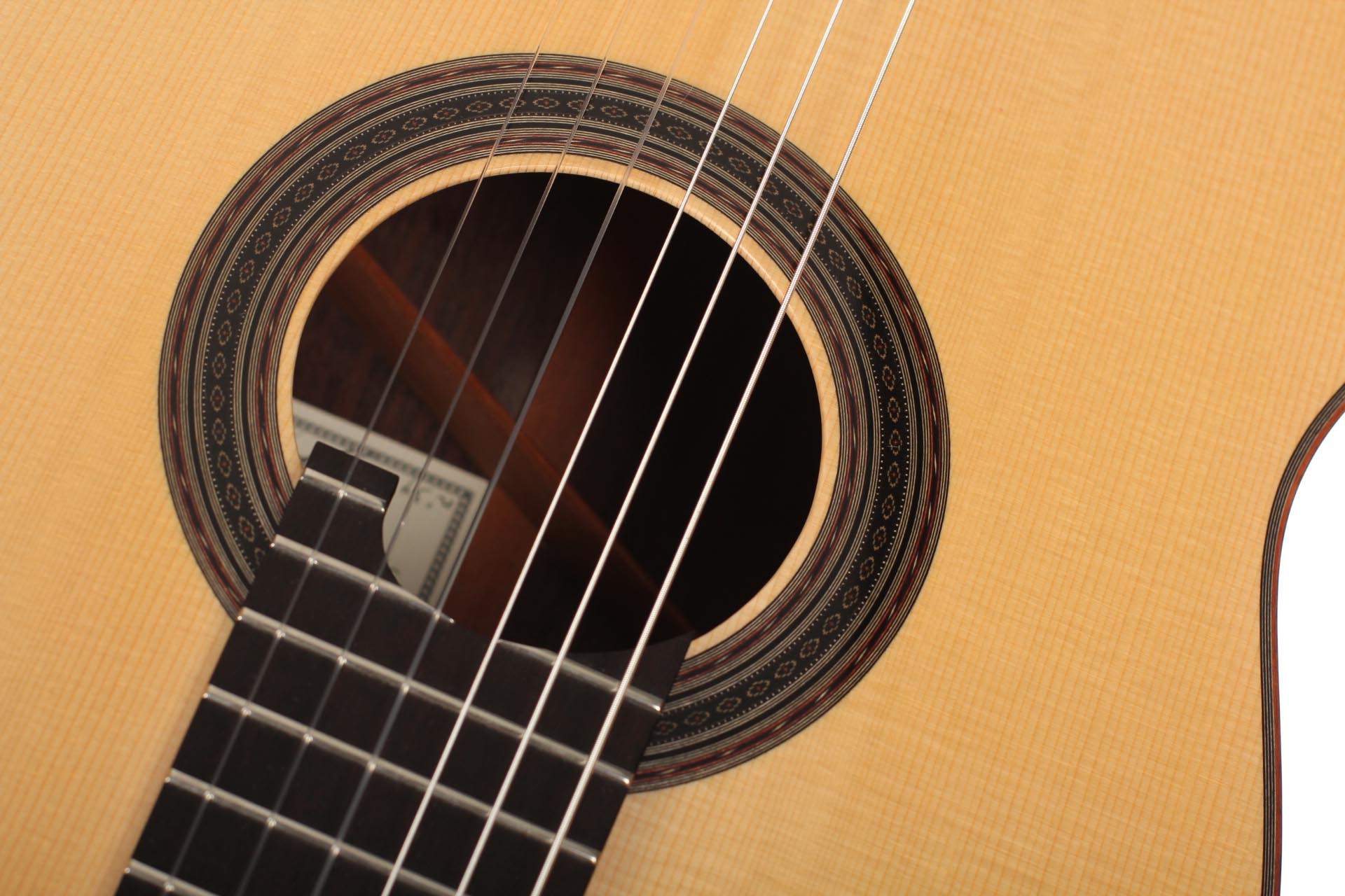His approach to guitar building is inspired by the French guitar makers Robert Bouchet, Daniel Friederich and Dominique Field and follows the French lutherie tradition.