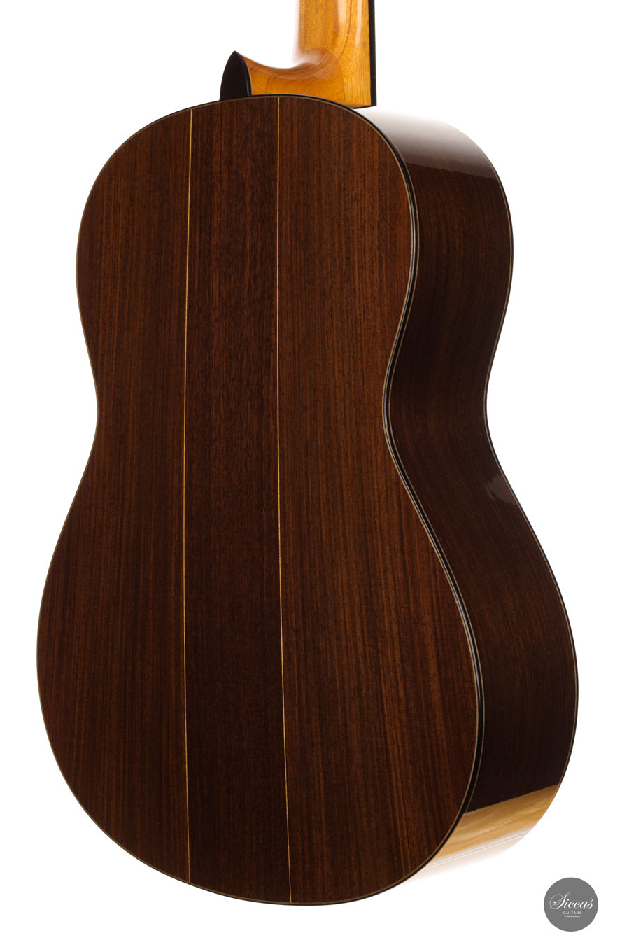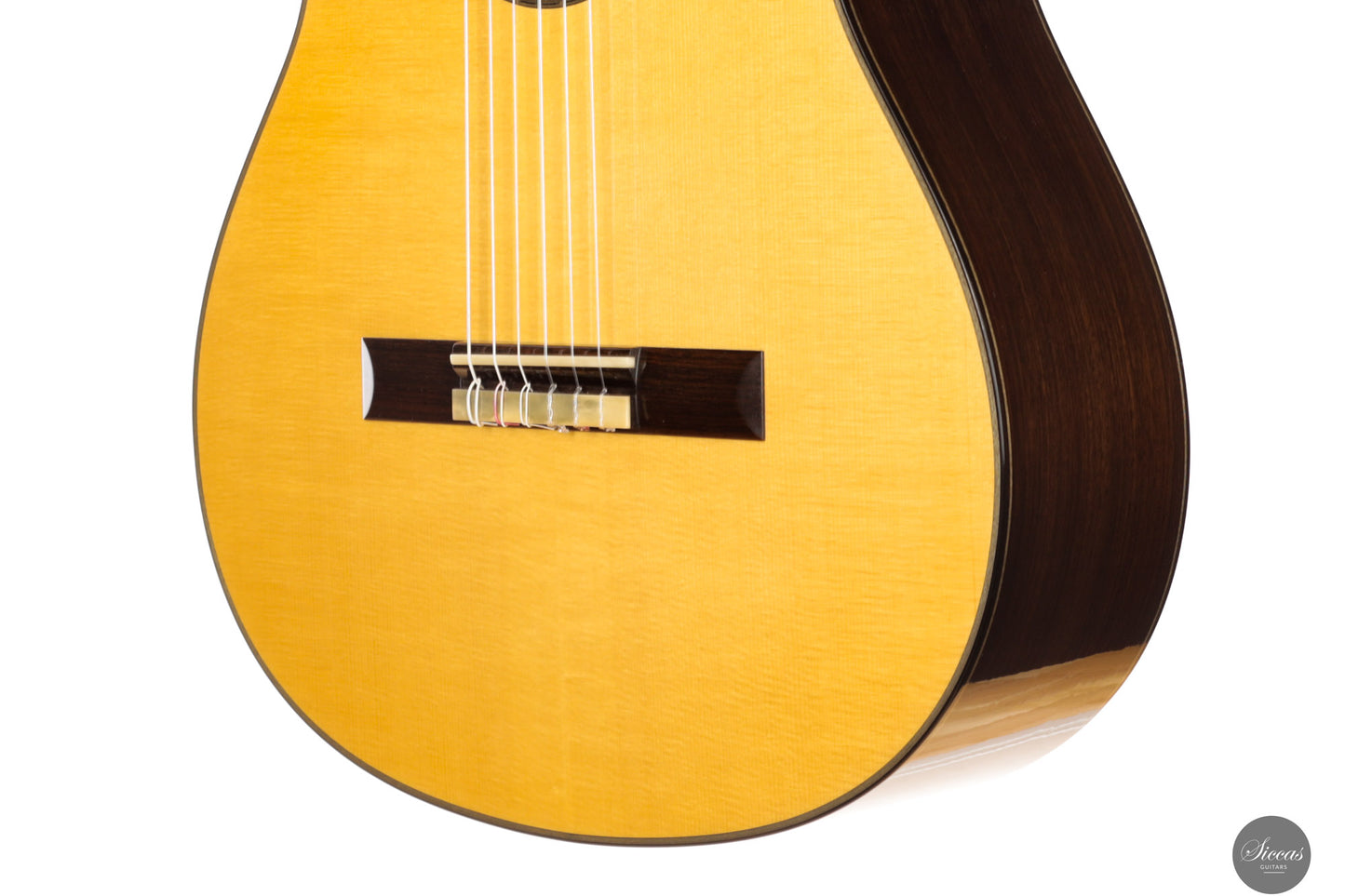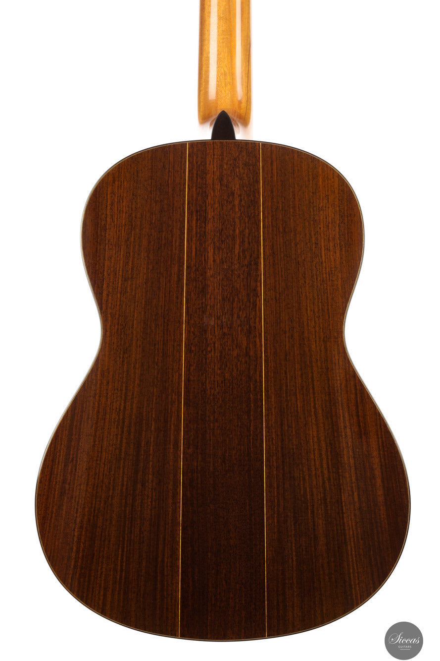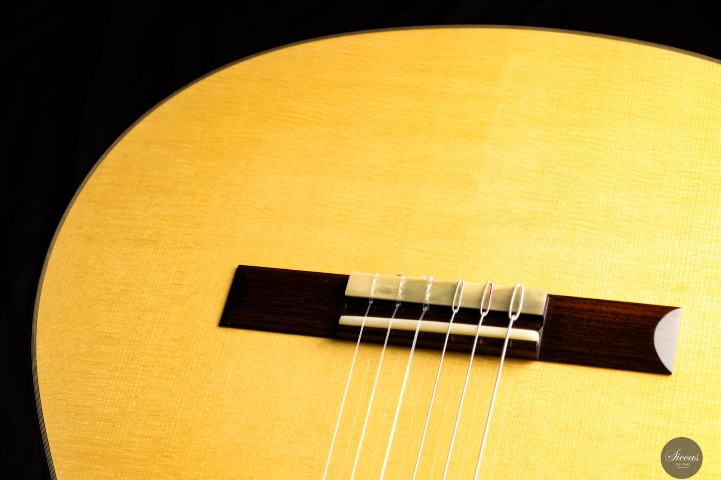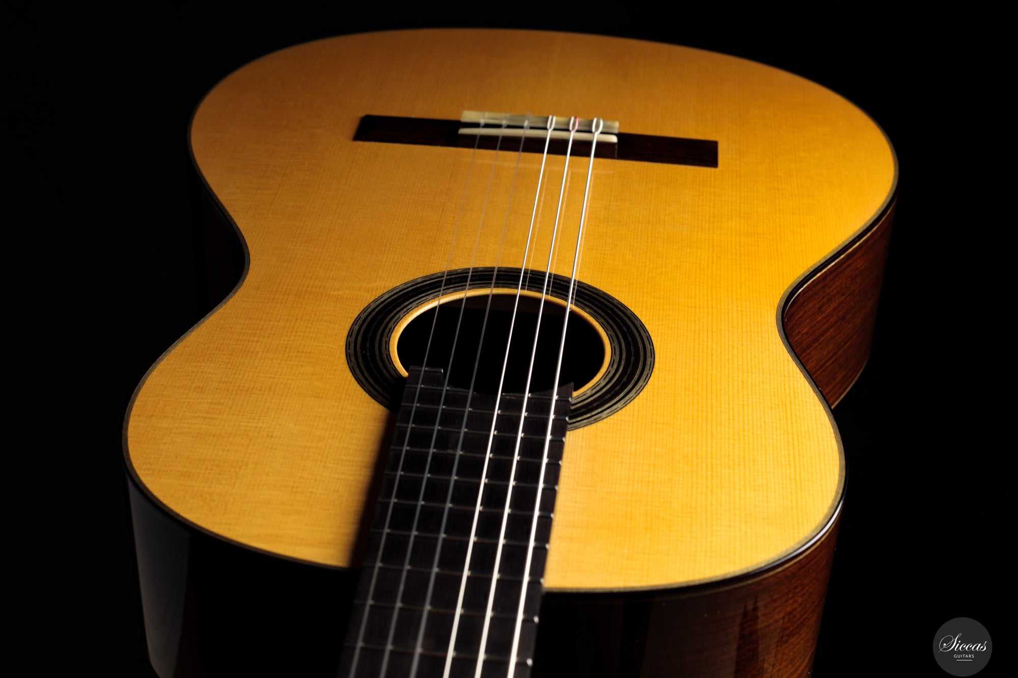 Klanglich ist die Gitarre farbenreich und gesanglich, mit ausgezeichneter Trennung der Stimmen und müheloser Tragfähigkeit. Sie zeigt über den gesamten Dynamikbereich hinweg eine bemerkenswerte Ausgewogenheit und eignet sich sowohl für ausdrucksstarke Solopassagen als auch für komplexe Polyphonie. Die Edelstahlbünde tragen nicht nur zur Langlebigkeit bei, sondern verleihen dem Diskant auch eine dezente Brillanz, die insbesondere in den oberen Lagen zur Geltung kommt.