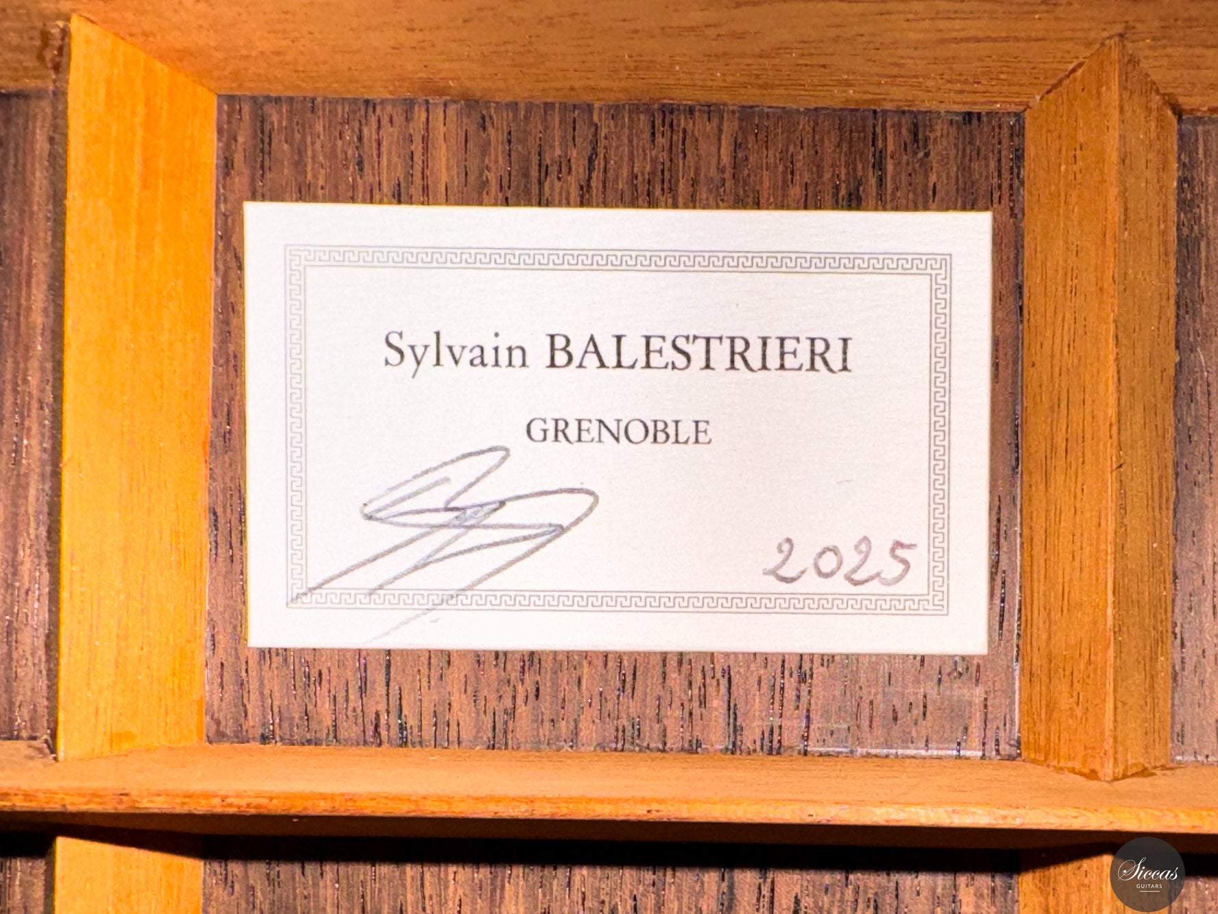 Nach seinem Abschluss im Fach klassische Gitarre setzte Sylvain Balestrieri sein Studium an der École Normale de Musique de Paris fort, wo er sich intensiv mit Interpretation und Handwerkskunst beschäftigte. Anschließend sammelte er wertvolle Erfahrungen in renommierten Werkstätten in London, darunter Andy’s Guitar und Graham Noden. Im Jahr 2008 gründete er seine eigene Werkstatt in Grenoble. Dort konzentriert er sich ausschließlich auf den Bau eines einzigen Konzertmodells sowie auf die Restaurierung hochwertiger historischer Instrumente. Seine jährliche Produktion ist bewusst stark begrenzt, mit einer Warteliste von mehreren Jahren, ausdruck seiner Philosophie, Qualität über Quantität zu stellen.