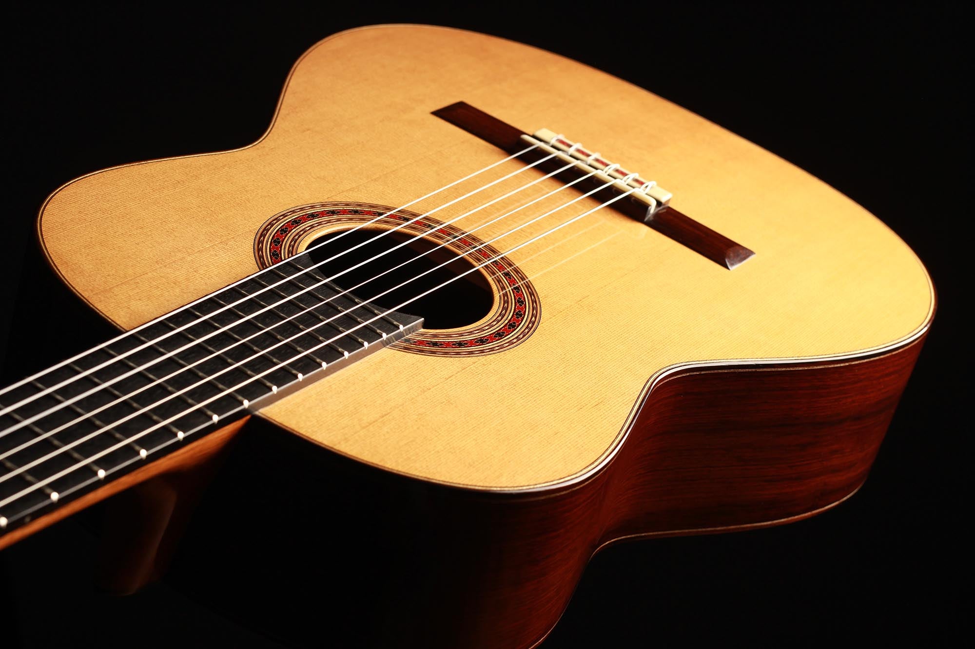 Die klassische Gitarre mit ihren weichen Nylonsaiten und ihrem charakteristischen Timbre ist zum Symbol der Kammermusik, der spanischen Tradition und des Konzertrepertoires geworden. Ihre moderne Form prägte Antonio de Torres im 19. Jahrhundert, indem er den Standard für Korpus, Fächerbeleistung und die 65-Zentimeter-Mensur setzte, die bis heute verwendet werden. Instrumente dieser Kategorie eröffnen eine reiche Palette von den feinen romantischen Miniaturen Tárregas bis zu den majestätischen Konzerten Rodrigos. Hier finden Sie Gitarren, die historische Kontinuität bewahren und zugleich zu neuen Interpretationen anregen.