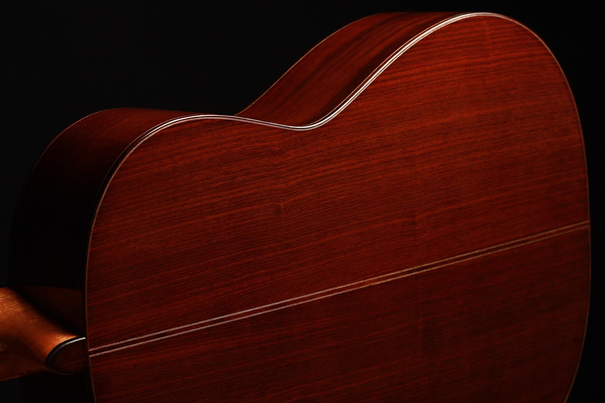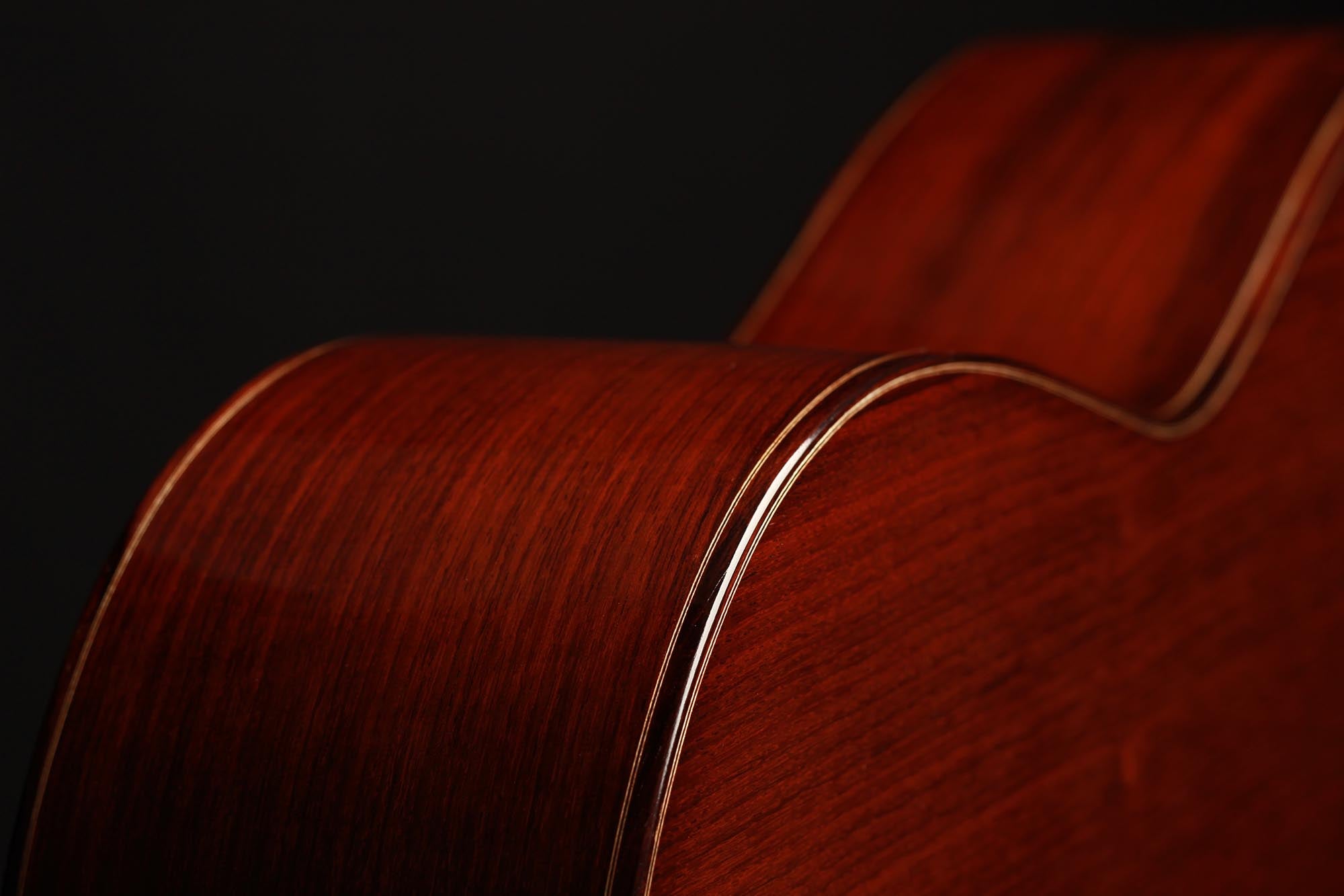 Both the sound and the playing feel meet the highest expectations. The neck is relatively thin, which makes for excellent playability. Great projection and a harmonious, balanced sound combine with amazing sustain. Moreover, this guitar has a clear and warm tone that captivates with its elegance. Congratulations to Thomas Dauge for once again creating such a beautiful Daniel Friederich model.