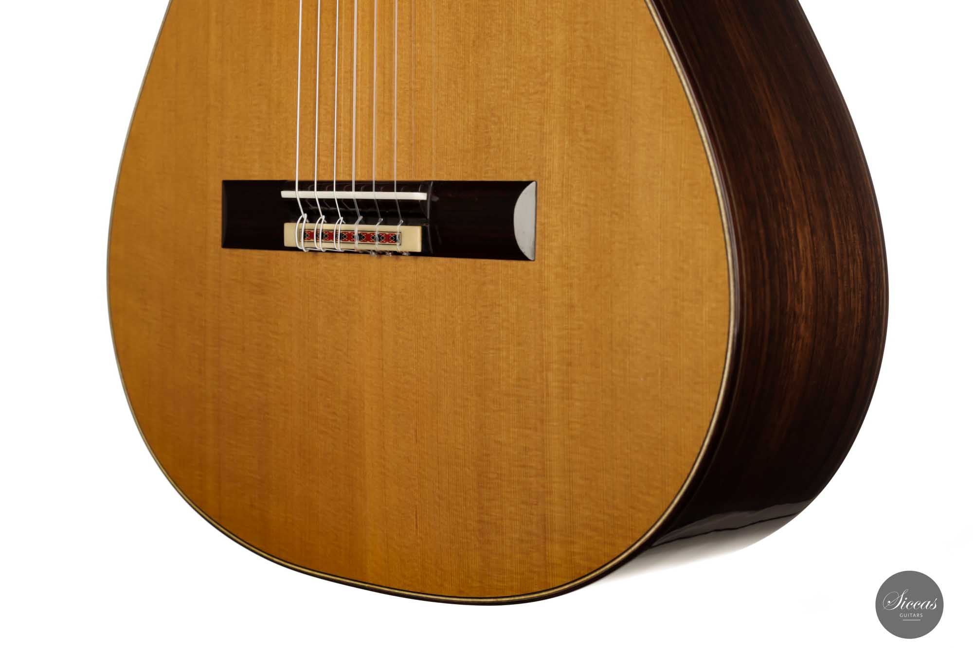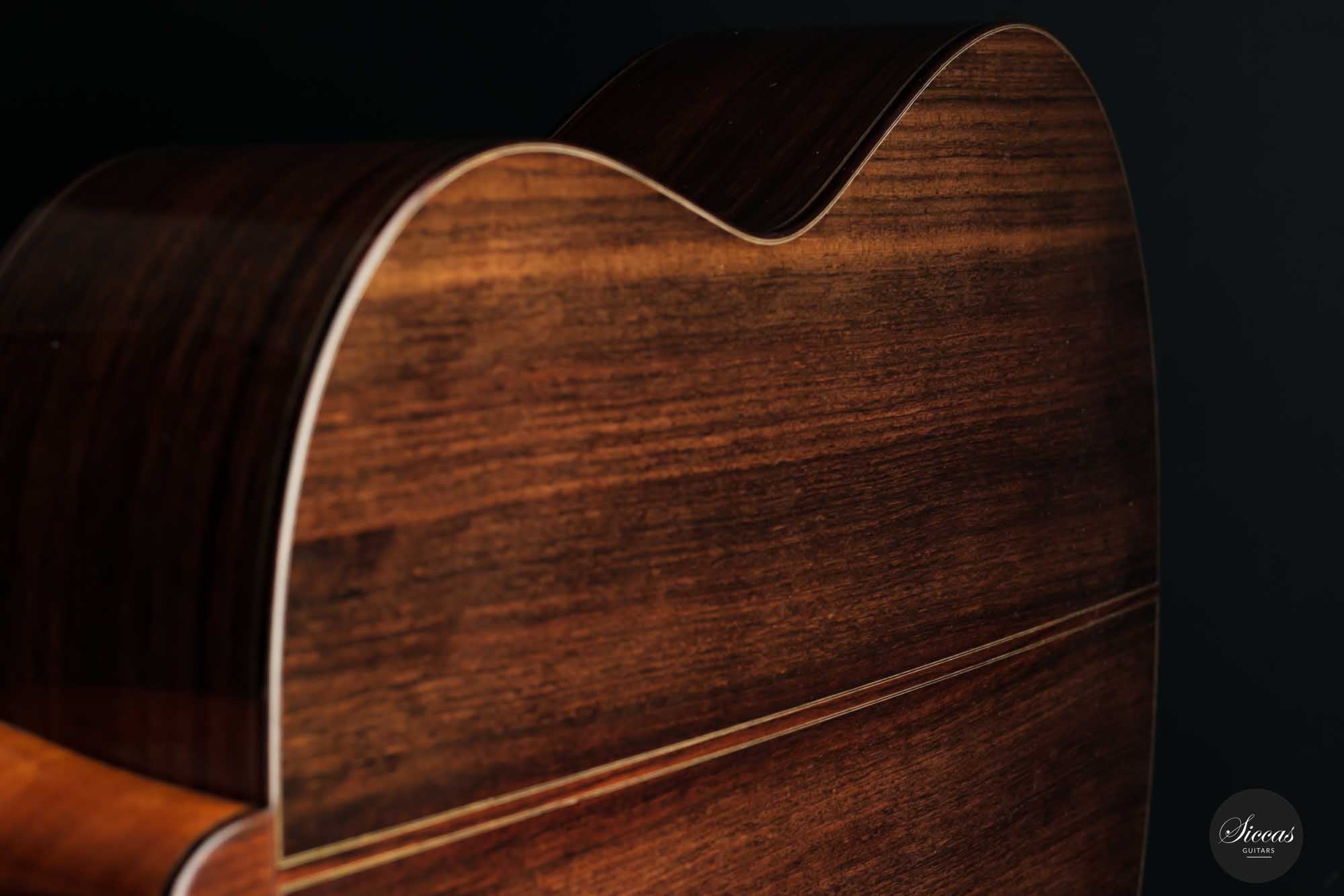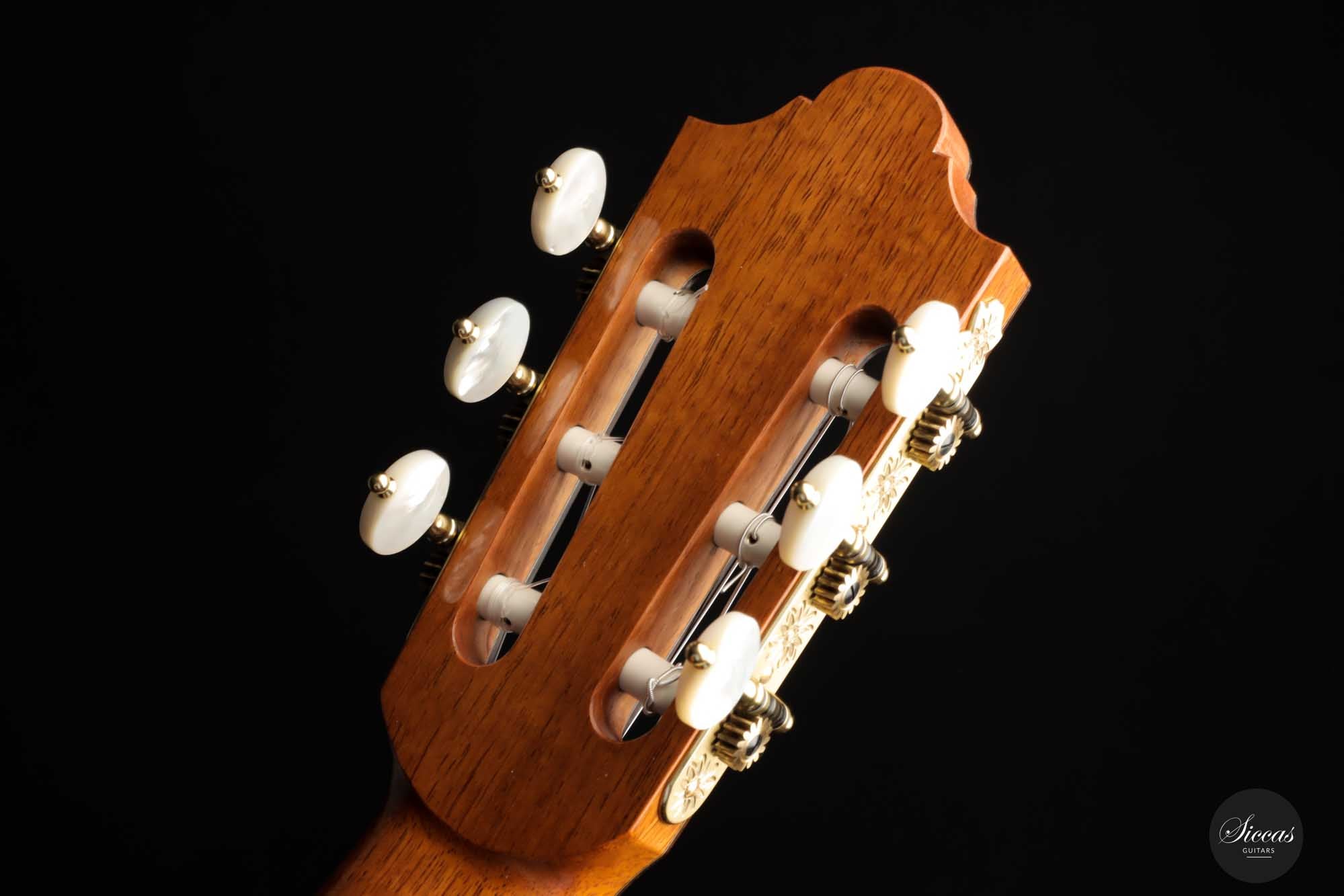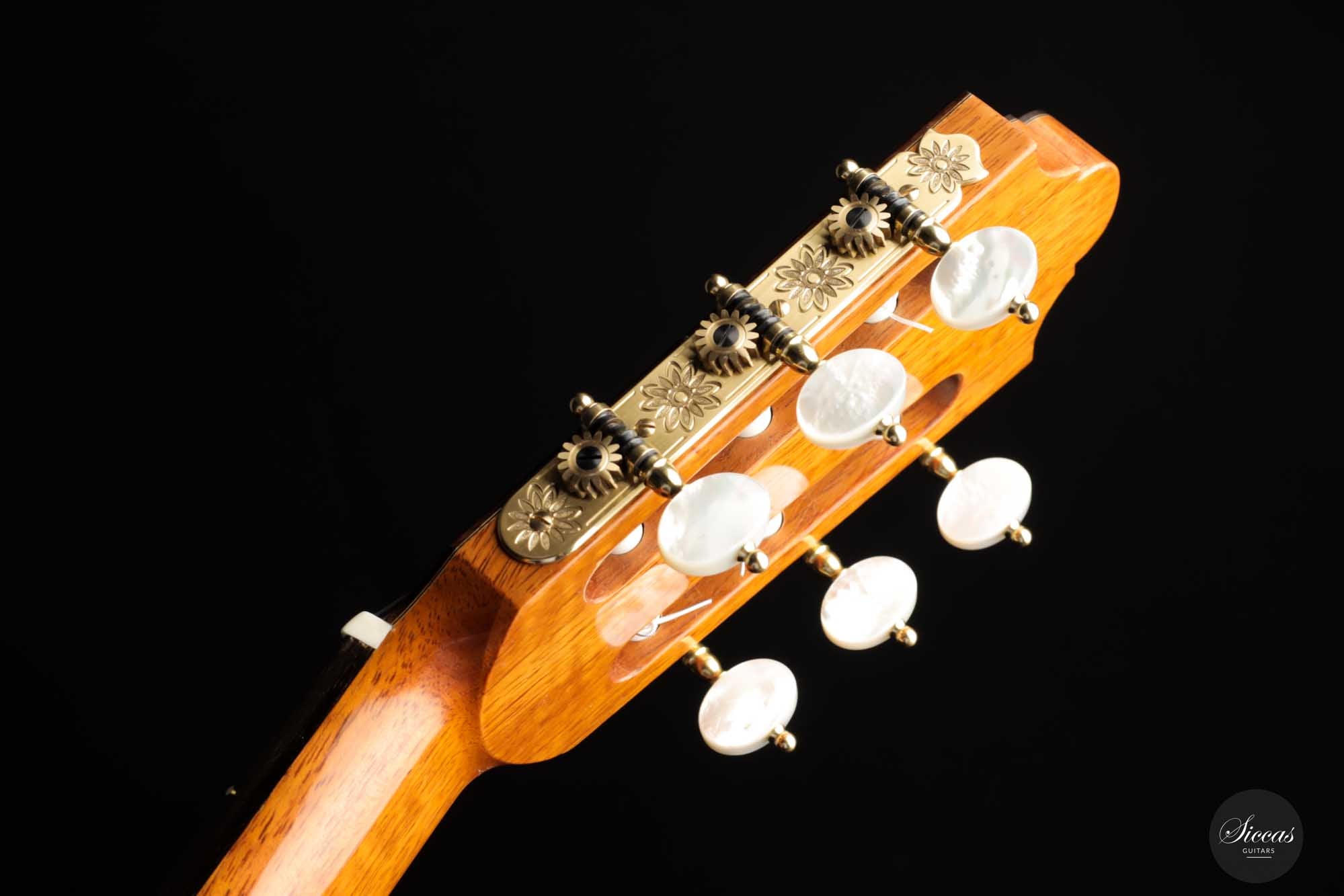 Dass es Thomas Dauge gelungen ist, eine exakte Kopie der Gitarre von Daniel Friederich anzufertigen, kann man an dieser Gitarre Nummer 156 aus dem Jahr 2022 sehen. Diese originalgetreue Replik entspricht dem Vorbild in jedem Detail, sowohl in der Qualität der Hölzer als auch in der perfekten Ausführung aller Feinheiten. Thomas Dauge hat das Wesen von Friederichs Gitarren in allen Aspekten erfasst. Auch klanglich erkennt man, dass ein gutes Verständnis der sehr komplexen Friederich-Charakter vorhanden ist. Eine exzellente Projektion, gepaart mit einem harmonischen Klang und langem Sustain, genau wie beim Original. Die erstklassigen Rodgers-Mechaniken unterstreichen die hervorragende Qualität dieser Thomas-Dauge-Gitarre. Dieses Instrument ist optimal eingestellt, so dass das Spielen über einen längeren Zeitraum ein großes Vergnügen ist. Eine einzigartige Gelegenheit ein Instrument mit den Charakteristiken der berühmten Friederich Gitarren zu einem sehr attraktiven Preis zu erhalten.