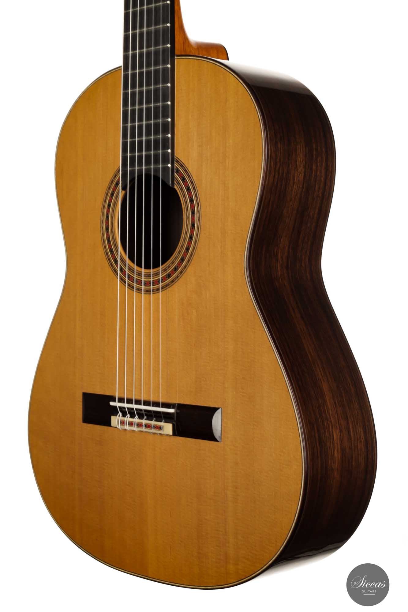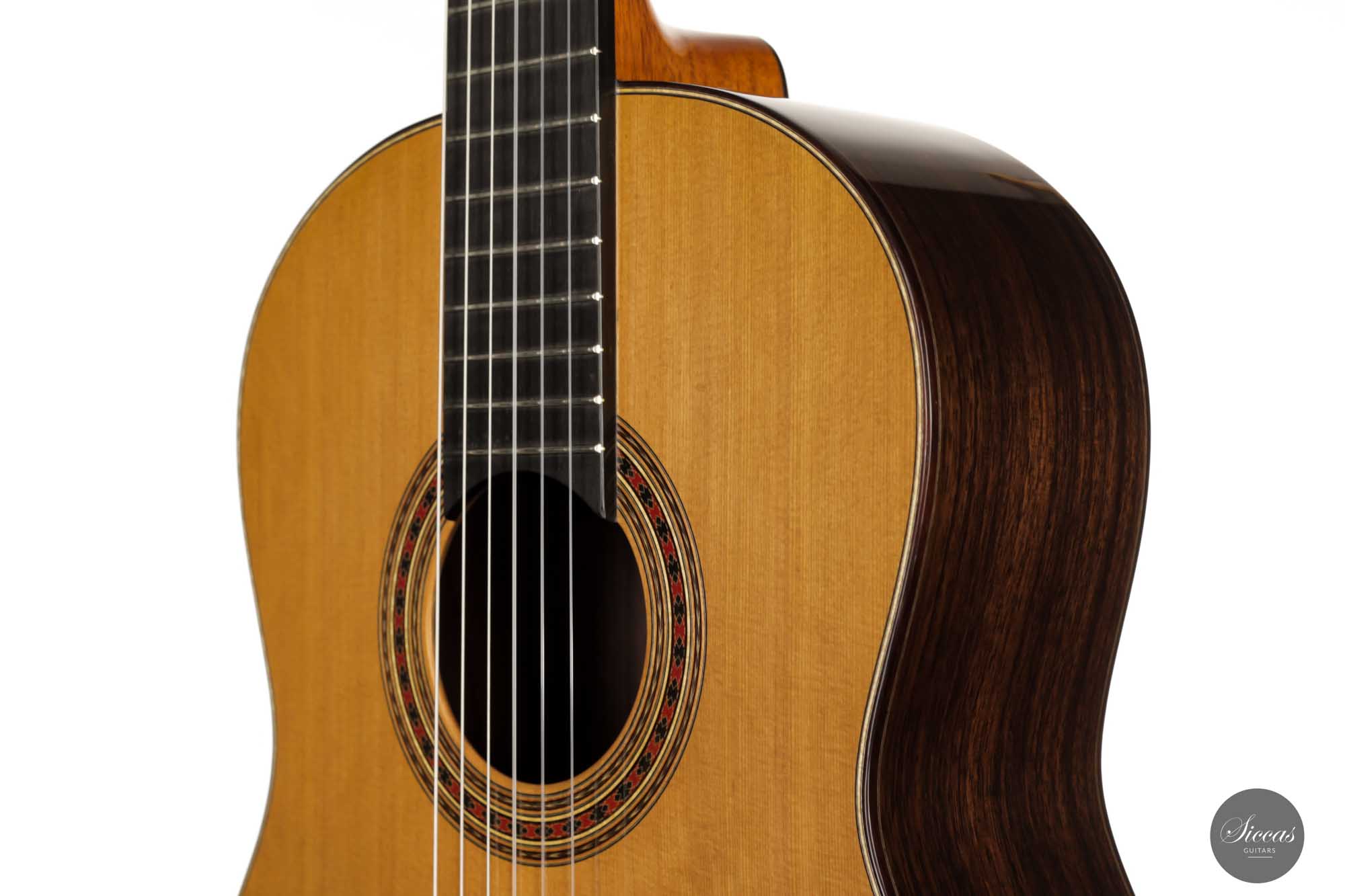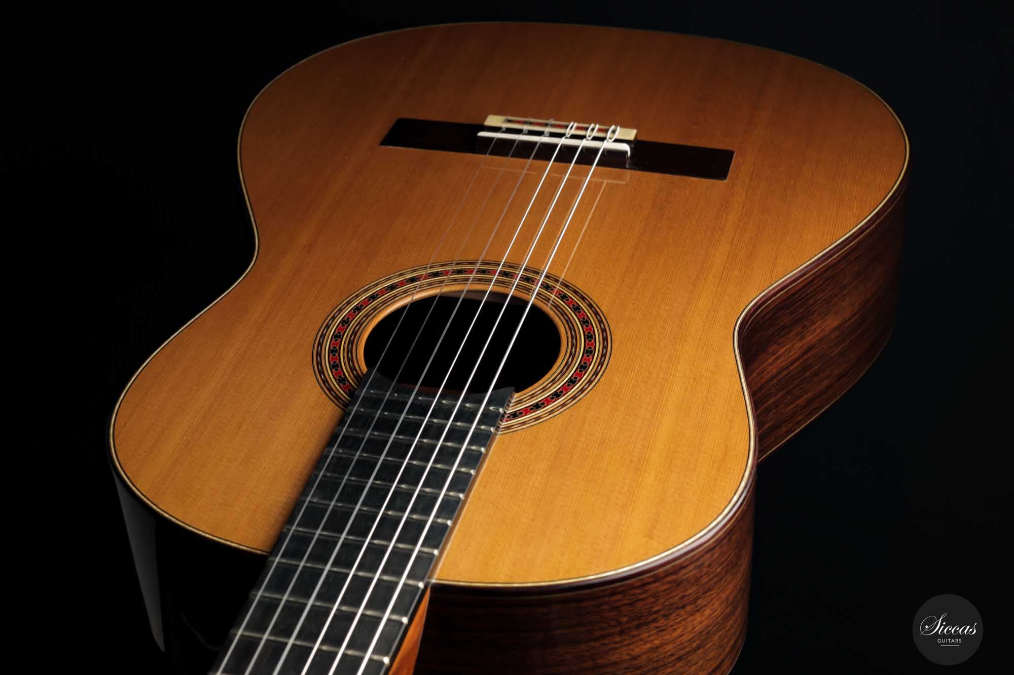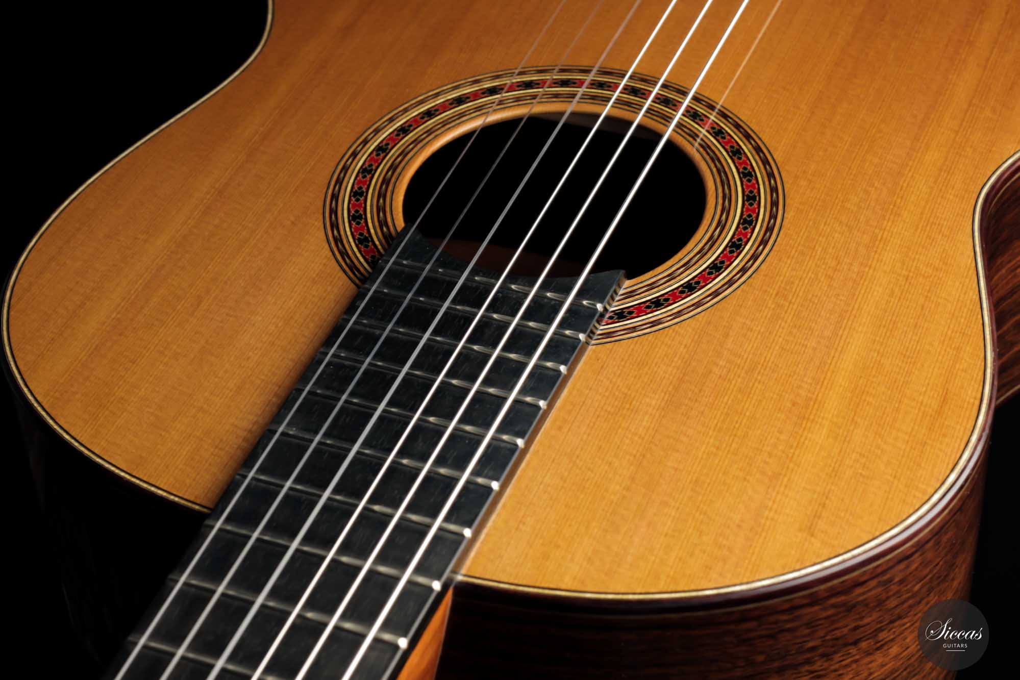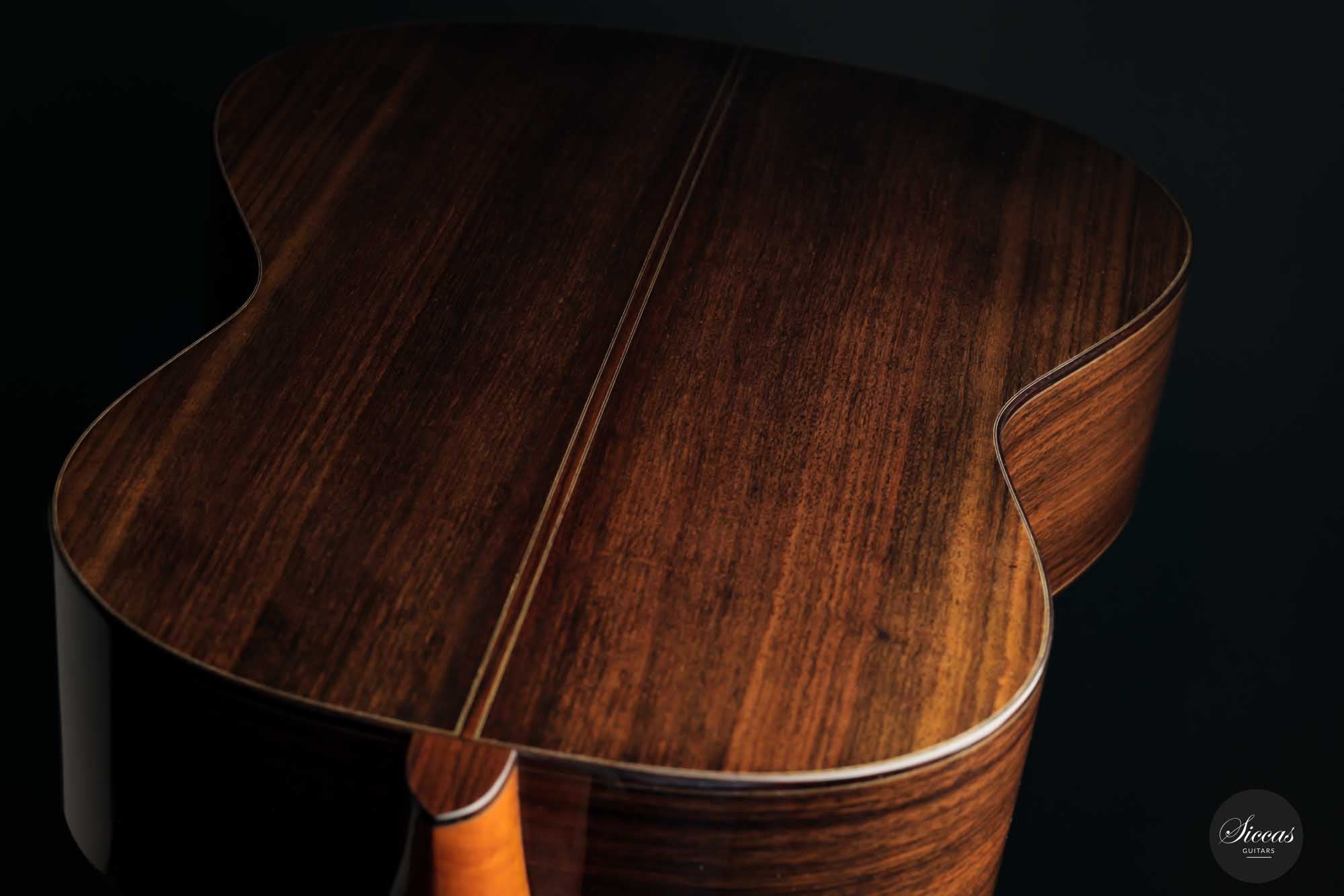 Dass es Thomas Dauge gelungen ist, eine exakte Kopie der Gitarre von Daniel Friederich anzufertigen, kann man an dieser Gitarre Nummer 156 aus dem Jahr 2022 sehen. Diese originalgetreue Replik entspricht dem Vorbild in jedem Detail, sowohl in der Qualität der Hölzer als auch in der perfekten Ausführung aller Feinheiten. Thomas Dauge hat das Wesen von Friederichs Gitarren in allen Aspekten erfasst. Auch klanglich erkennt man, dass ein gutes Verständnis der sehr komplexen Friederich-Charakter vorhanden ist. Eine exzellente Projektion, gepaart mit einem harmonischen Klang und langem Sustain, genau wie beim Original. Die erstklassigen Rodgers-Mechaniken unterstreichen die hervorragende Qualität dieser Thomas-Dauge-Gitarre. Dieses Instrument ist optimal eingestellt, so dass das Spielen über einen längeren Zeitraum ein großes Vergnügen ist. Eine einzigartige Gelegenheit ein Instrument mit den Charakteristiken der berühmten Friederich Gitarren zu einem sehr attraktiven Preis zu erhalten.