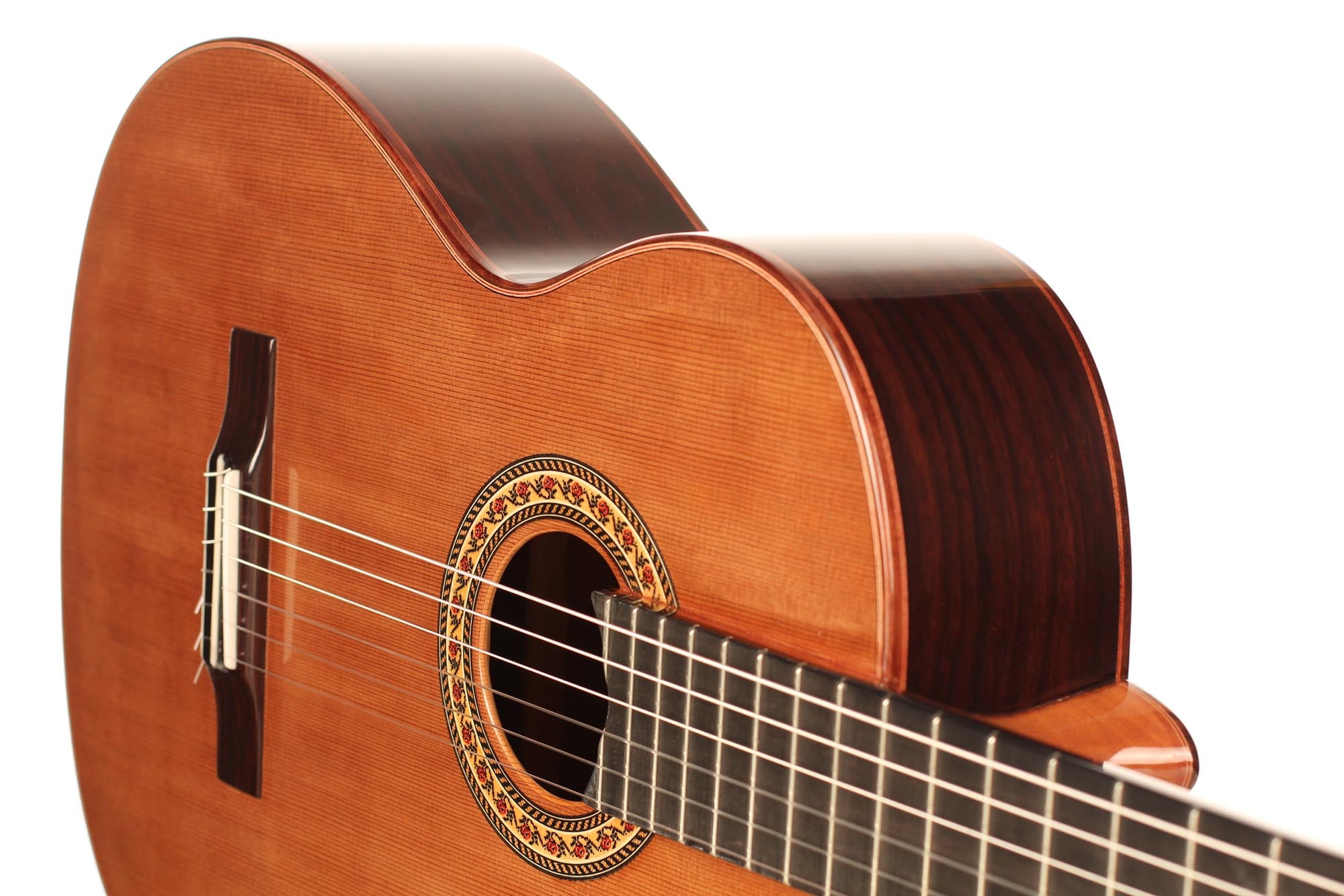 Diese Double-Top-Gitarre ist sehr klar und kraftvoll. Die Klarheit der Akkorde ist beeindruckend und die Spielbarkeit ist großartig. Diese Gitarre besitzt alle Vorteile der Double-Top-Technologie: große Lautstärke, schnelle Ansprache, Spielkomfort usw. Eine großartige Konzertgitarre, ideal für große Konzertsäle und Kammermusik.