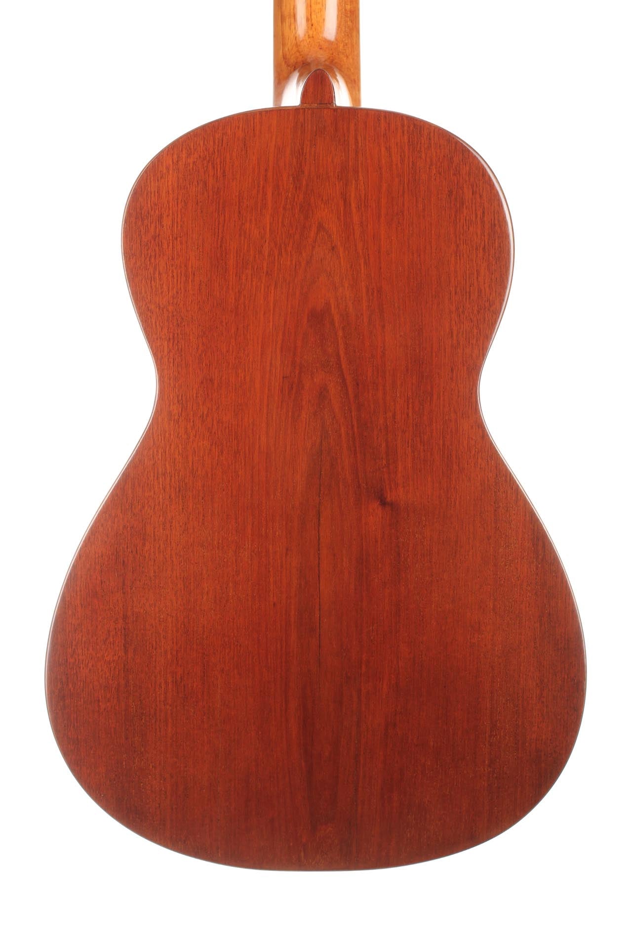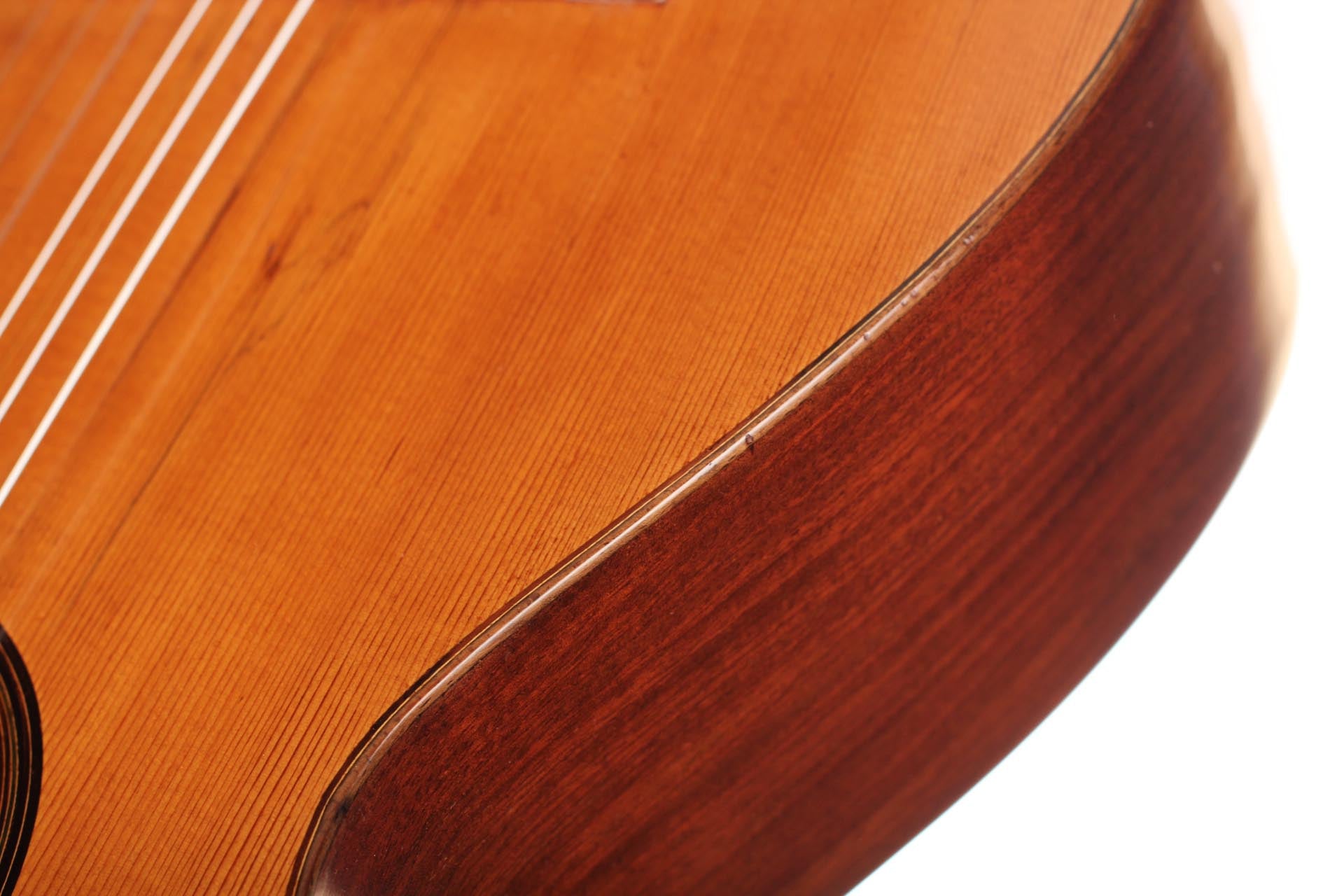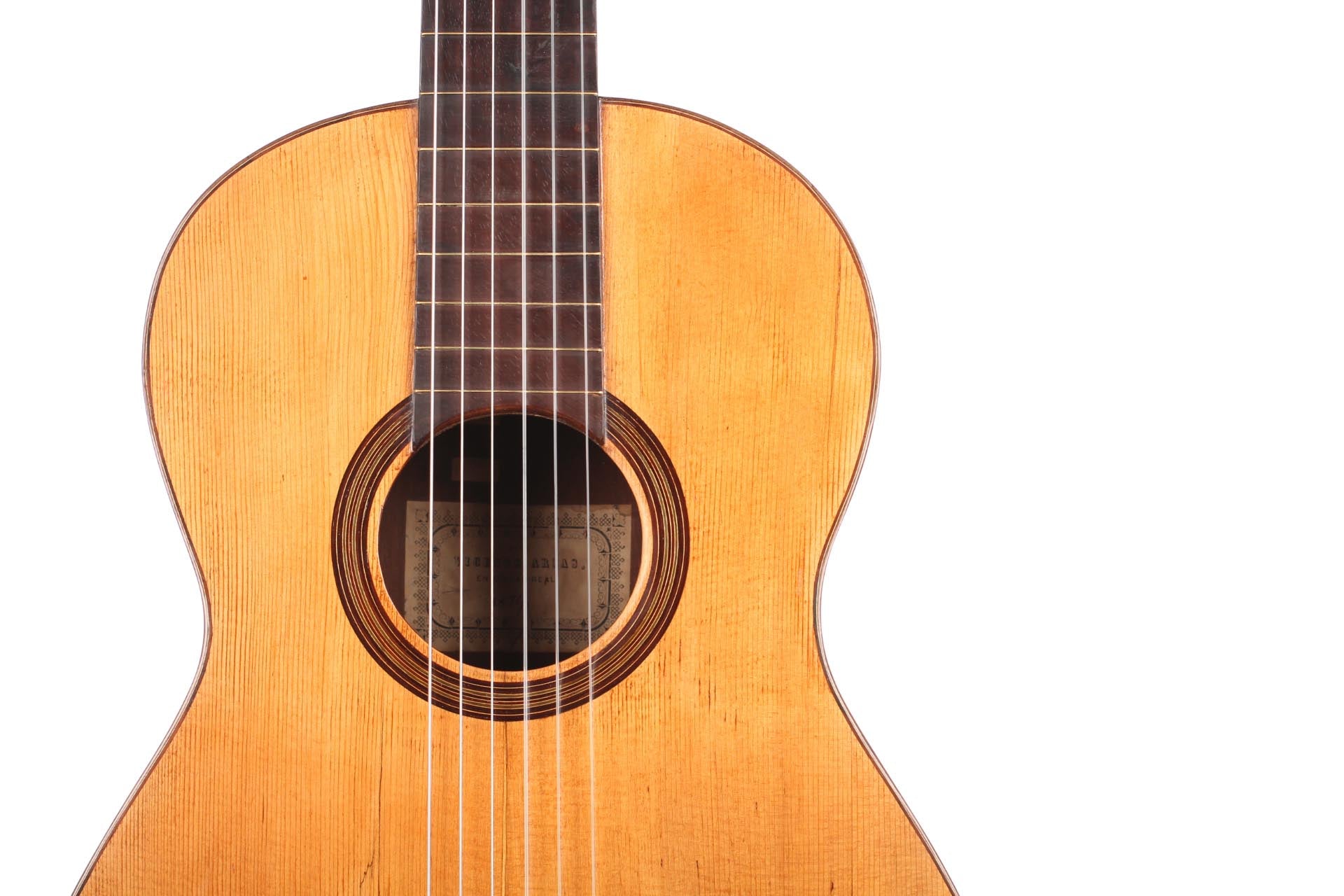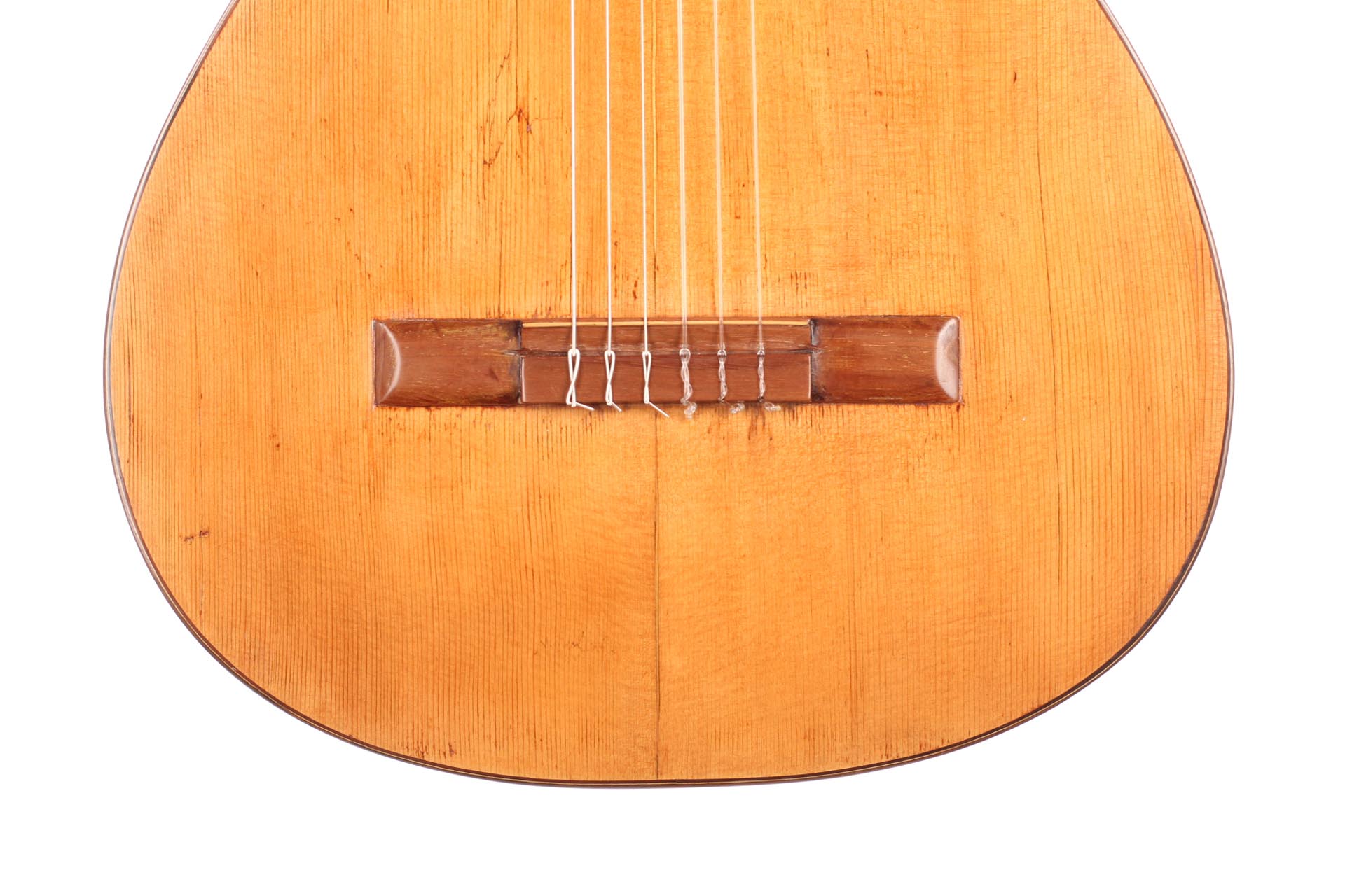 Vicente Arias (1833-1914) wurde in Ciudad Real, südlich von Madrid geboren. Wie auch Antonio de Torres war er ursprünglich ein Tischler, der autodidaktisch den Gitarrenbau erlernte. Wahrscheinlich begann er um 1860 Gitarren zu bauen. Während seiner Karriere gewann er viele bedeutende Preise rund um den Globus, wie z.B. in Buenos Aires, Madrid, Brüssel und Barcelona. Der wohl berühmteste Gitarrist, der seine Gitarren spielte, ist Francisco Tárrega. Diese hier vorgestellte Gitarre mit Fichtendecke wurde 1874 gebaut und befindet sich in einem für das Alter beeindruckend gutem Zustand. Die Decke weißt kleinere Reparaturen auf, ist aber für das Alter von über 140 Jahren in einem sehr gutem Zustand. Der Mahagoni Boden und die Zargen sind ebenso in sehr gutem Zustand. Lediglich eine kleine Stelle in der Zarge wurde ersetzt (siehe Foto). Diese Gitarre ist ein wunderbares Instrument. Es macht große Freude all die vielen Klangfarben zu entdecken und bietet dem Spieler großartige Möglichkeiten sich künstlerisch auszuleben. Inklusive Hartschalenkoffer.