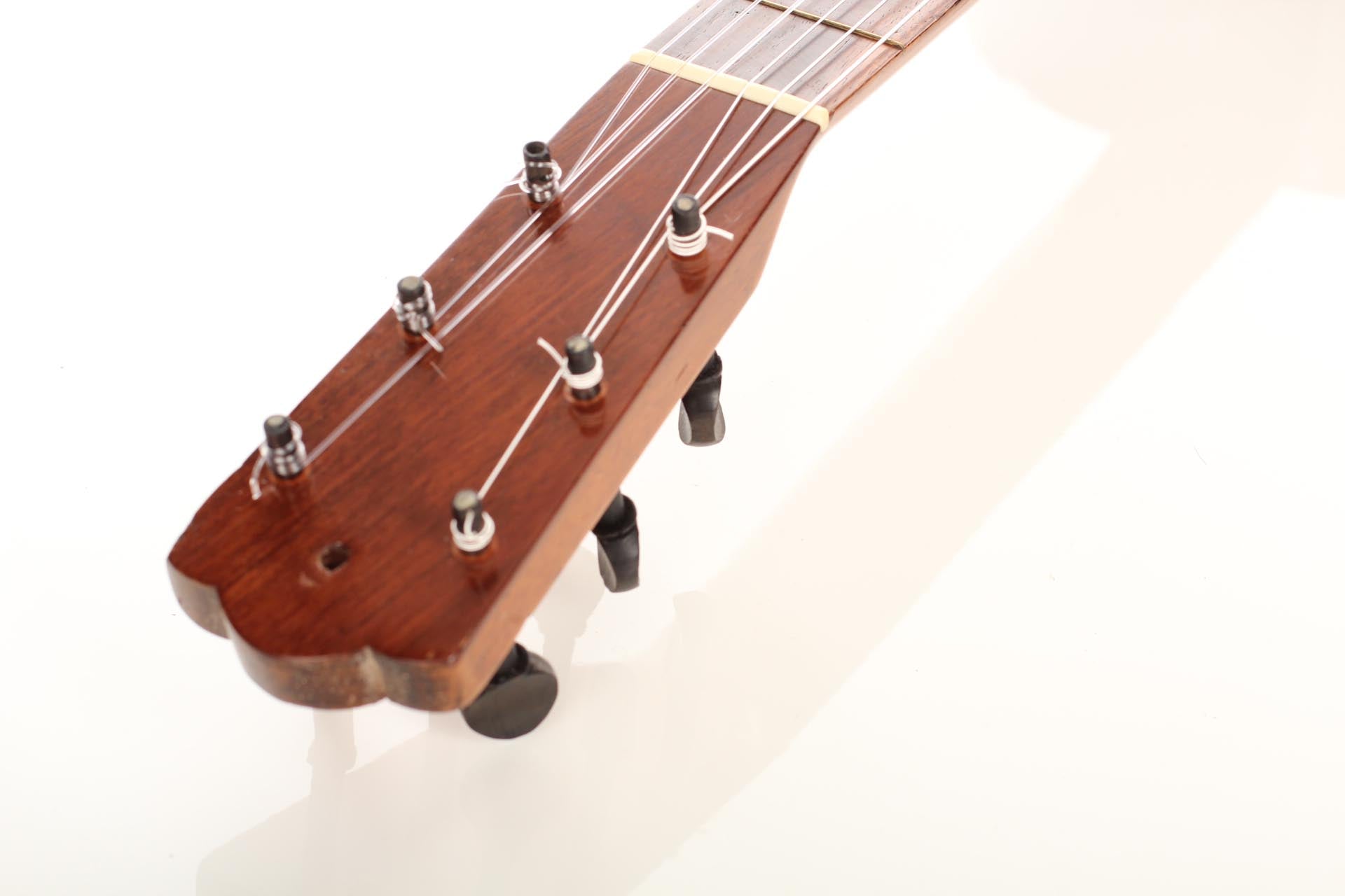 This guitar has THE sound. The timbre of this instrument is tremendously profound and complex, slightly dark. Even though it is small bodied, the volume and projection of the guitar are stunning. It is an inviting and transporting guitar that will seduce any collector or old-world sound lover. Hard-shell case included.