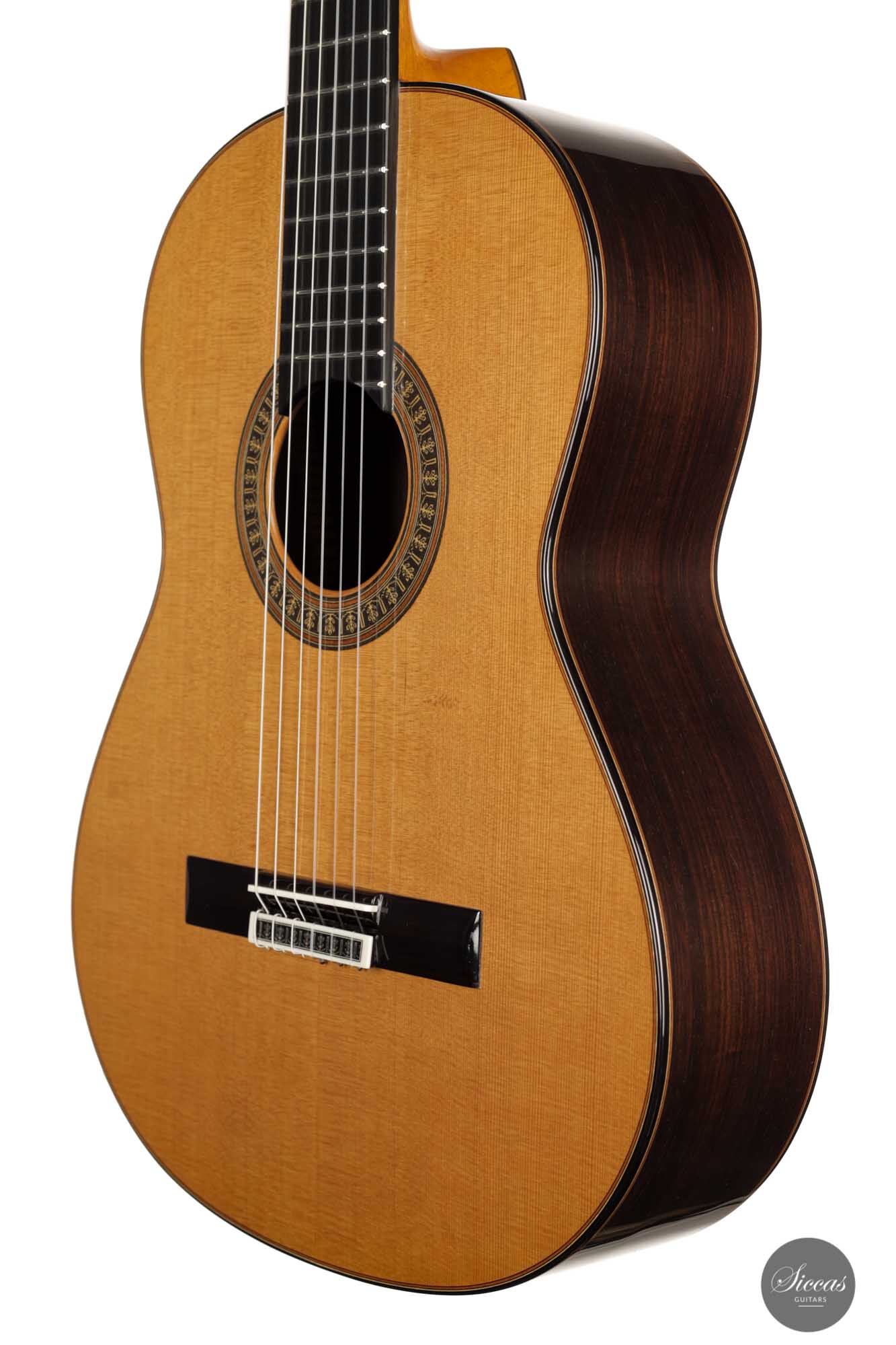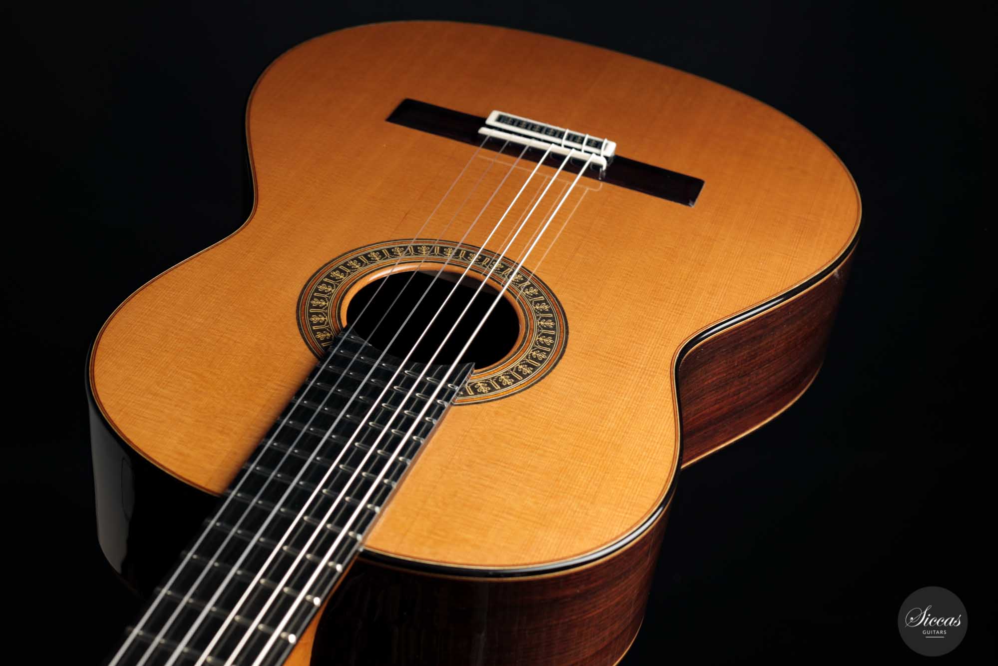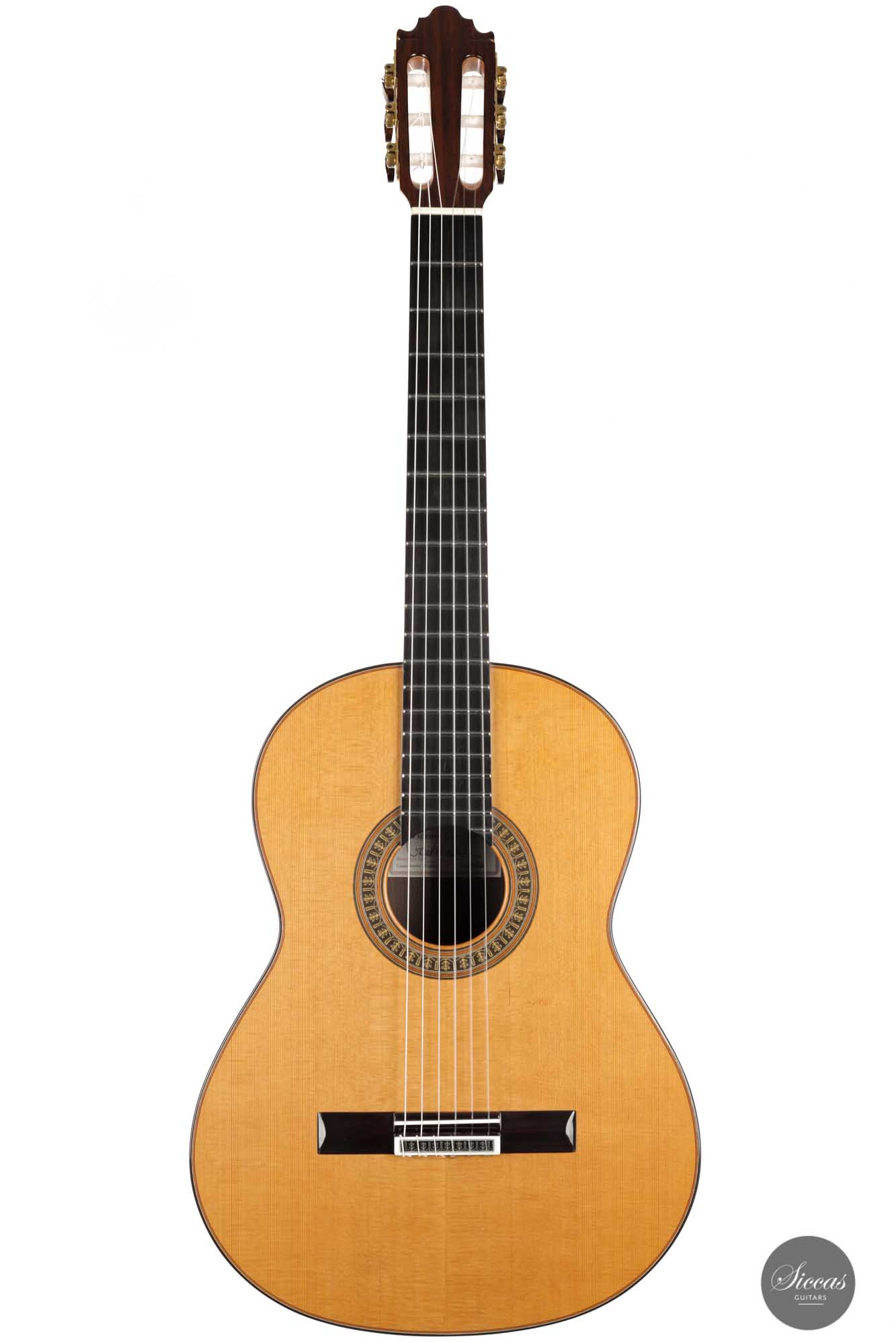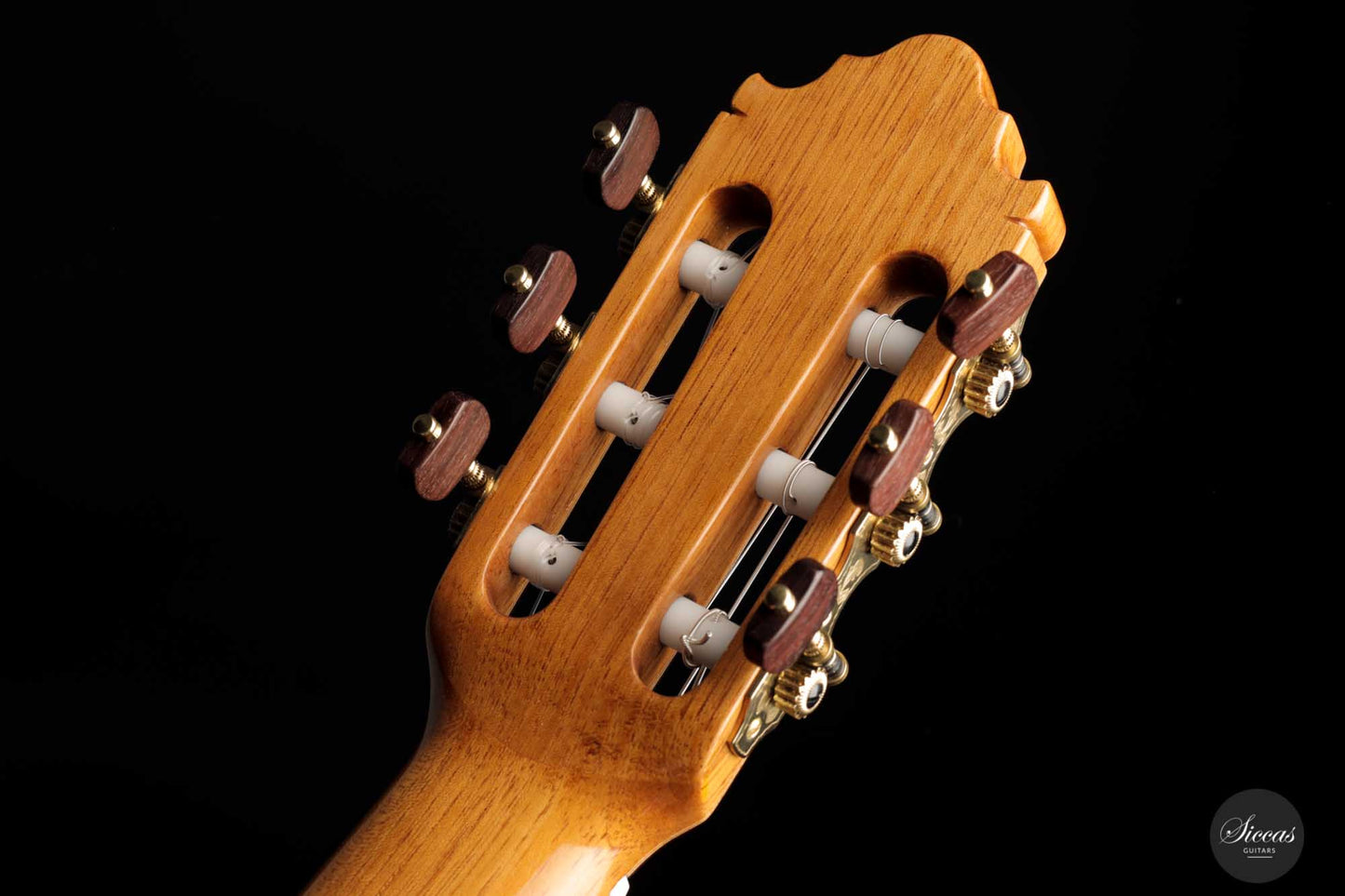 The "Herencia" model is Vicente Carrillo's most famous model and is an accurate benchmark of his distinguished luthiery skills. You will often see the Herencia on stage, in international competitions, or in your local music school in your teacher's hand. This guitar, an homage to the heritage left by his guitar makers' family, is a blend of tradition and modernity. It features a carbon-free lattice bracing made of spruce, which, combined with the cedar soundboard, provides a mighty warm and precise sound. The thickness and darkness of the tone are striking, yet, a certain clarity makes the counterpoint effortless to follow. The sensitivity and mellowness of the trebles are particularly remarkable on this guitar, and the amount of emotion that the guitarist can carry with this instrument is exceptional.