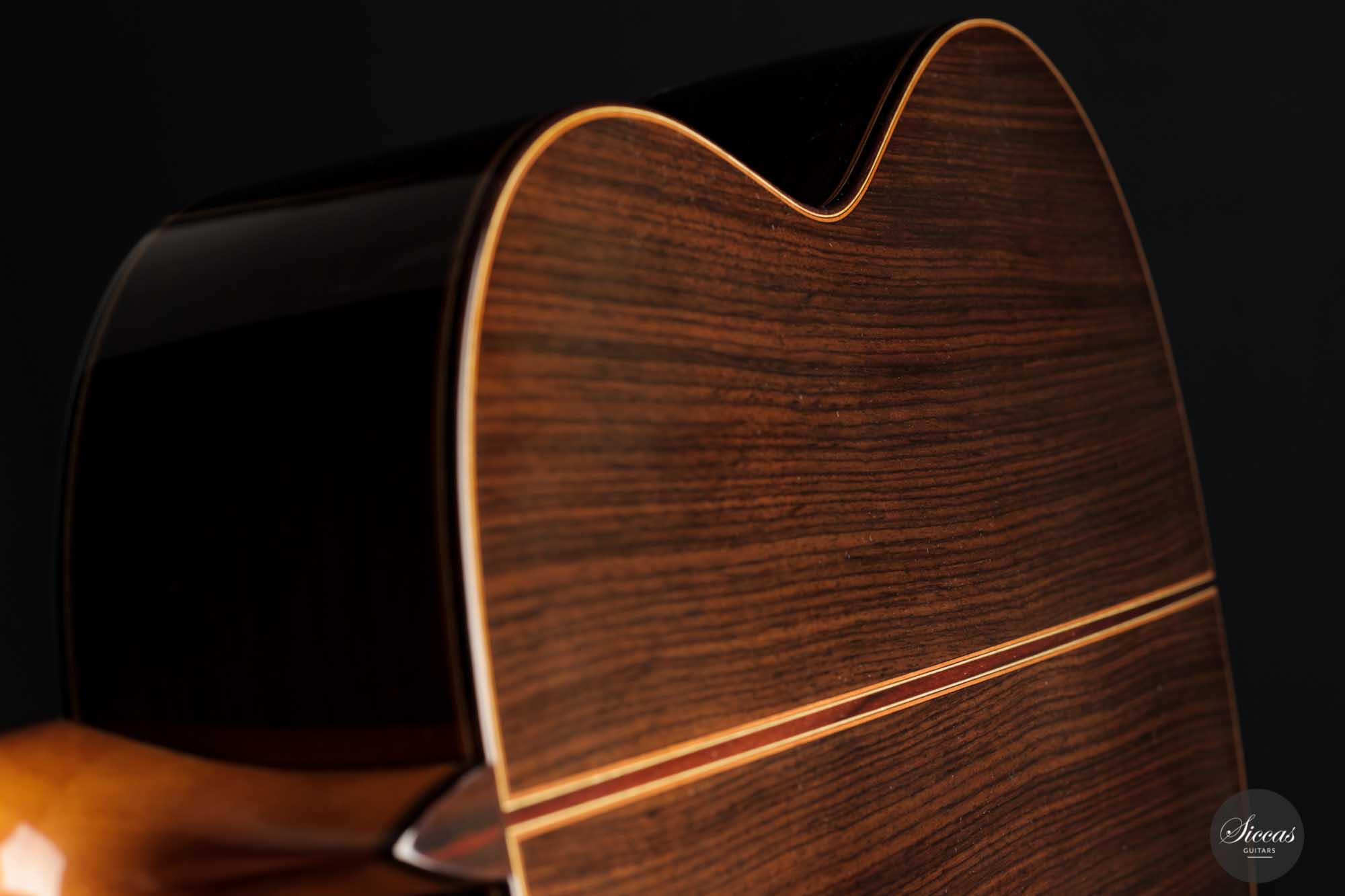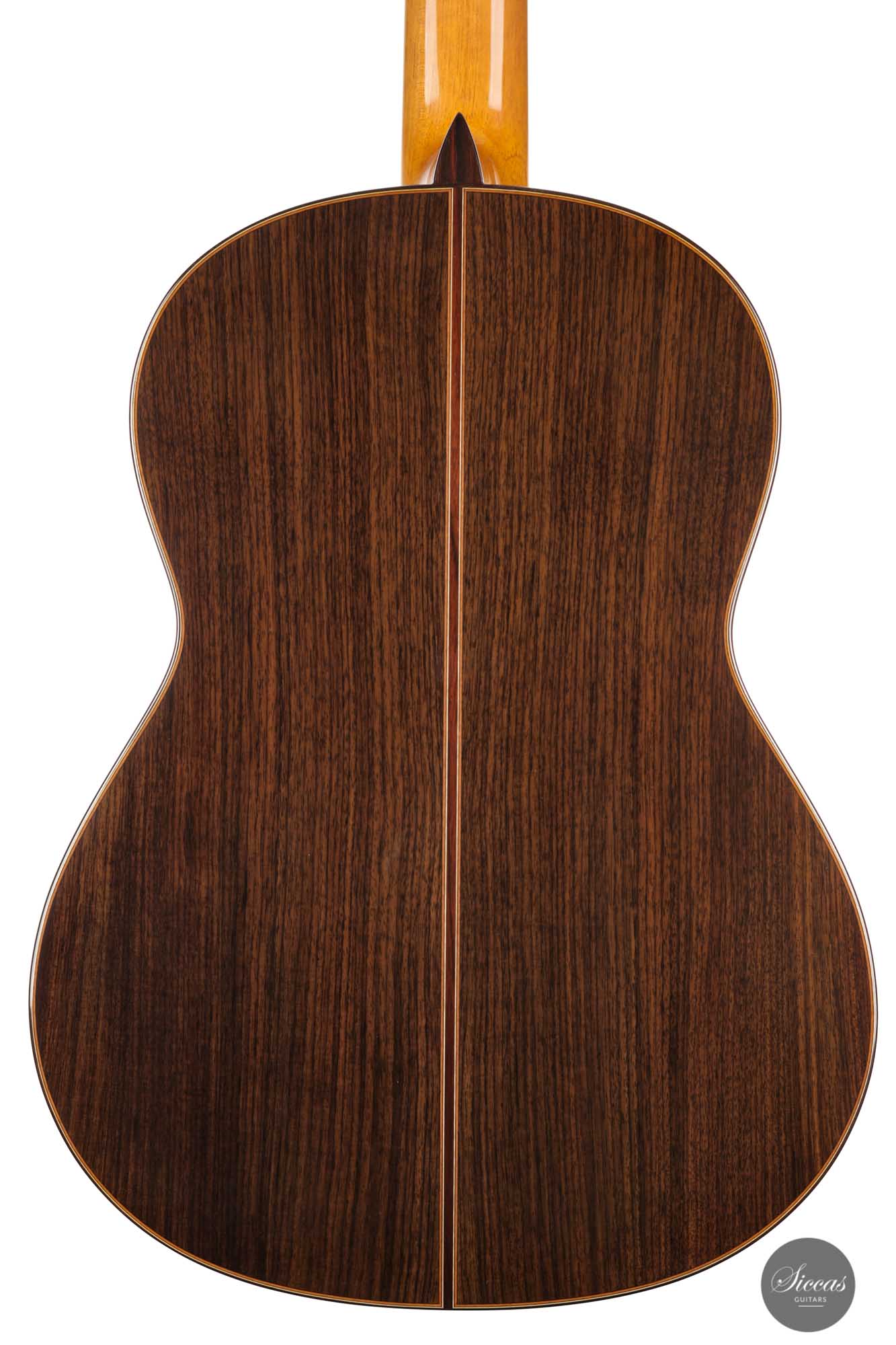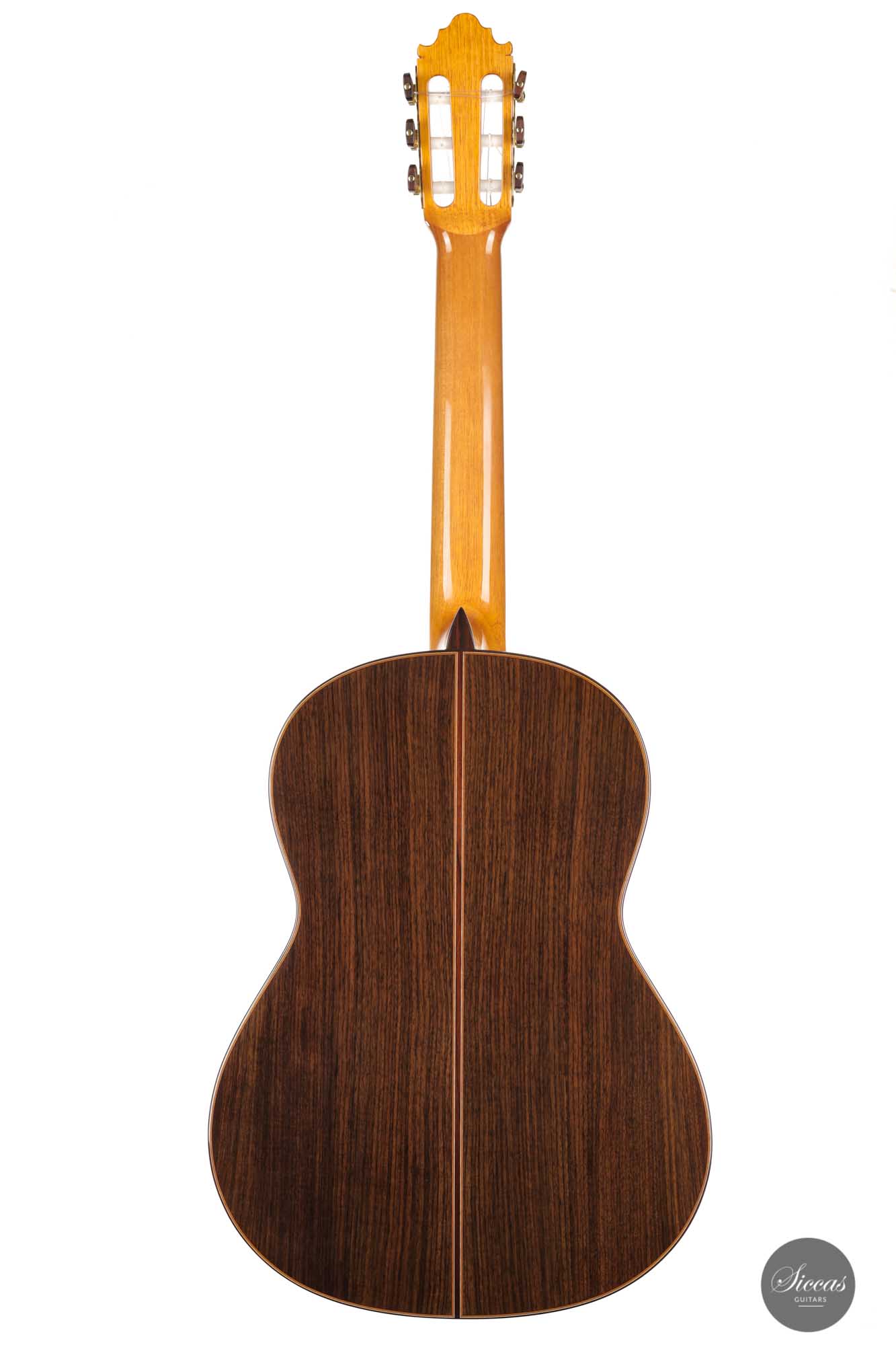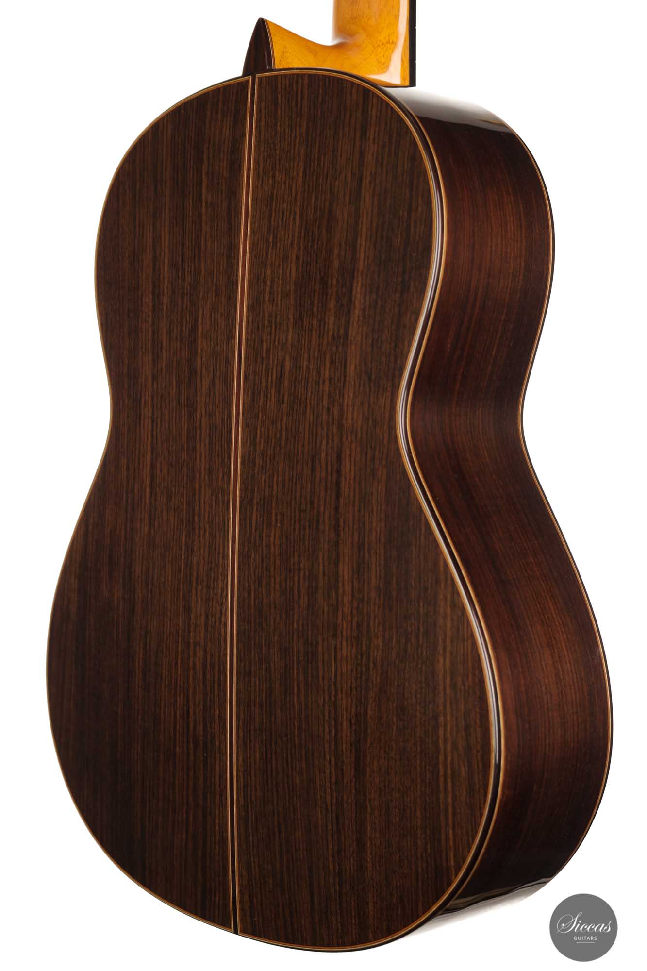 The "Herencia" model is Vicente Carrillo's most famous model and is an accurate benchmark of his distinguished luthiery skills. You will often see the Herencia on stage, in international competitions, or in your local music school in your teacher's hand. This guitar, an homage to the heritage left by his guitar makers' family, is a blend of tradition and modernity. It features a carbon-free lattice bracing made of spruce, which, combined with the cedar soundboard, provides a mighty warm and precise sound. The thickness and darkness of the tone are striking, yet, a certain clarity makes the counterpoint effortless to follow. The sensitivity and mellowness of the trebles are particularly remarkable on this guitar, and the amount of emotion that the guitarist can carry with this instrument is exceptional.