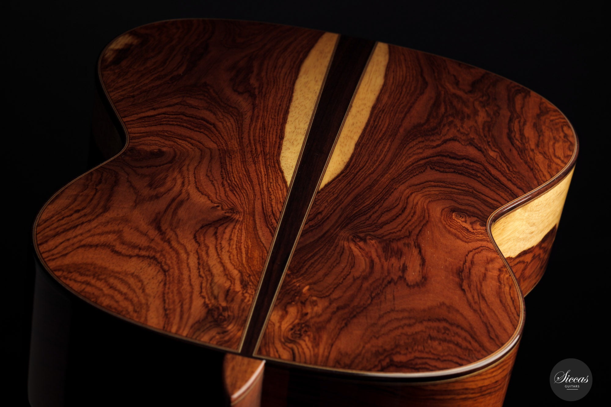 Preis auf AnfrageGitarrenbauer: Fritz OberBaujahr: 2019Decke: SpruceBoden und Zargen: Brazilian rosewood (CITES certified)Deckenoberfläche: French polishKorpusoberfläche: French polishLuftresonanz: C sharp / DGewicht (g): 1345Mechaniken: Klaus SchellerZustand: Excellent -