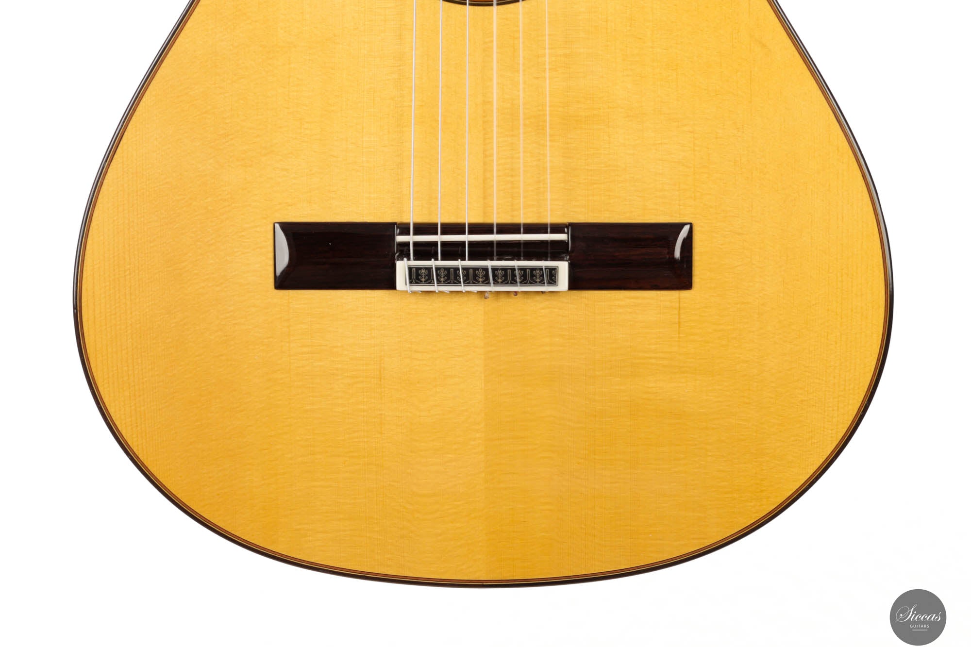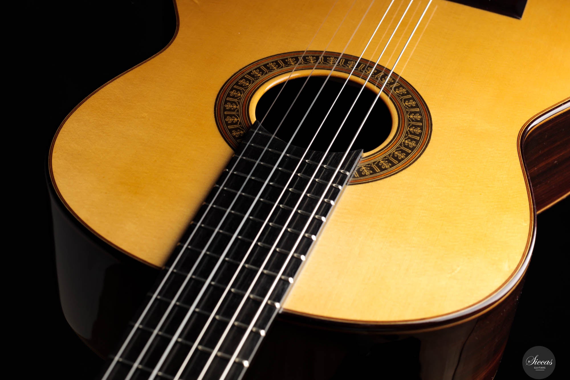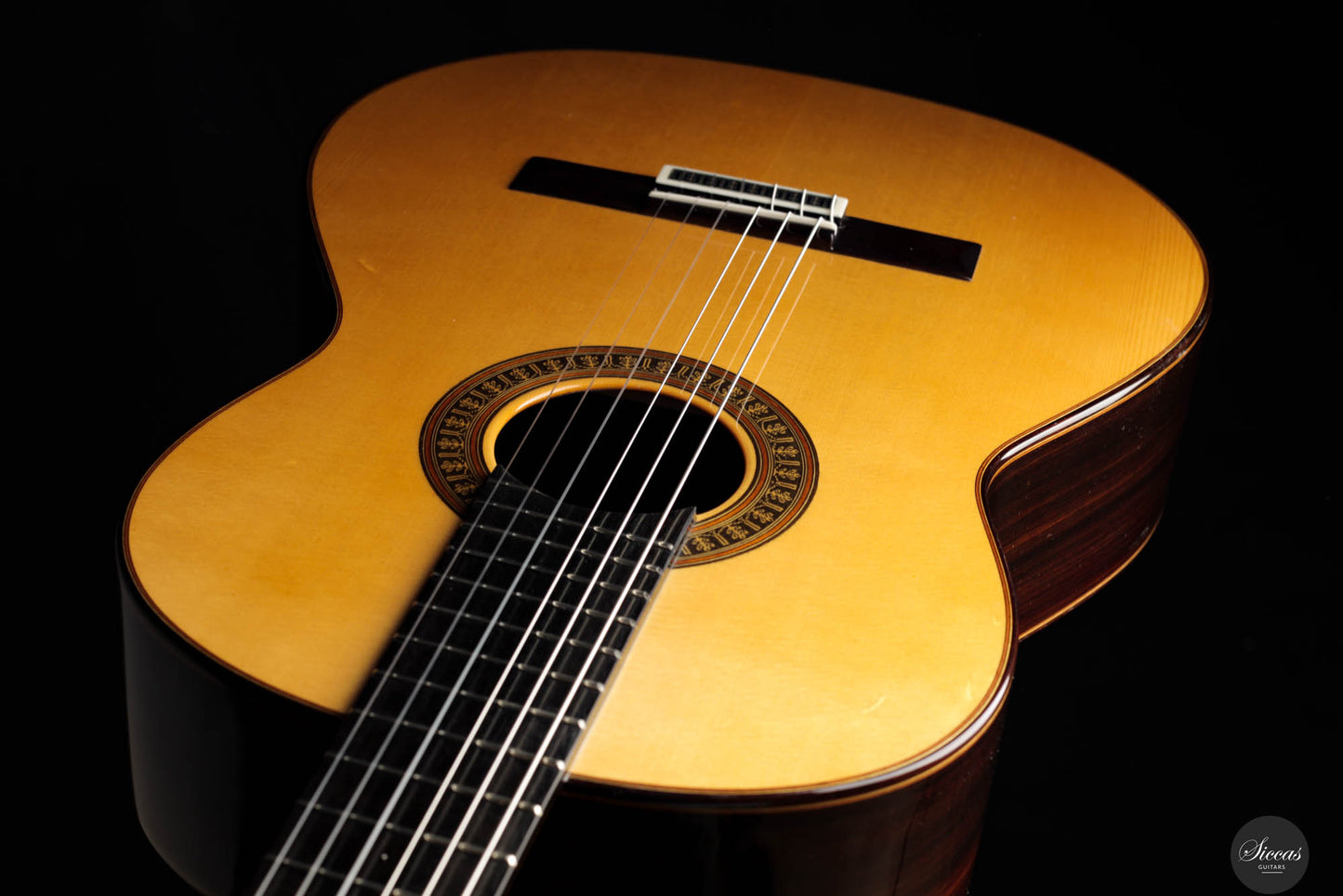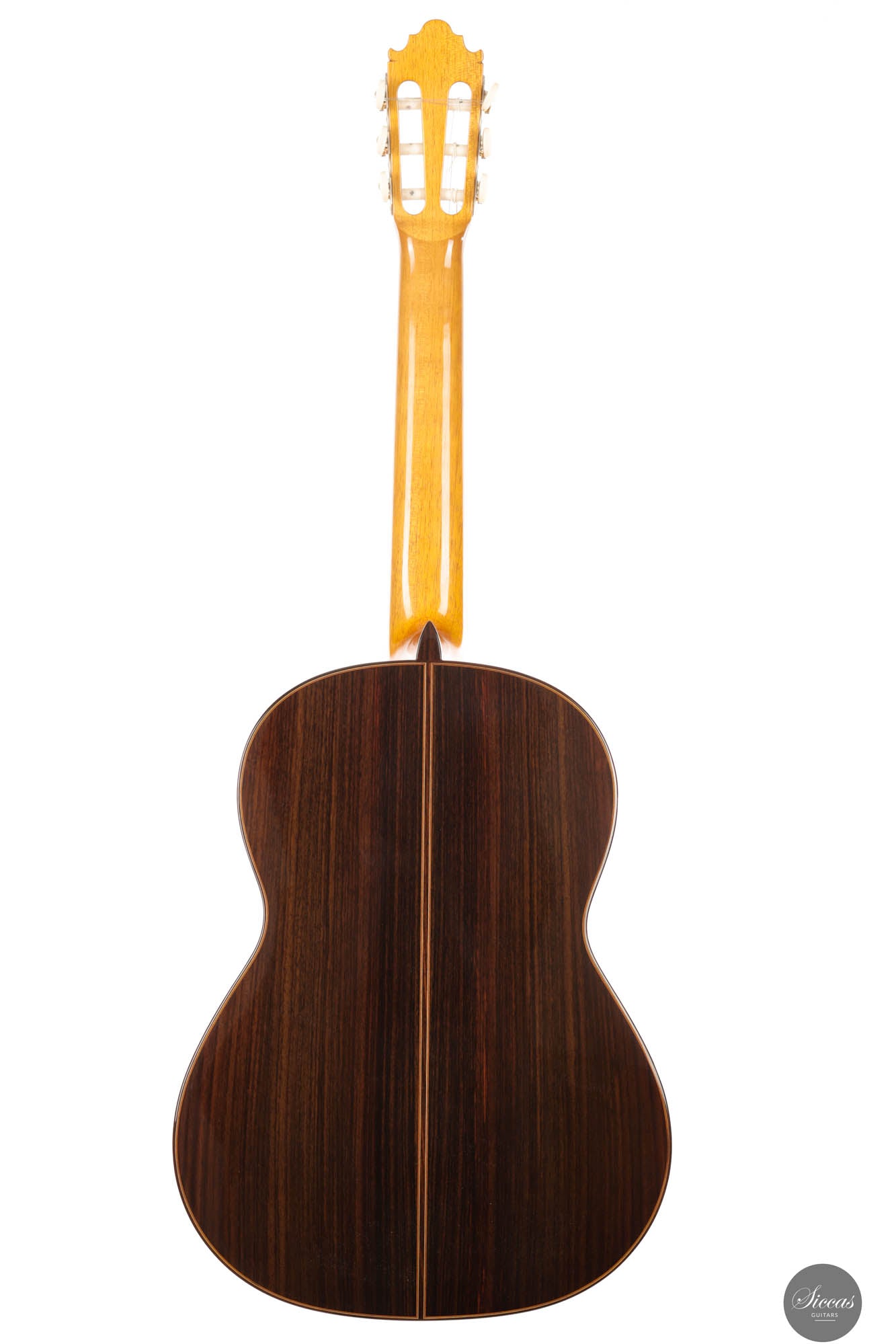 The "Herencia" model is Vicente Carrillo's most famous model and is an accurate benchmark of his distinguished luthiery skills. You will often see the Herencia on stage, in international competitions, or in your local music school in your teacher's hand. This guitar, an homage to the heritage left by his guitar makers' family, is a blend of tradition and modernity. It features a carbon-free lattice bracing made of spruce, which, combined with the spruce soundboard, provides a clear and precise sound. The thickness and darkness of the tone are striking, yet, a certain clarity makes the counterpoint effortless to follow. The sensitivity and mellowness of the trebles are particularly remarkable on this guitar, and the amount of emotion that the guitarist can carry with this instrument is exceptional.