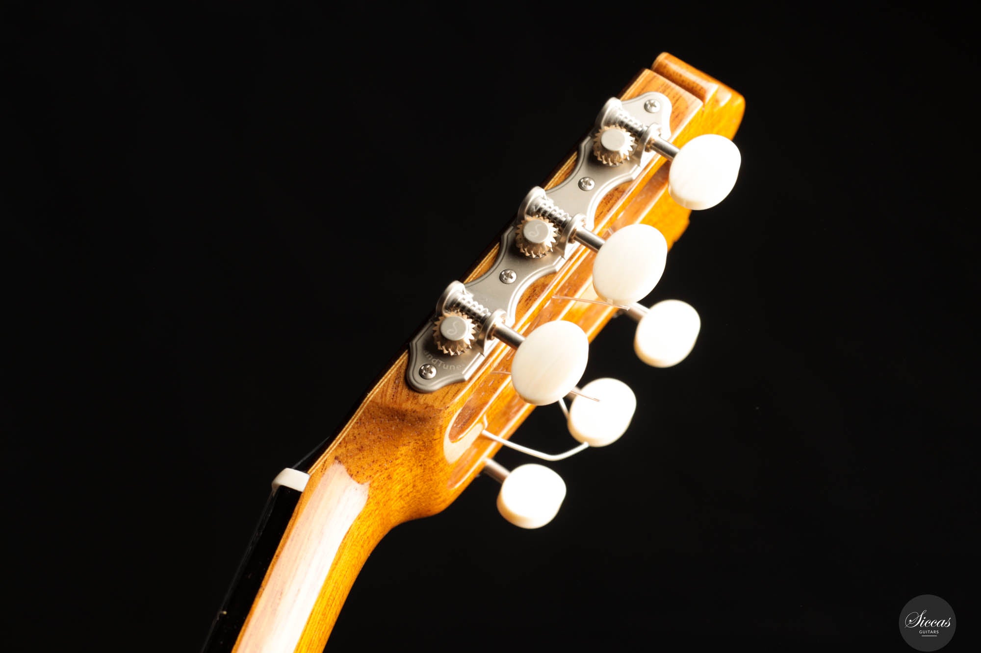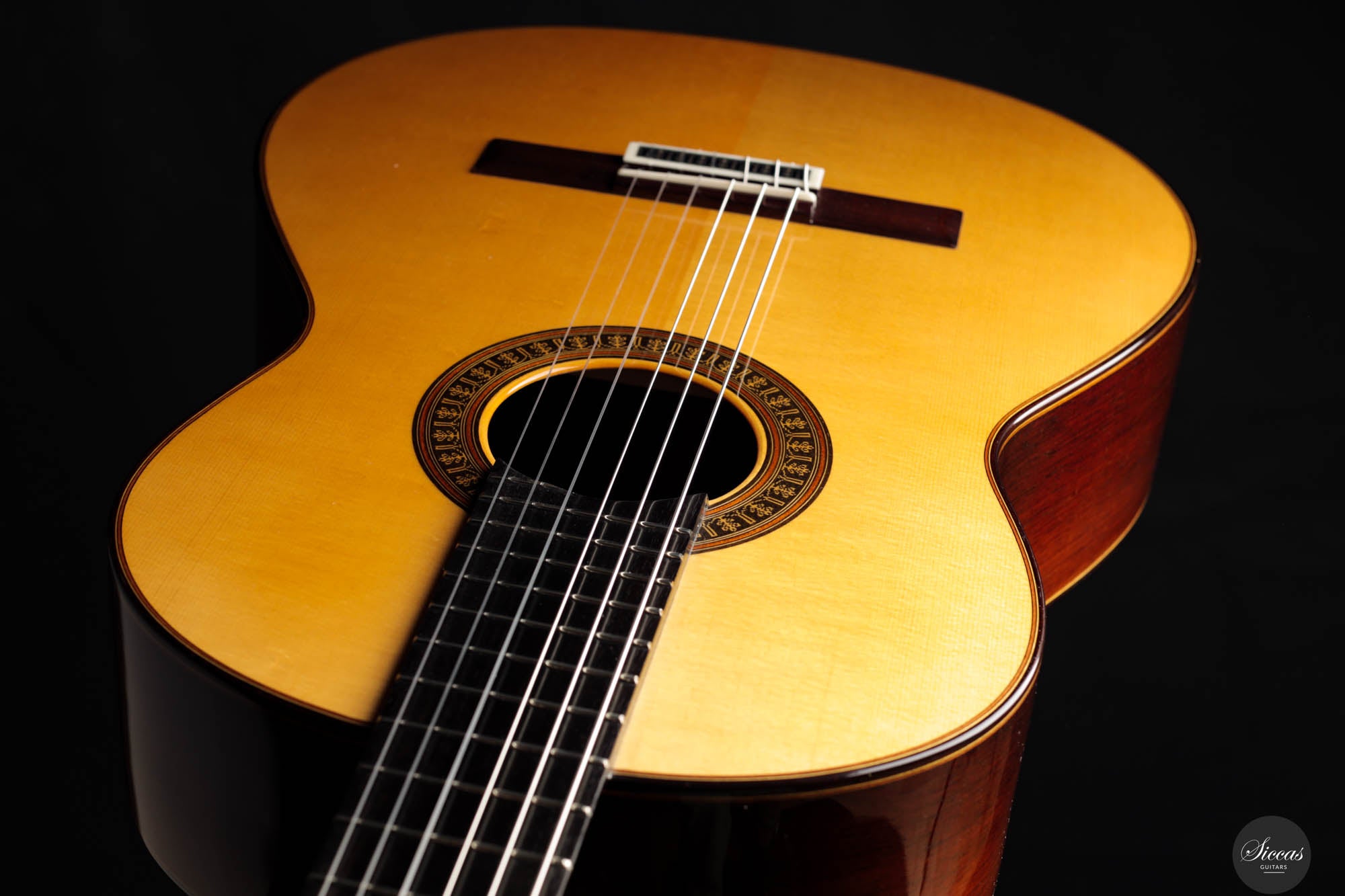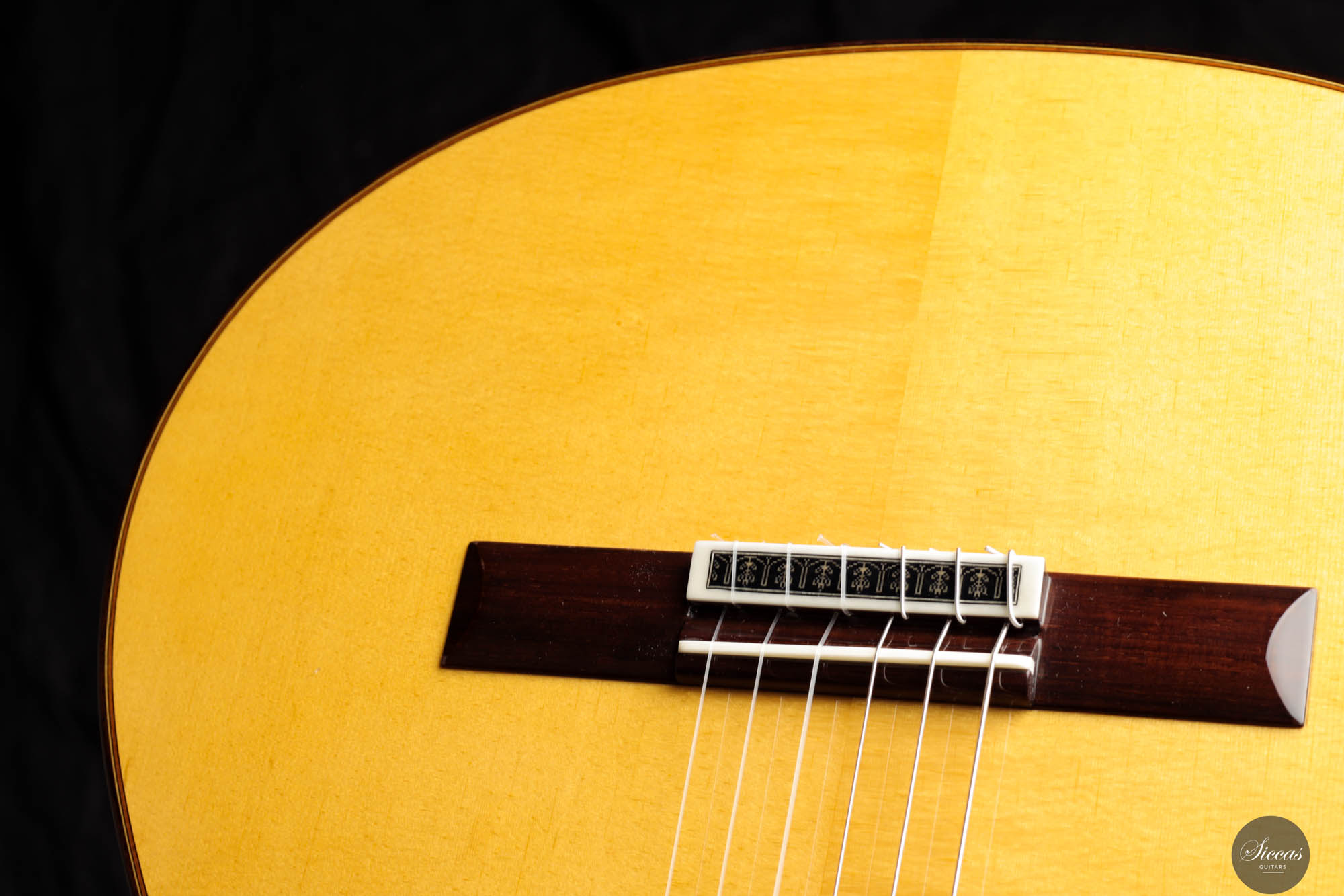Das „Herencia“-Modell ist Vicente Carrillos berühmtestes Modell und ein genaues Maß für seine herausragenden Fähigkeiten im Gitarrenbau. Häufig sieht man die Herencia auf Bühnen, in internationalen Wettbewerben oder in den Händen Ihres Lehrers in Ihrer örtlichen Musikschule. Diese Gitarre, eine Hommage an das Erbe, das seine Familie von Gitarrenbauern hinterlassen hat, ist eine Mischung aus Tradition und Moderne. Sie verfügt über ein kohlenstofffreies Gitterleistensystem aus Fichte, das in Kombination mit der Fichtenschalldecke einen klaren und präzisen Klang bietet. Die Dicke und Dunkelheit des Tons sind beeindruckend, und doch ermöglicht eine gewisse Klarheit, dass der Kontrapunkt mühelos verfolgt werden kann. Die Sensibilität und Weichheit der Höhen sind bei dieser Gitarre besonders bemerkenswert, und die Menge an Emotion, die der Gitarrist mit diesem Instrument transportieren kann, ist außergewöhnlich.