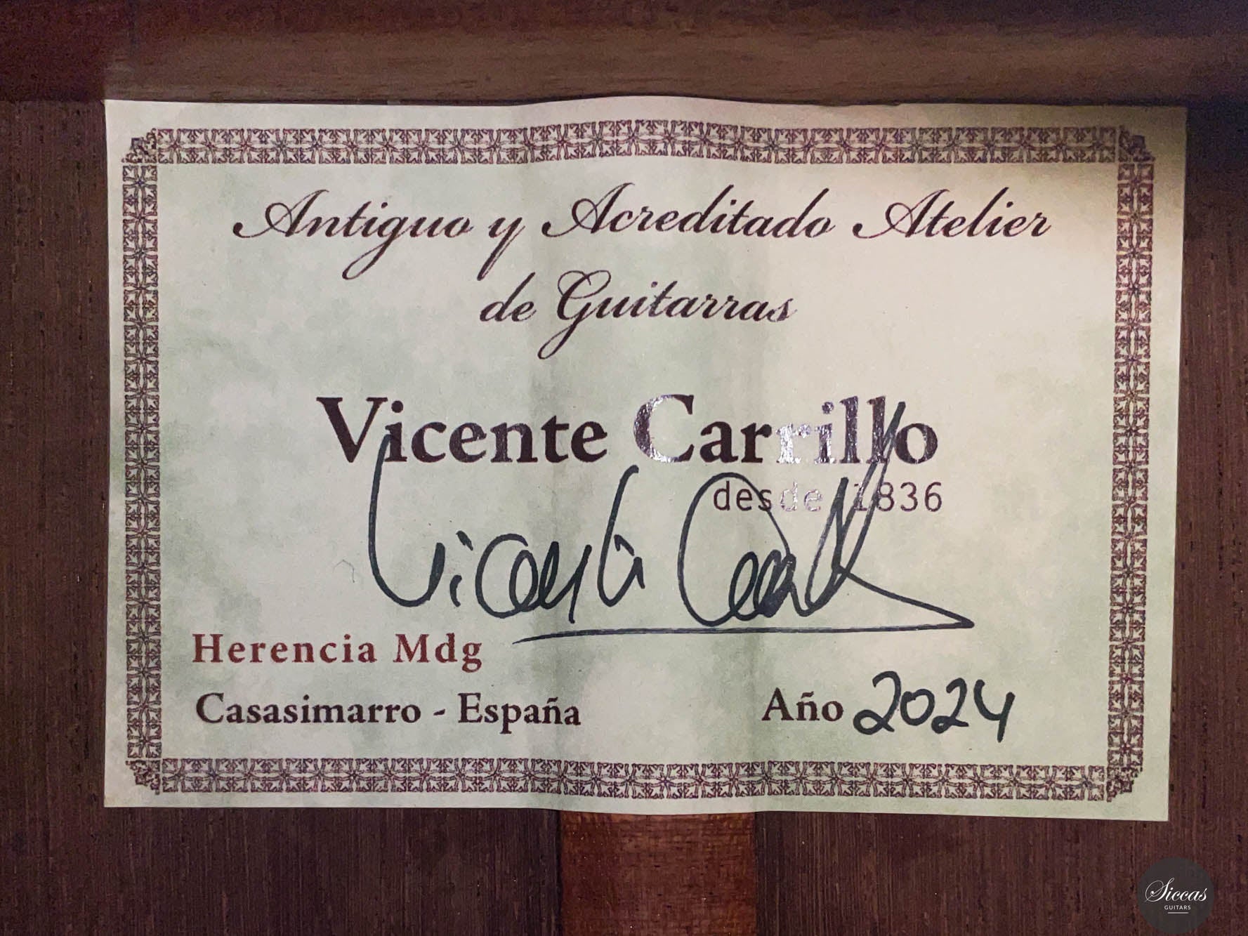 Vicente Carrillo wurde 2009 mit dem „Regional Craftsmanship Award“ und 2010 auch mit dem „National Award“ ausgezeichnet. Alle seine Gitarren haben einen ausgeprägten Klang, der eine ausgewogene Balance zwischen tragenden Bässen und lieblichen Höhen bietet. In seiner Werkstatt ist Innovation immer ein wichtiger Faktor. Er verwendet verschiedene Konstruktionstechniken und entwickelt sich dadurch ständig weiter, um die Kunst des Gitarrenbaus noch besser zu verstehen. Künstler, die von Vicente Carrillo gebaute Gitarren spielen oder gespielt haben, sind unter anderem: Paco de Lucía, Tomatito, J.M. Cañizarez, El Niño Josele, Rafael Cañizares, Javier Limón, Keith Richards & Josemi Carmona (Ketama).