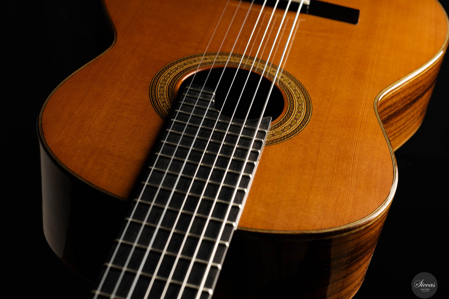 Vicente Carrillo und Yamandu Costa haben ihre Expertise vereint, um eine einzigartige 7-saitige Gitarrenlinie zu kreieren. Yamandu, bekannt für seine innovative Musik und seine Meisterschaft auf der 7-saitigen Gitarre, suchte nach einem Instrument, das neue klangliche Erkundungen und Techniken ermöglicht. Vicente, mit über vier Jahrzehnten Erfahrung als Gitarrenbauer und einer besonderen Begabung für den Bau von 7-saitigen Gitarren, ging begeistert auf diese Zusammenarbeit ein. Das Ergebnis? Eine Serie von 7-saitigen Gitarren, die einen kraftvollen und einzigartigen Klang bieten und sich nahtlos mit Yamandus Musikstil verbinden.