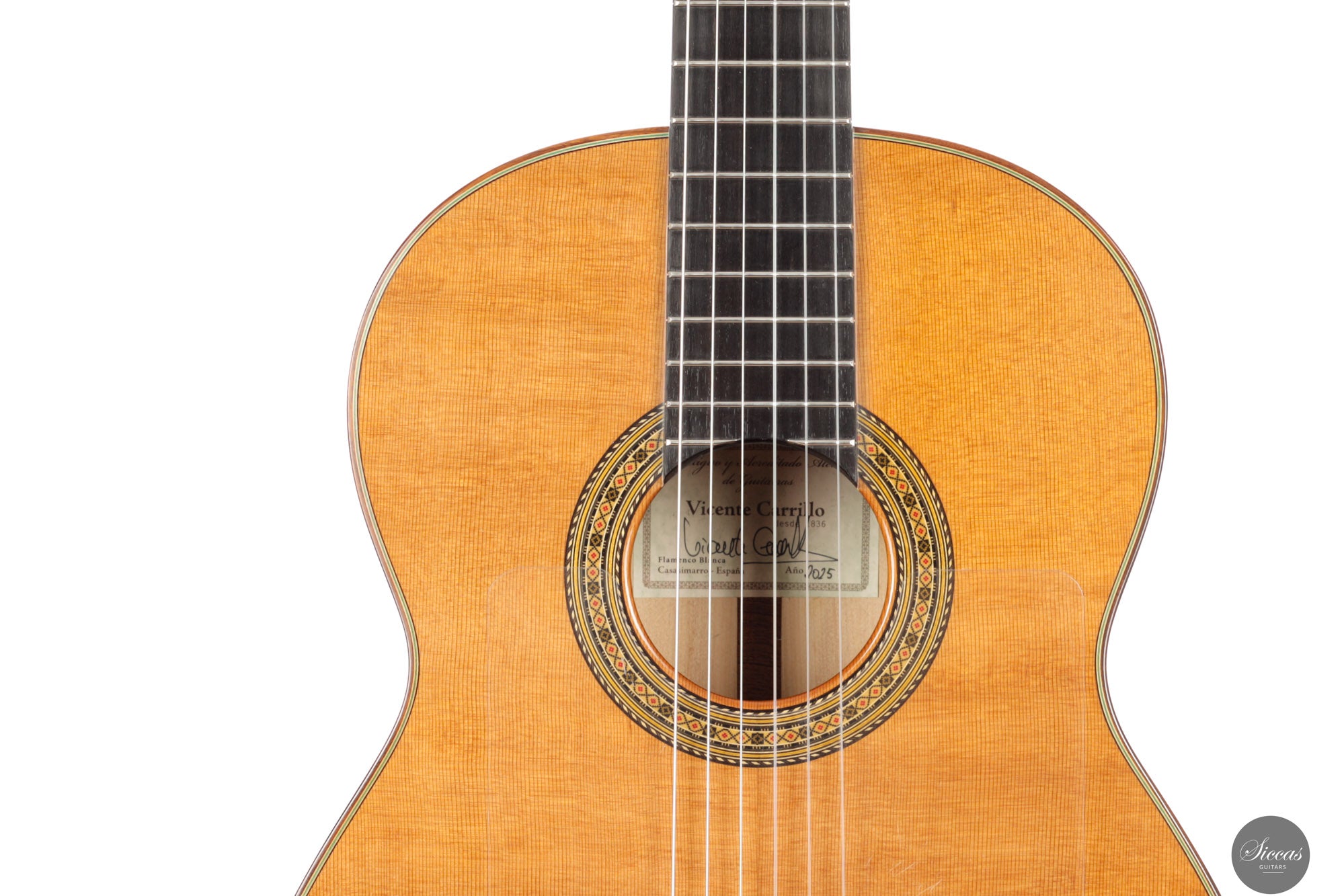 Die Familie Carrillo begann 1744 in Casasimarro mit dem Gitarrenbau – einem Ort in der Region Manchuela Conquense, der bereits im 19. Jahrhundert als „El pueblo de las guitarras“ bekannt war. Vicente Carrillo führt diese Tradition in siebter Generation fort. In der ursprünglichen Werkstatt tätig, wurde er 2009 mit dem „Regional Craftsmanship Award“ und 2010 mit dem spanischen „National Award“ ausgezeichnet. Seine Instrumente zeichnen sich durch eine charakteristische Balance aus: definierte, klare Bässe treffen auf süße, gesangliche Diskantlagen. Innovation spielt in seiner Werkstatt eine zentrale Rolle – sowohl im Hinblick auf Materialien als auch auf Konstruktionstechniken. Zu den Künstlern, die auf Carrillo-Gitarren spielen oder spielten, zählen Paco de Lucía, Tomatito, J.M. Cañizares, El Niño Josele, Rafael Cañizares, Javier Limón, Keith Richards und Josemi Carmona.