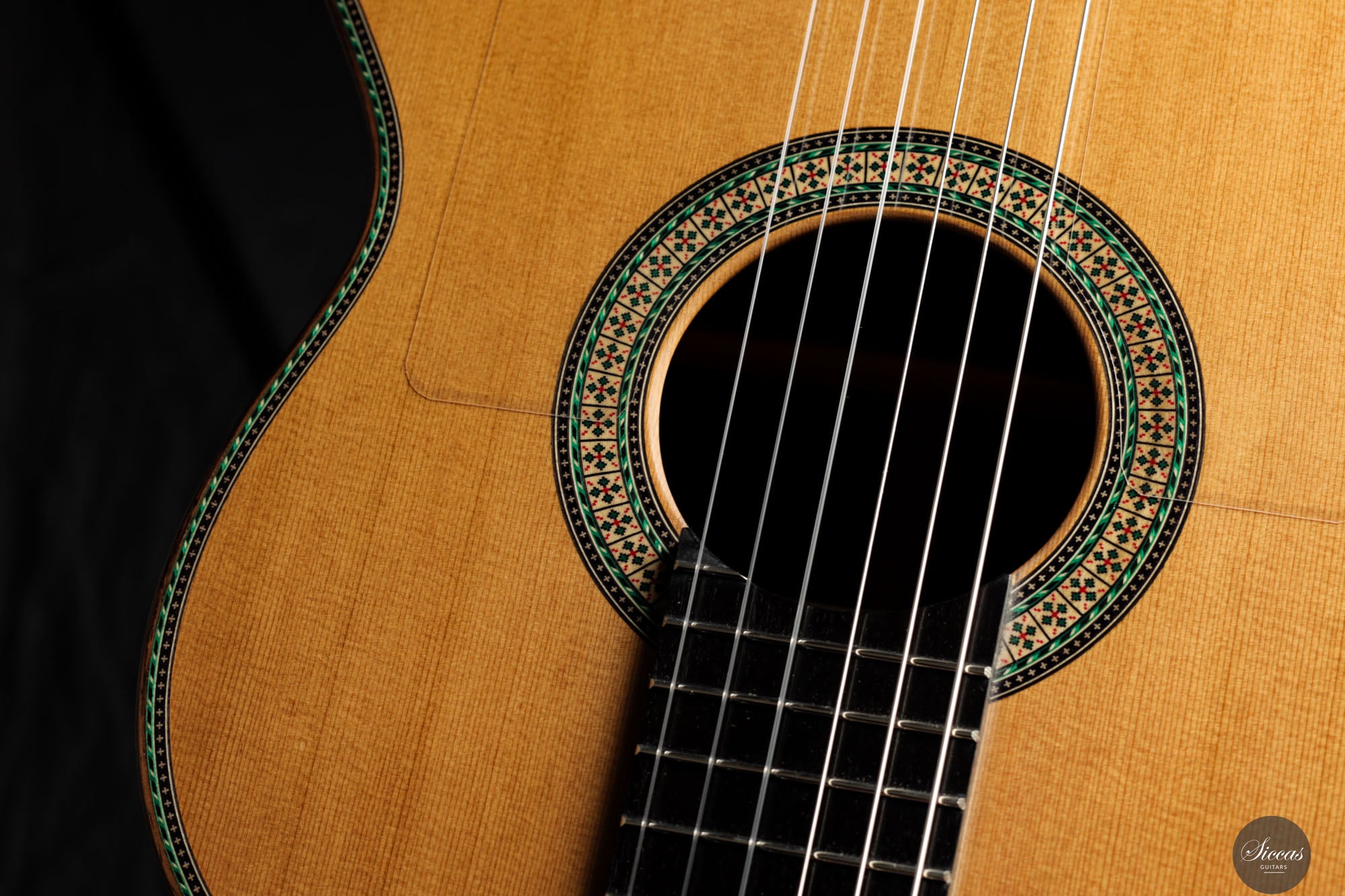 Das Modell Maestro NX entstand in Zusammenarbeit mit Gernot Wagner, einem der bedeutendsten Pioniere des Doppeldeckenkonzepts. Diese 2025 gebaute Gitarre verfügt über eine doppelte Zederndecke mit Nomexkern sowie Zargen und Boden aus indischem Palisander. Verstärkte Zargen tragen zur strukturellen Stabilität und klanglichen Projektion bei. Das Ergebnis ist ein Instrument mit außergewöhnlicher Lautstärke, das zugleich die klangliche Balance und Raffinesse wahrt, die für Carrillo typisch sind. Der Ton ist rund und warm, mit langem Sustain und klarer Stimmtrennung über den gesamten Dynamikbereich. Die Ansprache ist unmittelbar – feine Phrasierungen im Leisen gelingen ebenso wie kraftvolle Passagen unter voller Ausnutzung des dynamischen Potenzials. Die farbliche Bandbreite entwickelt sich mühelos und unterstützt eine hohe Ausdrucksvielfalt. Trotz moderner Bauweise bewahrt das Modell Maestro NX einen klar spanischen Charakter – geprägt von Carrillos musikalischer Handschrift und handwerklicher Tiefe.