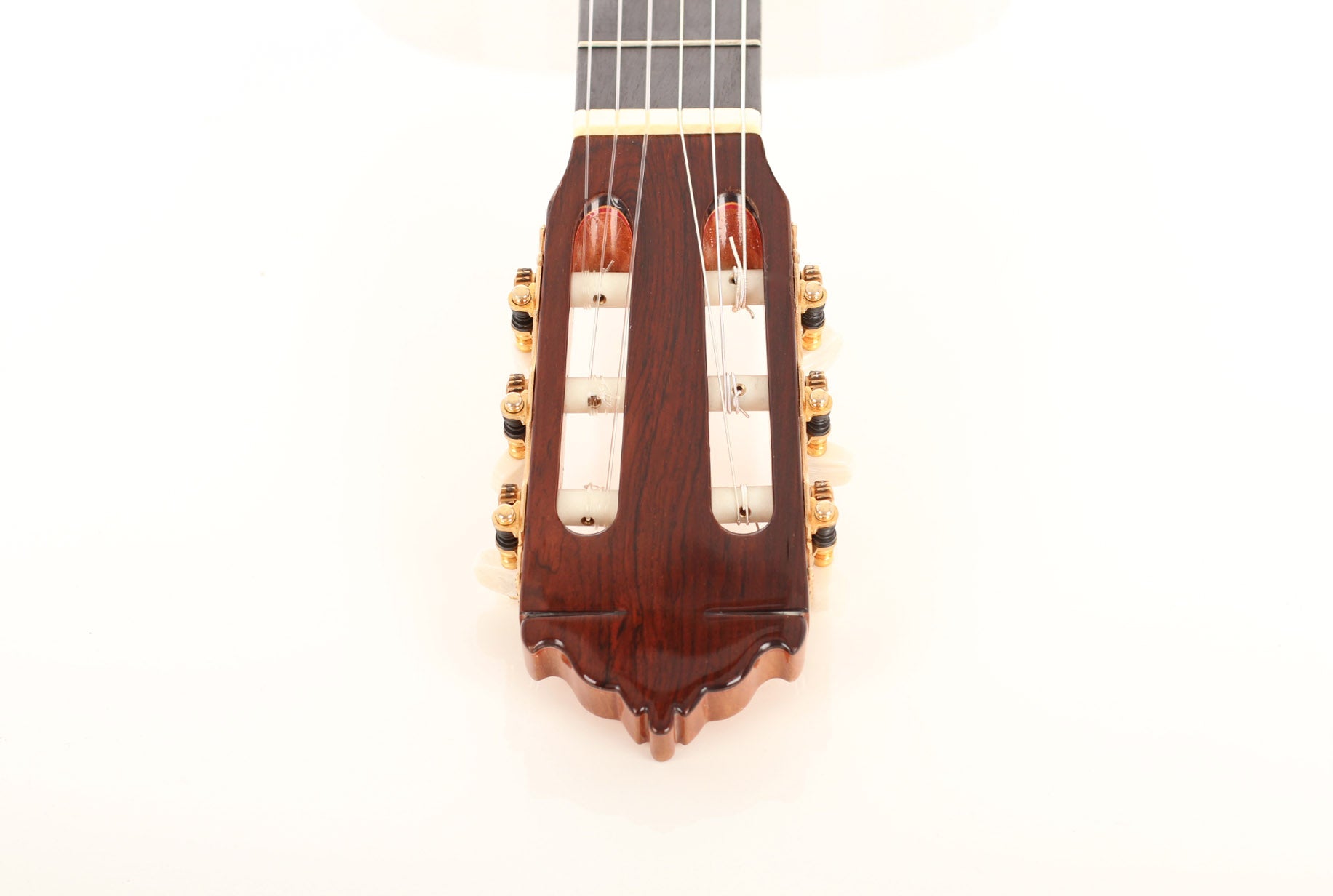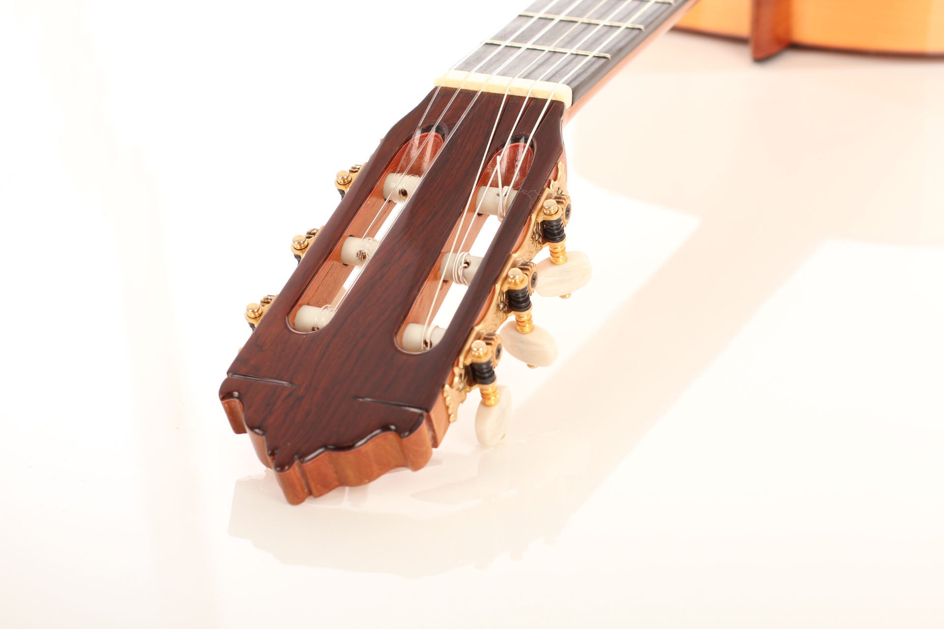 Die klassische Gitarre mit ihren weichen Nylonsaiten und ihrem charakteristischen Timbre ist zum Symbol der Kammermusik, der spanischen Tradition und des Konzertrepertoires geworden. Ihre moderne Form prägte Antonio de Torres im 19. Jahrhundert, indem er den Standard für Korpus, Fächerbeleistung und die 65-Zentimeter-Mensur setzte, die bis heute verwendet werden. Instrumente dieser Kategorie eröffnen eine reiche Palette von den feinen romantischen Miniaturen Tárregas bis zu den majestätischen Konzerten Rodrigos. Hier finden Sie Gitarren, die historische Kontinuität bewahren und zugleich zu neuen Interpretationen anregen.Alle Produkte der Kollektion ansehen -