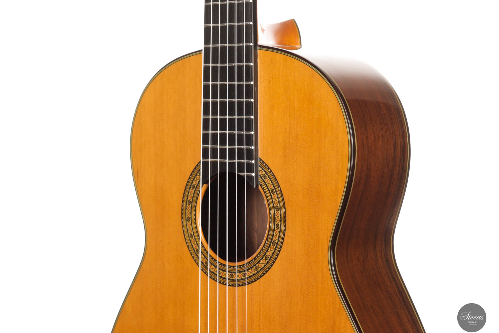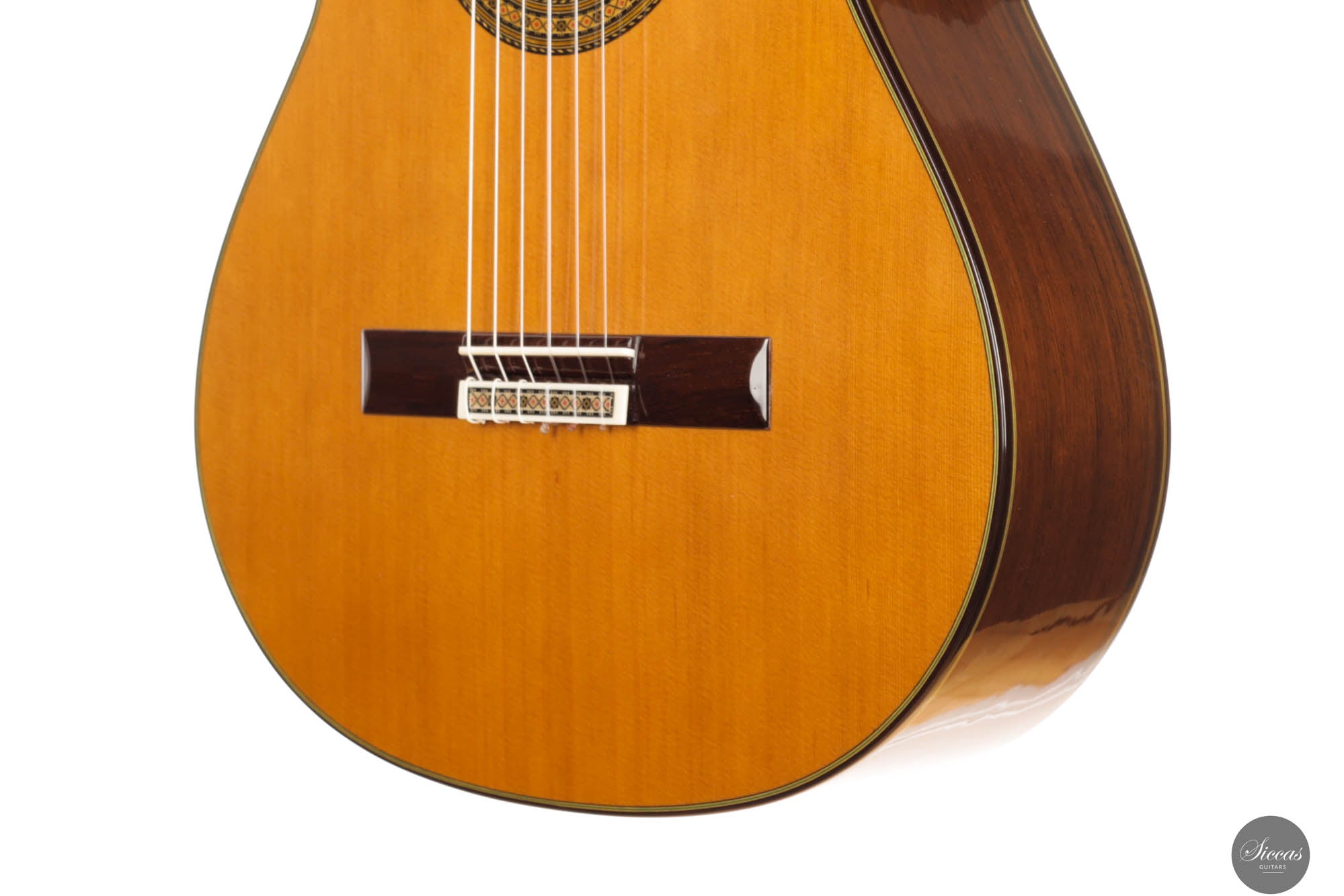 The Vicente Carrillo "Primera Especial" is an ode to the mastery of traditional guitar craftsmanship. Crafted in the picturesque town of Casasimarro in the province of Cuenca, it embodies the passionate artistry of Vicente Carrillo. With its exquisite cedar top and the premium Madagascar rosewood for the back and sides, it offers a sound experience reminiscent in depth and complexity to that of a Rio rosewood guitar. Each string vibrates with crystal-clear highs, while the basses sound deep, warm, and full, creating a balanced and harmonious sonic experience. The nitro finish not only gives the guitar a flawless appearance but also contributes to its excellent resonance and sound projection. The "Primera Especial" is more than just an instrument; it's a piece of art – a testament to Vicente Carrillo's dedication to perfection and his profound love for music.