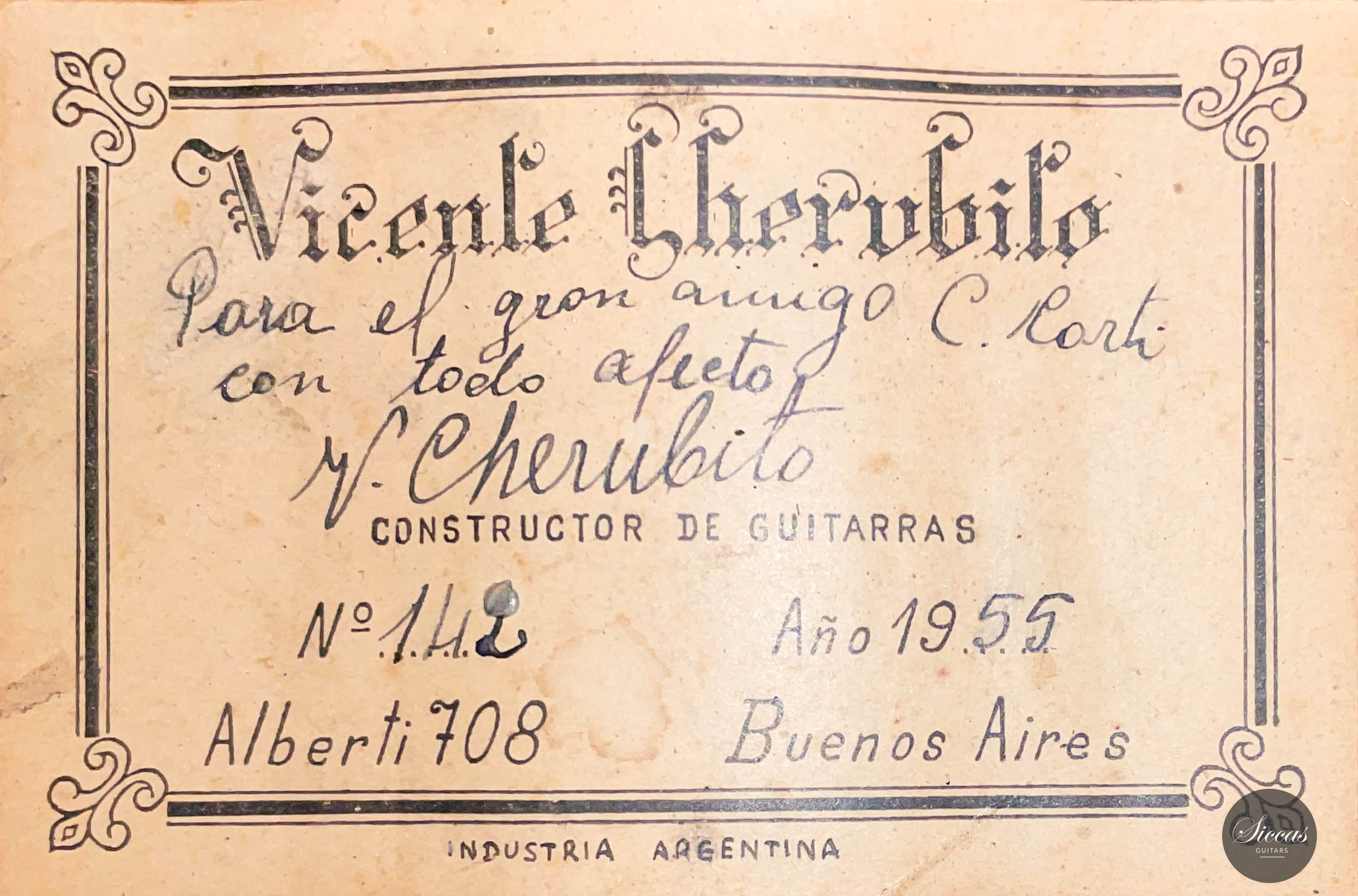 Vicente Cherubito was one of the most accomplished luthiers in Argentina, who built instruments of outstanding quality and whose work is well known in specialist communities but tends to move under the radar of contemporary attention. Like his colleague Antonio Manganaro, he originated from Italy, settled in Buenos Aires and began building bowed instruments and later classical guitars. His reputation grew quickly, first at a local level, and later, thanks to the support of the outstanding guitarist Narciso Yepes, who held his instruments in the highest esteem, he also gained international recognition.