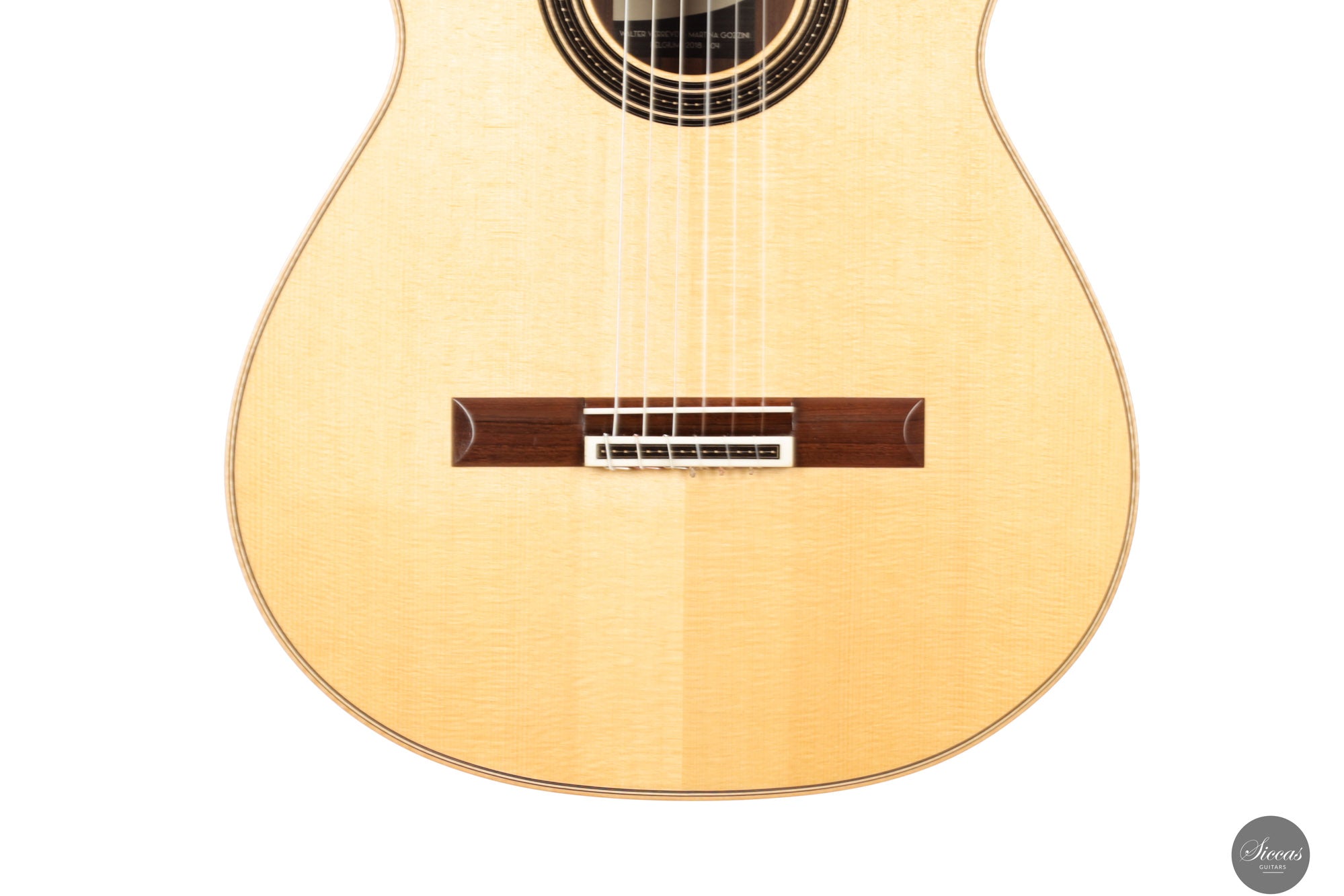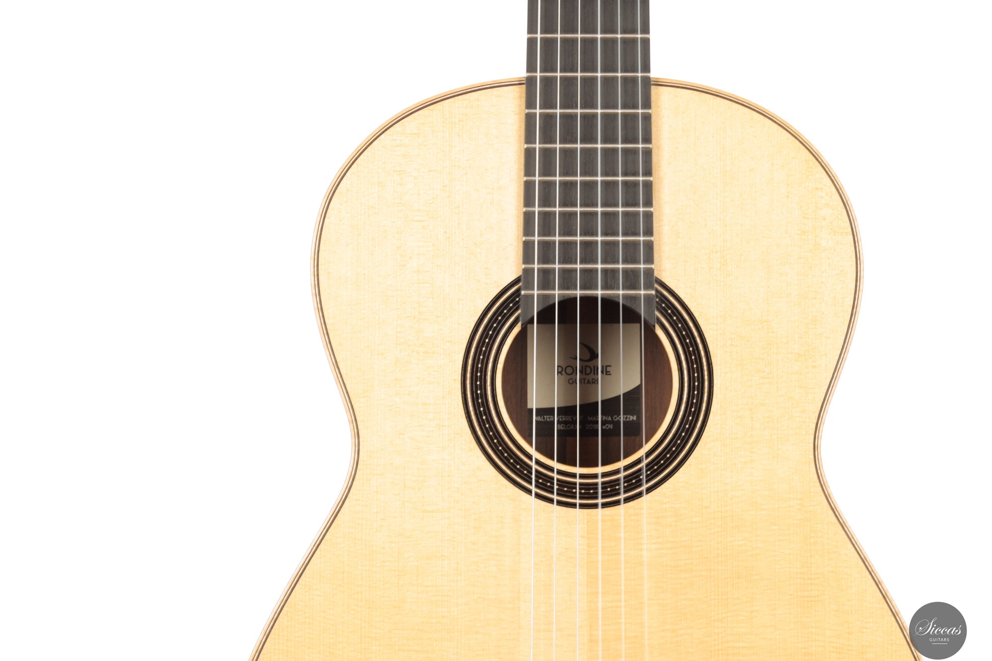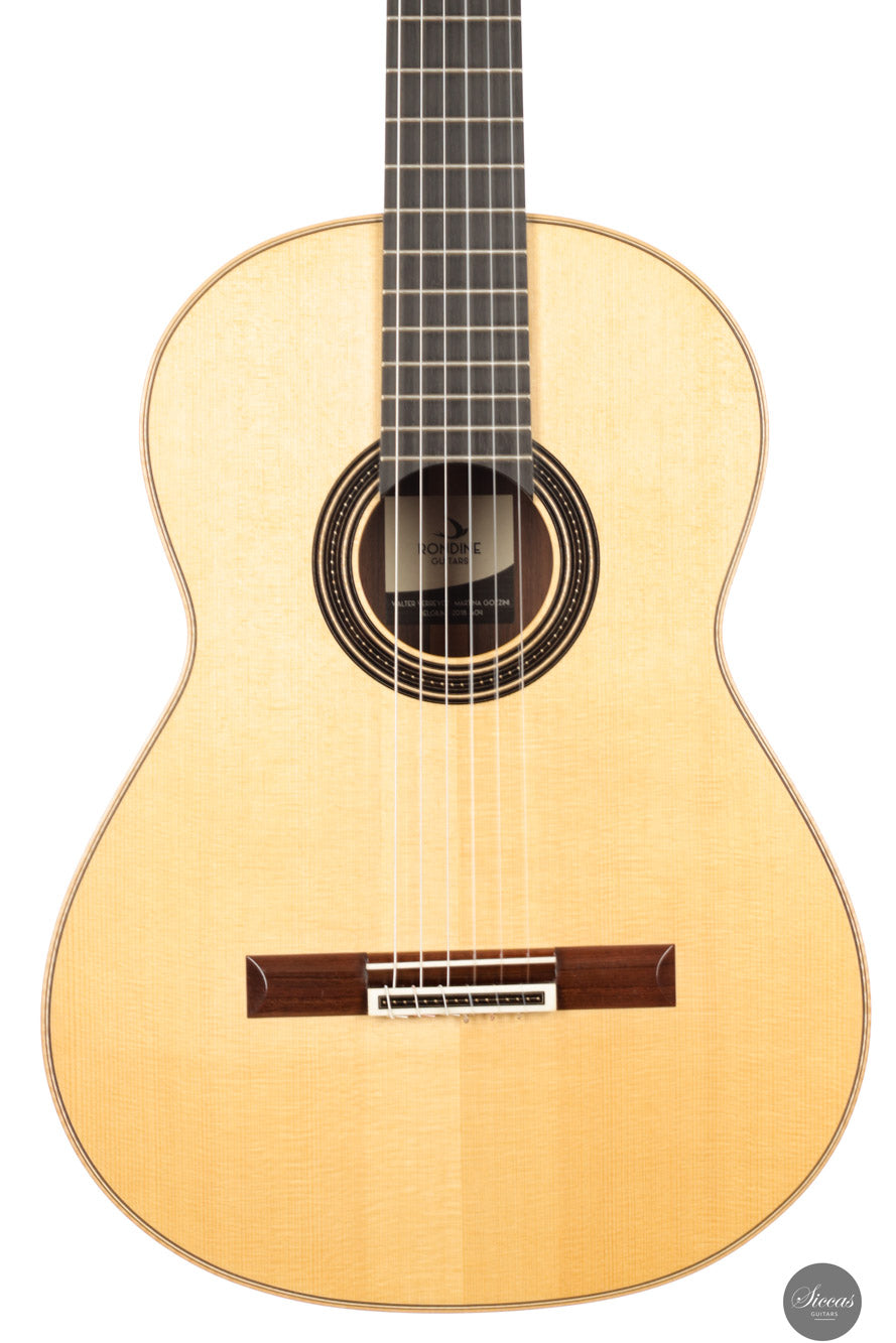 Walter Verreydt, einer der renommiertesten Gitarrenbauer Belgiens, fertigte seine erste Gitarre im Jahr 1985, nachdem er zuvor als Lehrer für Holzbearbeitung tätig war. Seit 1988 unterrichtet er klassischen Gitarrenbau am Centrum voor Muziekinstrumentenbouw in Puurs (Belgien). Verreydts Arbeit ist von historischen Meistern wie Ignacio Fleta, Robert Bouchet und Hernández y Aguado beeinflusst, wobei enge Verbindungen zu Daniel Friederich und José Romanillos seine Entwicklung zusätzlich prägten. Seine Gitarren werden in der spanischen Tradition gebaut und zeichnen sich durch ihren raffinierten Klang, ihre klare Ästhetik und ihre sorgfältige Ausführung aus. Diese Gitarre entstand in Zusammenarbeit mit Martina Gozzini im Rahmen des auf fünf Exemplare limitierten „Rondine“-Projekts. Ziel war es, ein originelles Instrument zu erschaffen, das traditionelle Handwerkskunst mit einem modernen Ansatz in Design und Klang vereint. Das Ergebnis ist eine Gitarre, die die Erfahrung des Meisters mit der frischen Perspektive einer aufstrebenden Gitarrenbauerin verbindet. Martina Gozzini wurde in Florenz geboren. Sie hat einen Abschluss in Musikwissenschaft von der Universität Bologna und ist Absolventin des Centrum voor Muziekinstrumentenbouw in Puurs (Belgien), wo sie sich auf den Bau von Steel-String-Instrumenten spezialisierte und später bis 2020 als Koordinatorin tätig war. In ihrer Werkstatt widmet sie sich traditionellen amerikanischen Akustikinstrumenten wie Mandolinen, Banjos und Steel-String-Gitarren sowie dem klassischen Gitarrenprojekt „Rondine“.Über die Gitarre