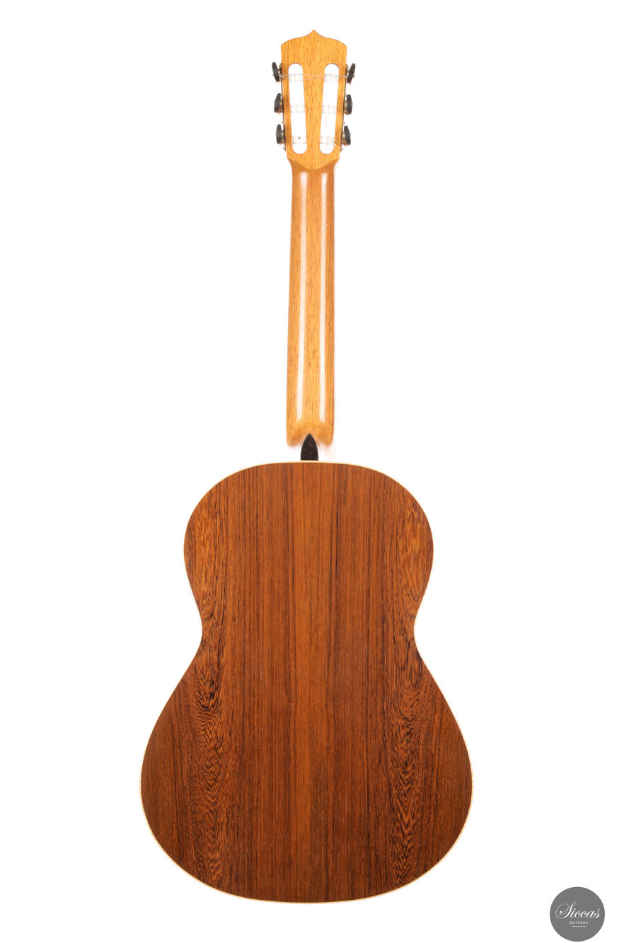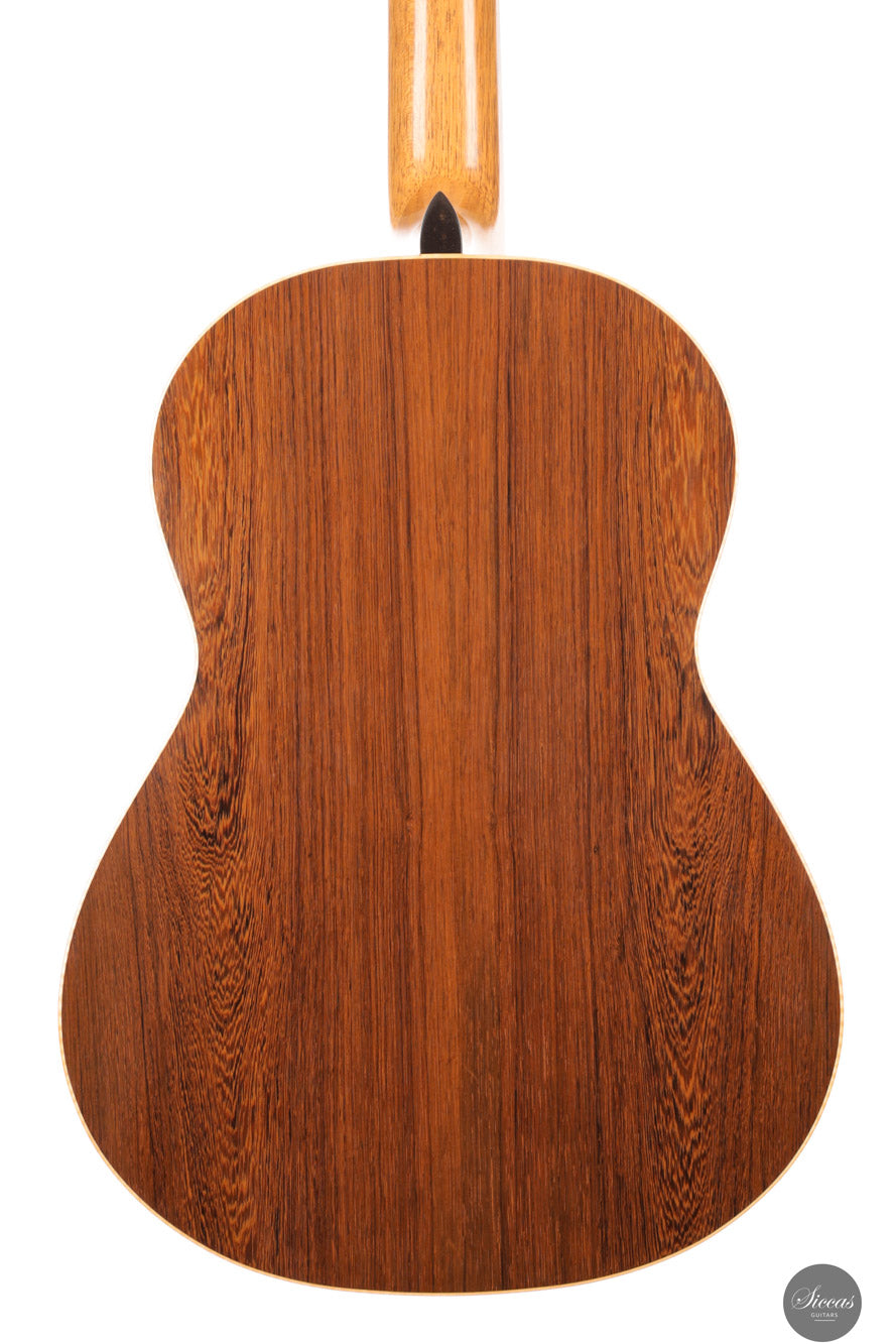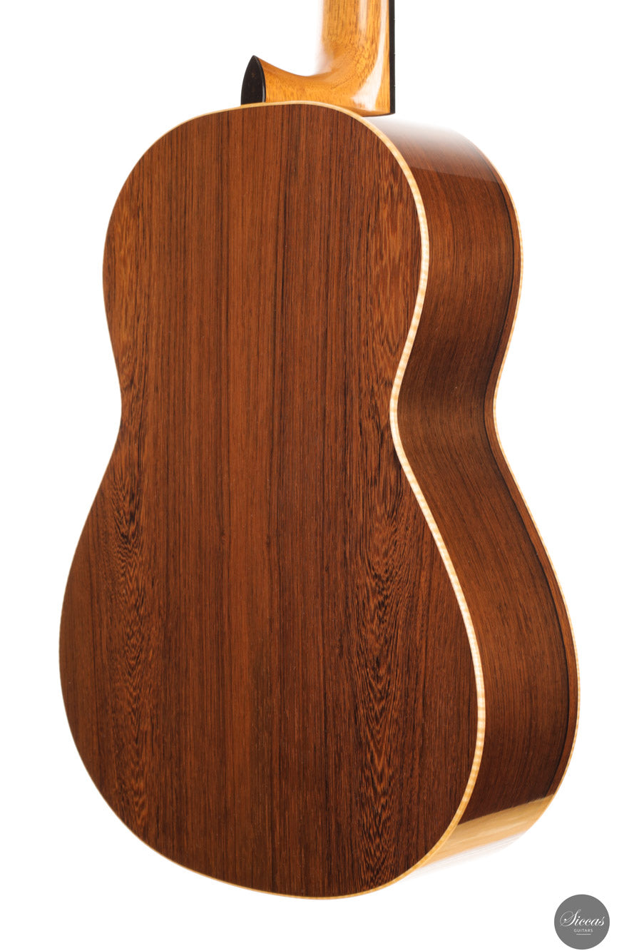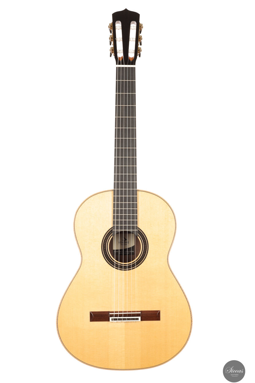 Walter Verreydt, einer der renommiertesten Gitarrenbauer Belgiens, fertigte seine erste Gitarre im Jahr 1985, nachdem er zuvor als Lehrer für Holzbearbeitung tätig war. Seit 1988 unterrichtet er klassischen Gitarrenbau am Centrum voor Muziekinstrumentenbouw in Puurs (Belgien). Verreydts Arbeit ist von historischen Meistern wie Ignacio Fleta, Robert Bouchet und Hernández y Aguado beeinflusst, wobei enge Verbindungen zu Daniel Friederich und José Romanillos seine Entwicklung zusätzlich prägten. Seine Gitarren werden in der spanischen Tradition gebaut und zeichnen sich durch ihren raffinierten Klang, ihre klare Ästhetik und ihre sorgfältige Ausführung aus. Diese Gitarre entstand in Zusammenarbeit mit Martina Gozzini im Rahmen des auf fünf Exemplare limitierten „Rondine“-Projekts. Ziel war es, ein originelles Instrument zu erschaffen, das traditionelle Handwerkskunst mit einem modernen Ansatz in Design und Klang vereint. Das Ergebnis ist eine Gitarre, die die Erfahrung des Meisters mit der frischen Perspektive einer aufstrebenden Gitarrenbauerin verbindet. Martina Gozzini wurde in Florenz geboren. Sie hat einen Abschluss in Musikwissenschaft von der Universität Bologna und ist Absolventin des Centrum voor Muziekinstrumentenbouw in Puurs (Belgien), wo sie sich auf den Bau von Steel-String-Instrumenten spezialisierte und später bis 2020 als Koordinatorin tätig war. In ihrer Werkstatt widmet sie sich traditionellen amerikanischen Akustikinstrumenten wie Mandolinen, Banjos und Steel-String-Gitarren sowie dem klassischen Gitarrenprojekt „Rondine“.Über die Gitarre