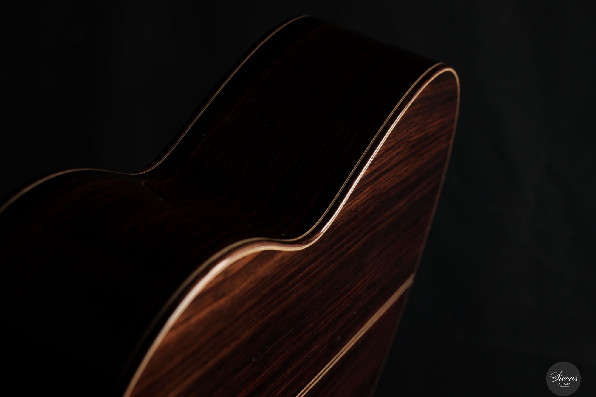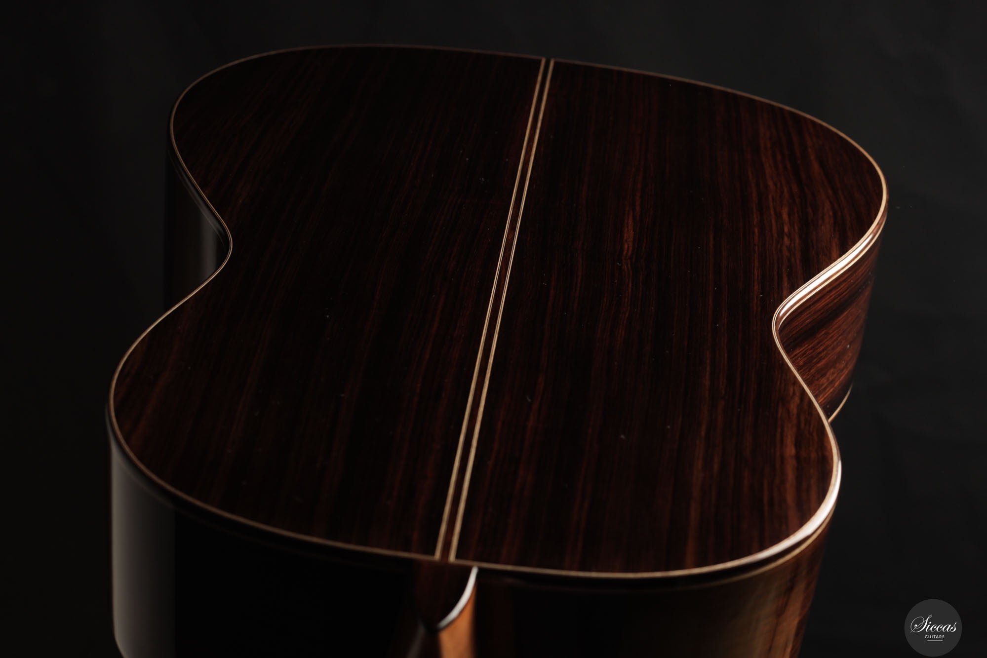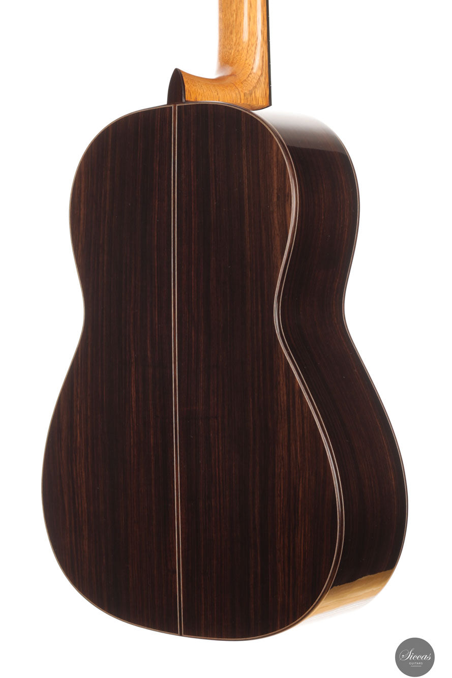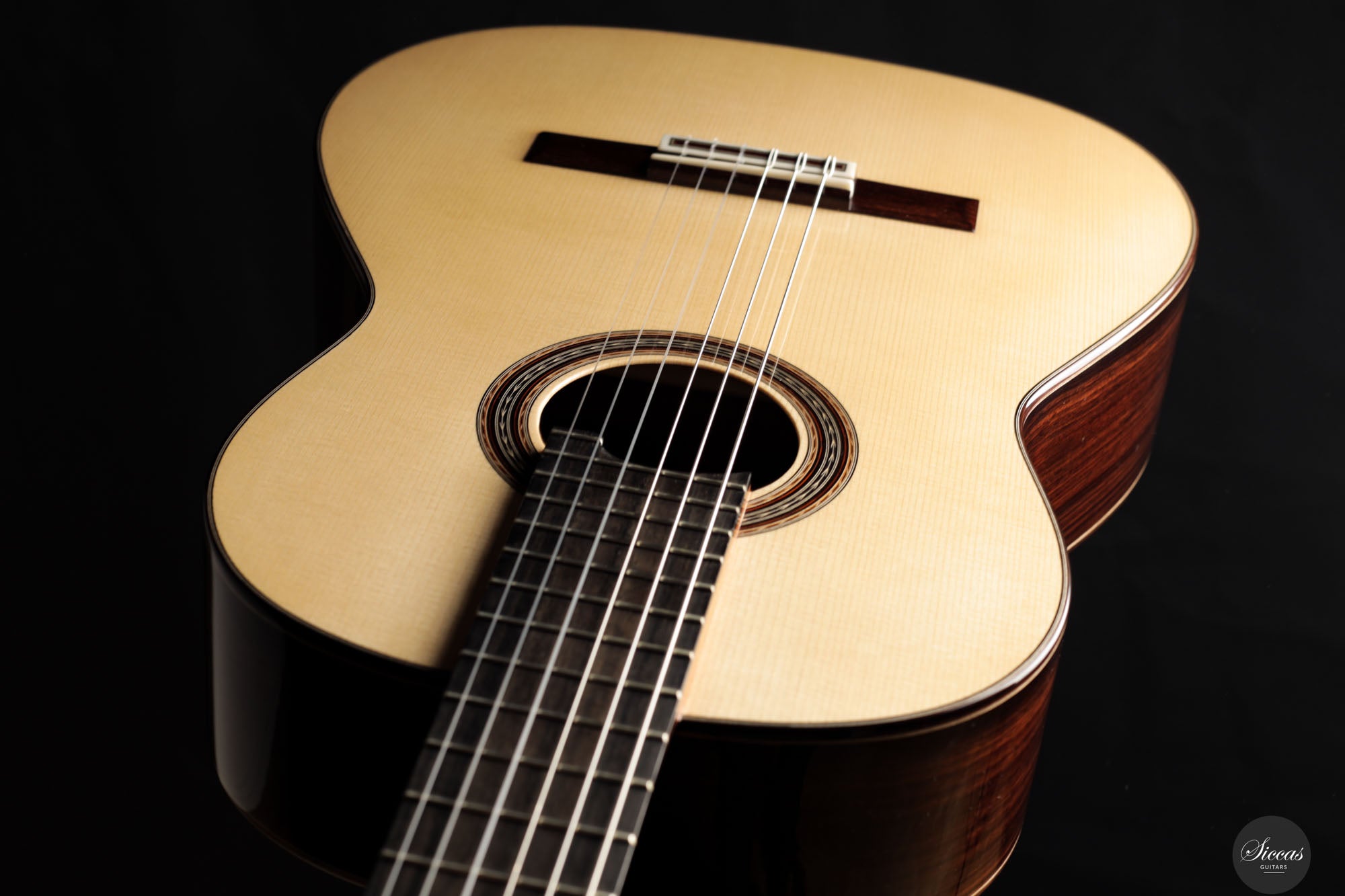Dies ist Youris Double-Top-Modell, das ein innovatives Design bietet, bei dem italienische Fichte als Grundlage der Verbunddecke mit Western Red Cedar als unterer Schicht kombiniert wird. Diese anspruchsvolle Double-Top-Konstruktion erhöht die Stabilität und Reaktionsfähigkeit der Decke, was zu einem stärkeren Klangvolumen führt, während der traditionelle Klangcharakter durch eine traditionelle 7-Fächer-Beleistung erhalten bleibt. Boden und Zargen sind aus dunkel gemasertem, gerade gewachsenem indischem Palisander gefertigt, der der Gitarre Tiefe und Wärme verleiht. Zusätzlich verbessert das leicht erhöhte Griffbrett die Bespielbarkeit, erhöht die Stabilität des Halses und verringert das Risiko unbeabsichtigter Nagelspuren auf der Decke, wodurch diese wunderschön gefertigte Gitarre sowohl praktisch als auch eine Freude beim Spielen ist.