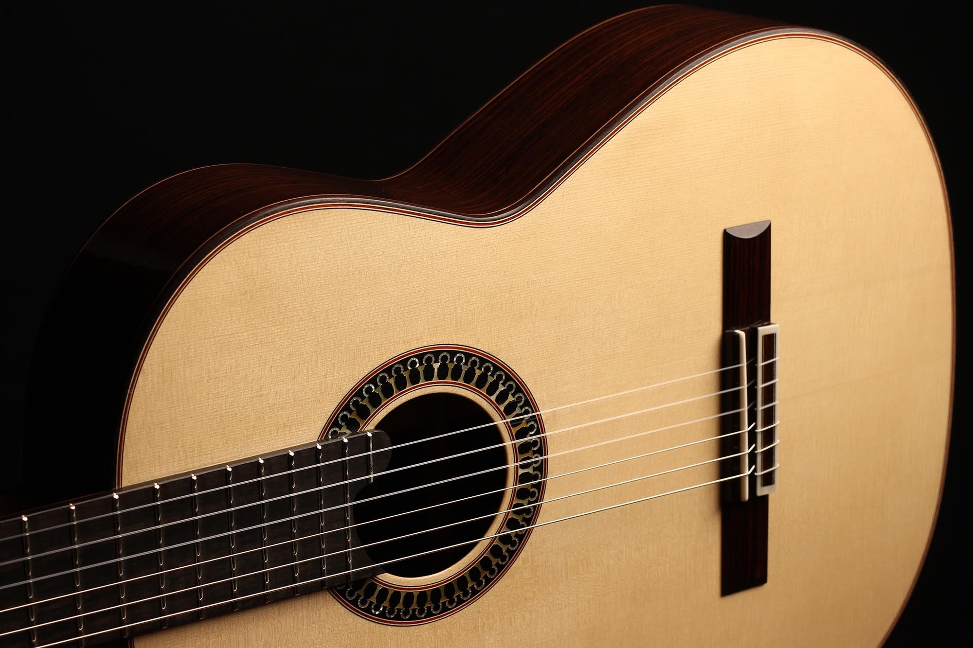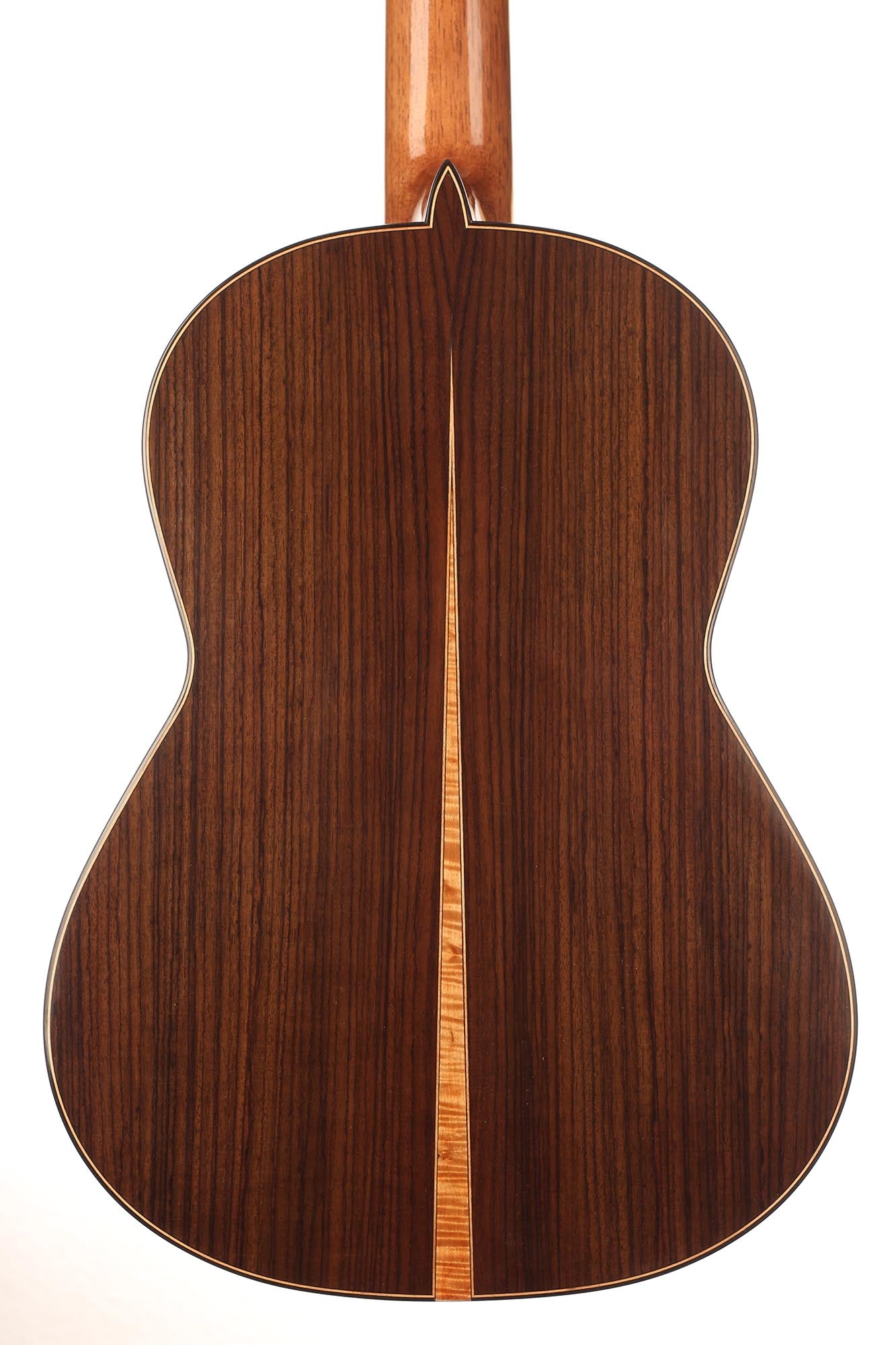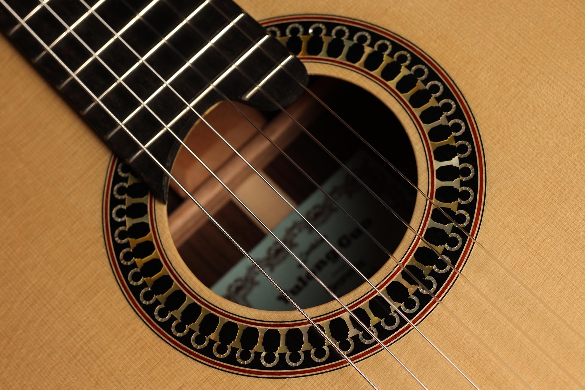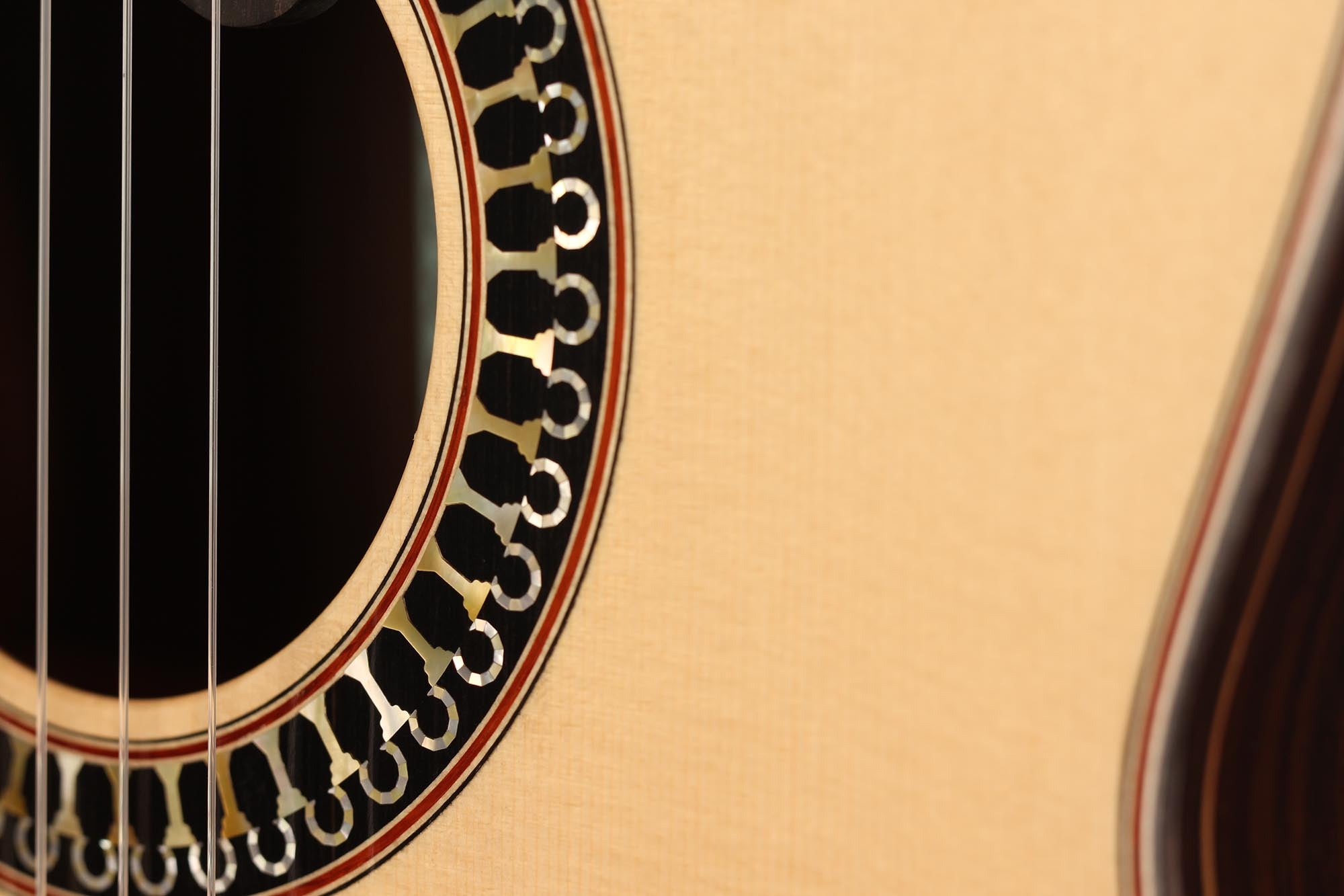 We were also very pleased with this beautiful, traditionally built instrument. It is a very light and reactive concert guitar with Spanish influence, which is reflected in the traditional bracing as well as in the aesthetics of the rosette, whose appearance reminds of guitars made by José Luis Romanillos.