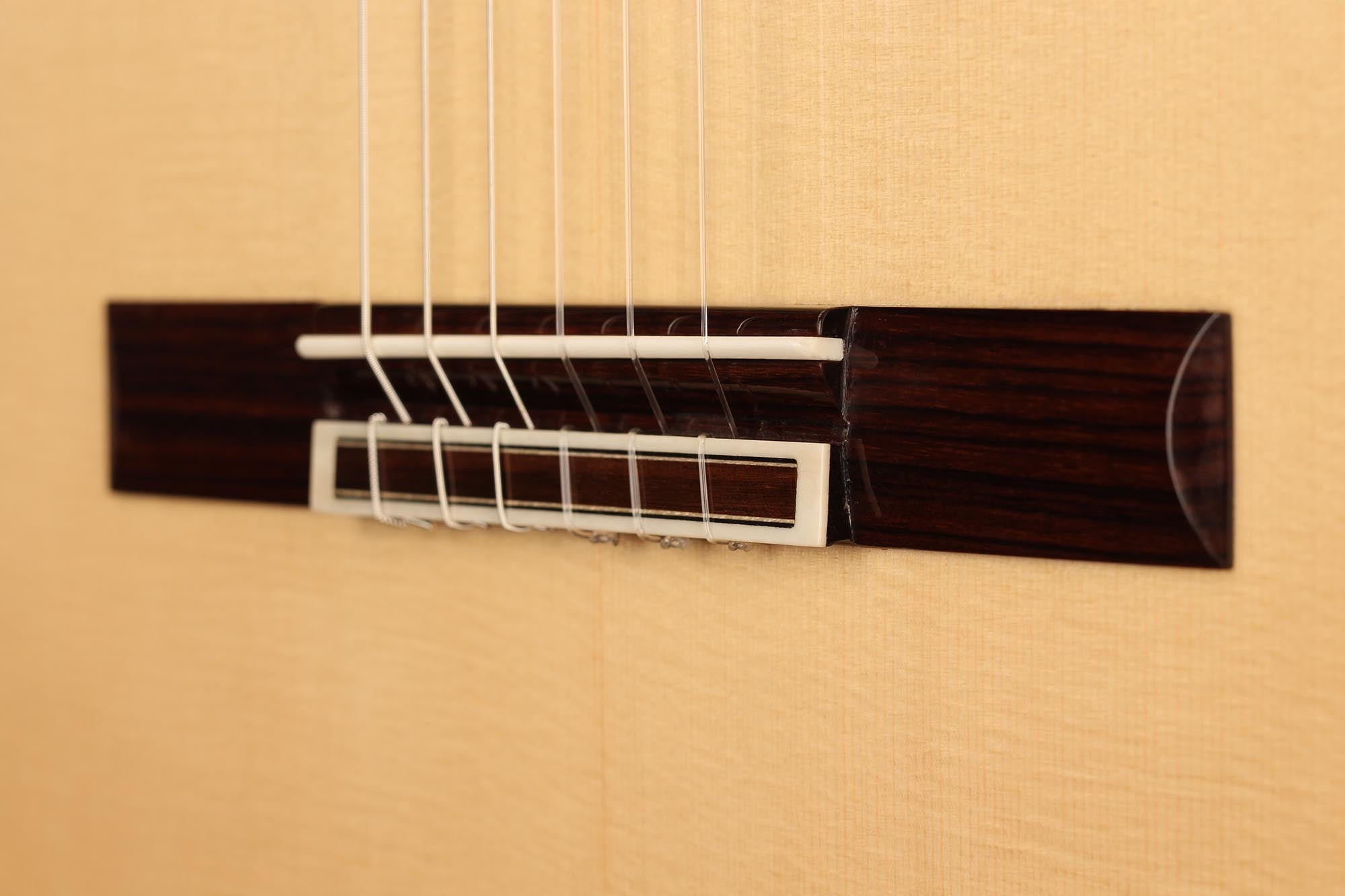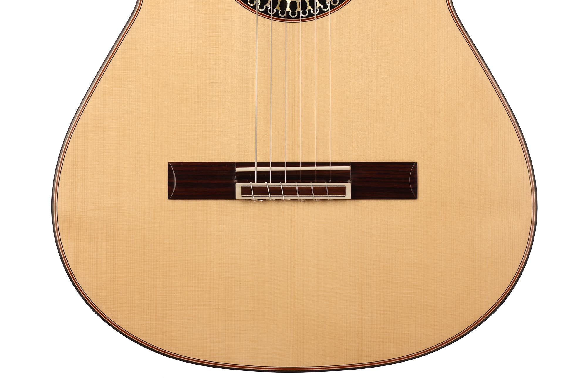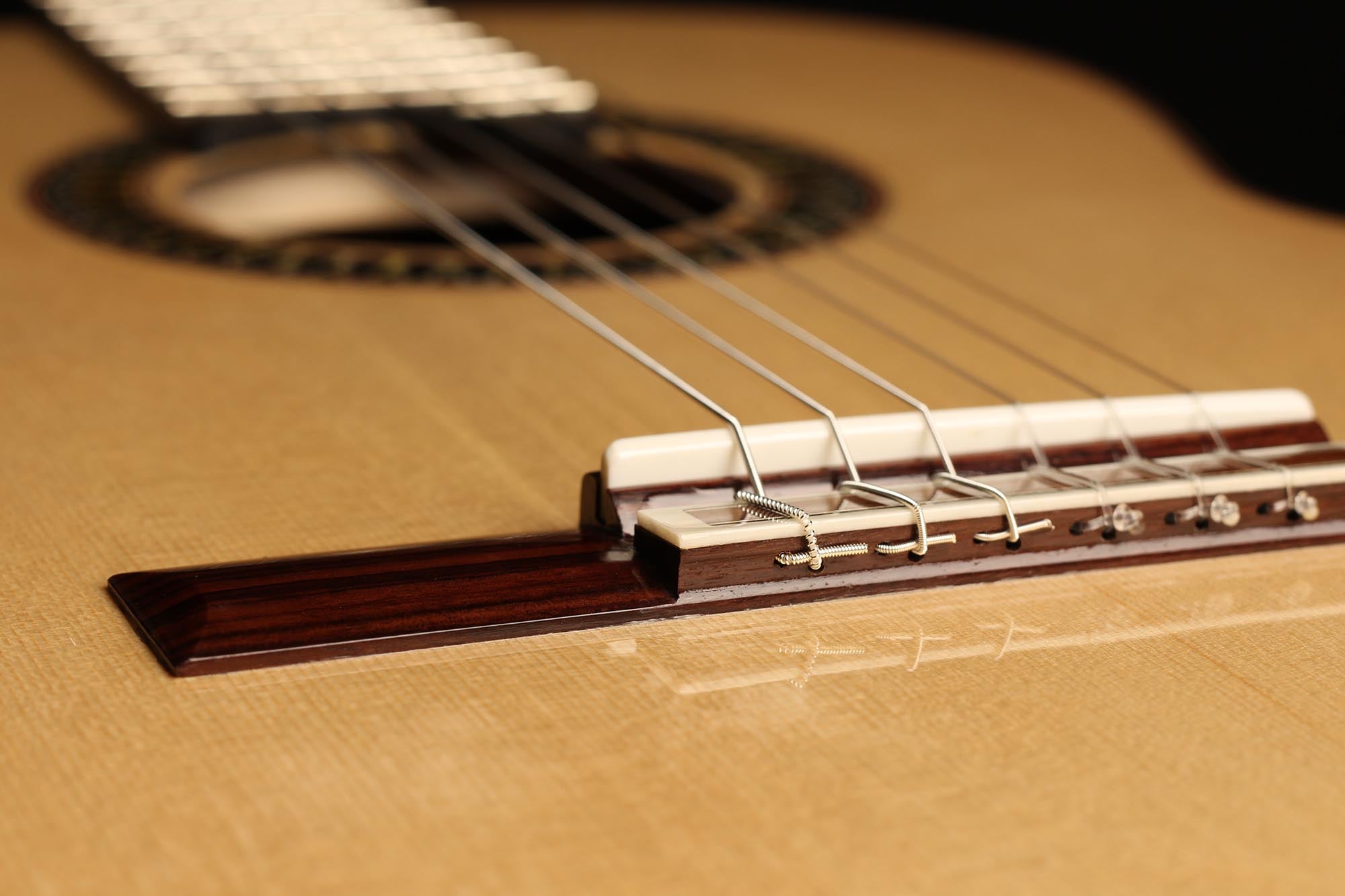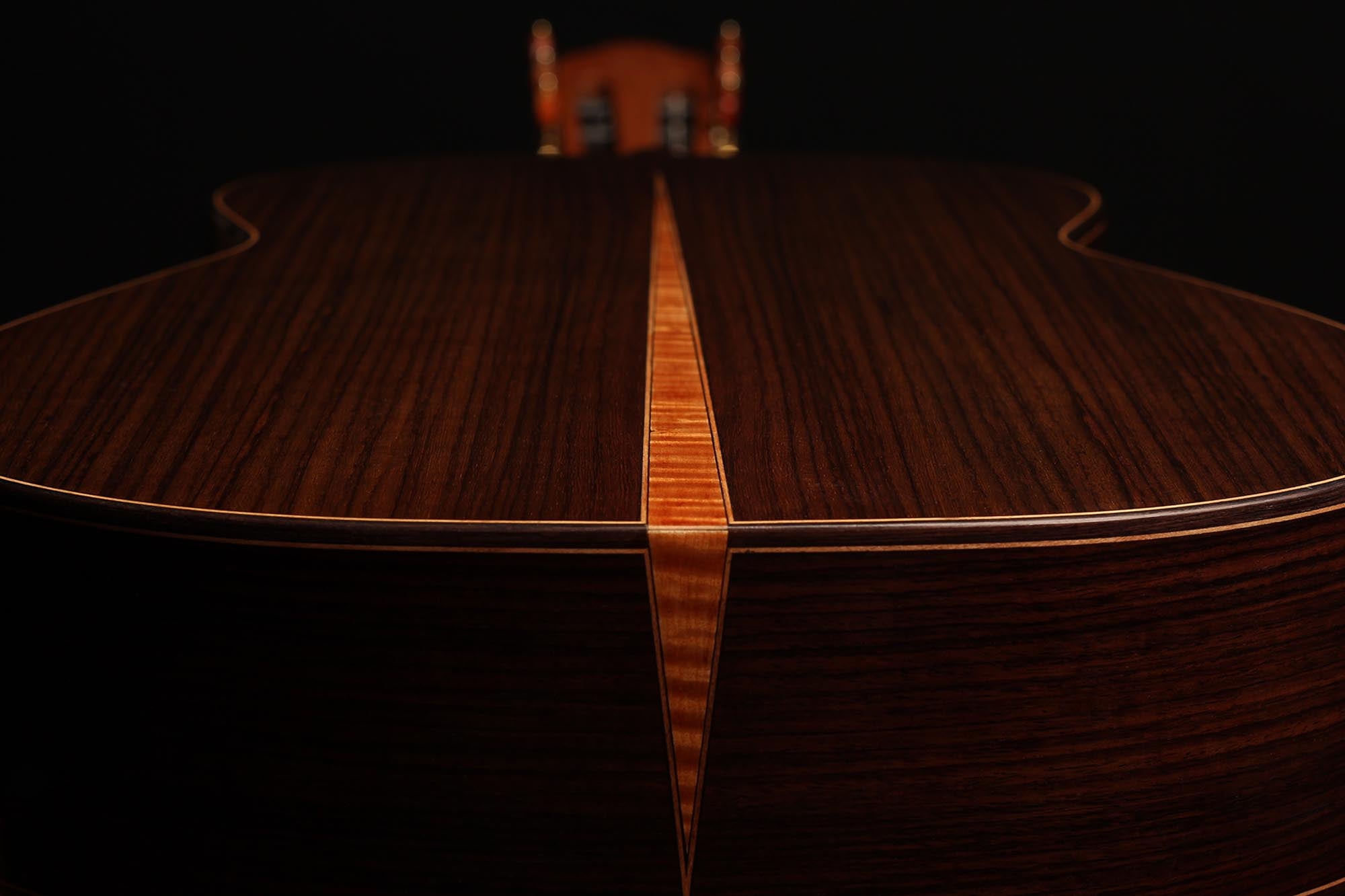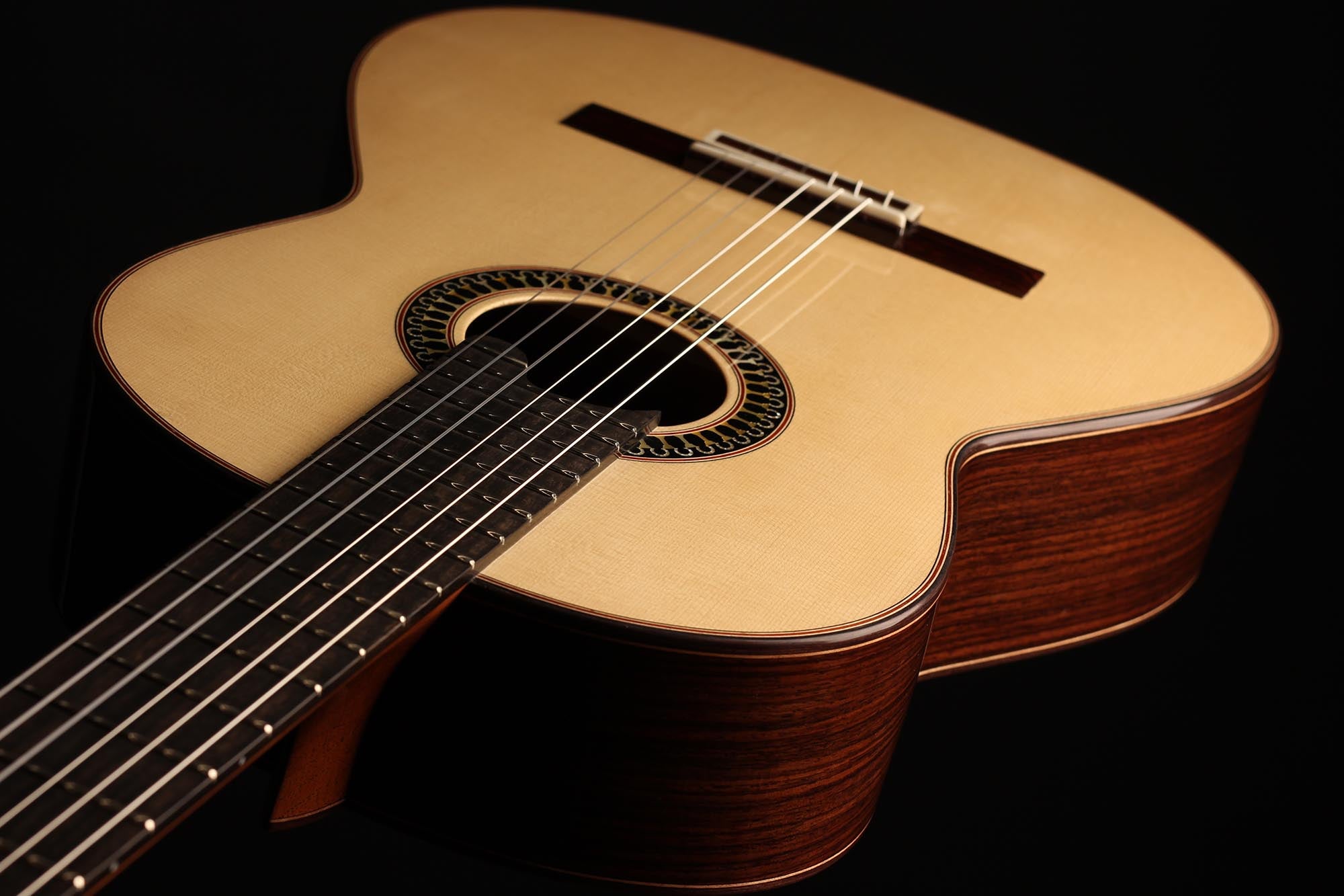 We were also very pleased with this beautiful, traditionally built instrument. It is a very light and reactive concert guitar with Spanish influence, which is reflected in the traditional bracing as well as in the aesthetics of the rosette, whose appearance reminds of guitars made by José Luis Romanillos.