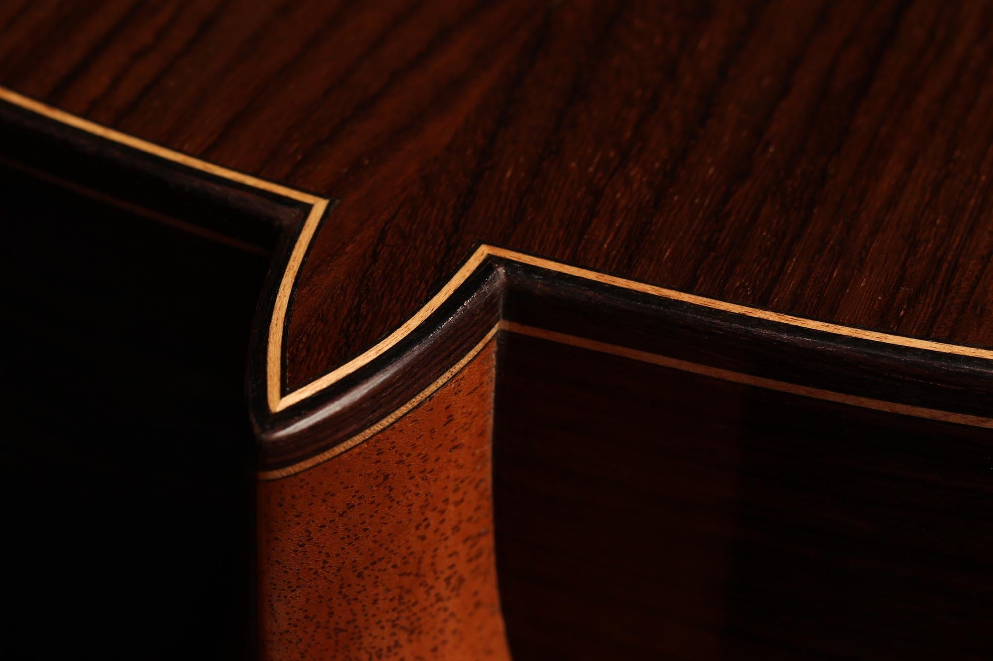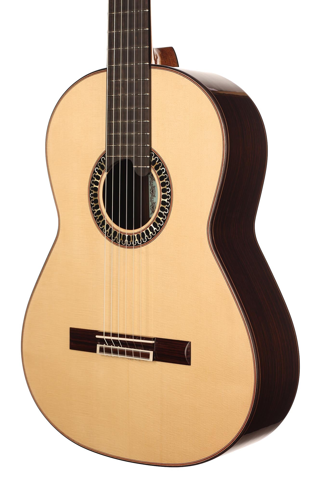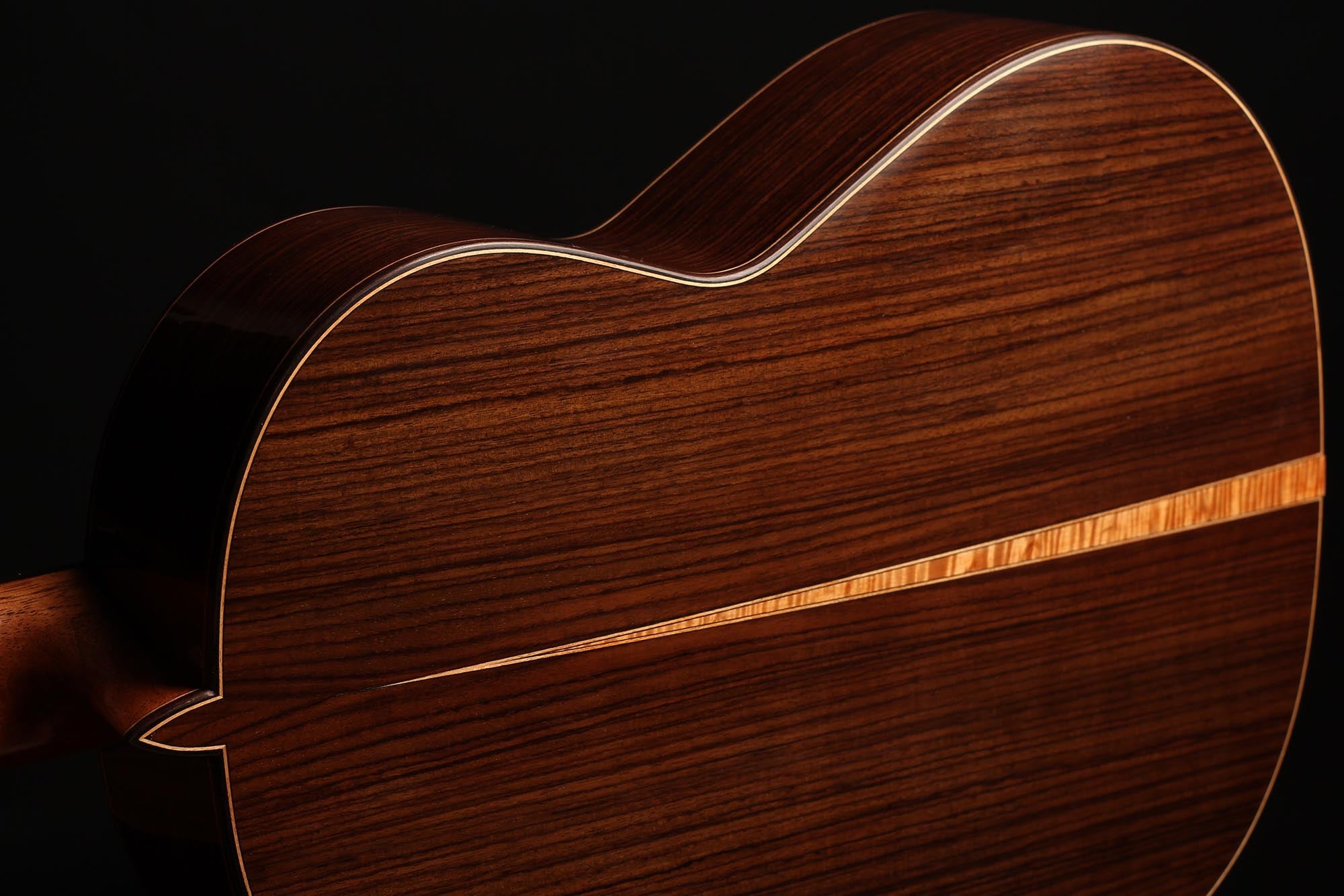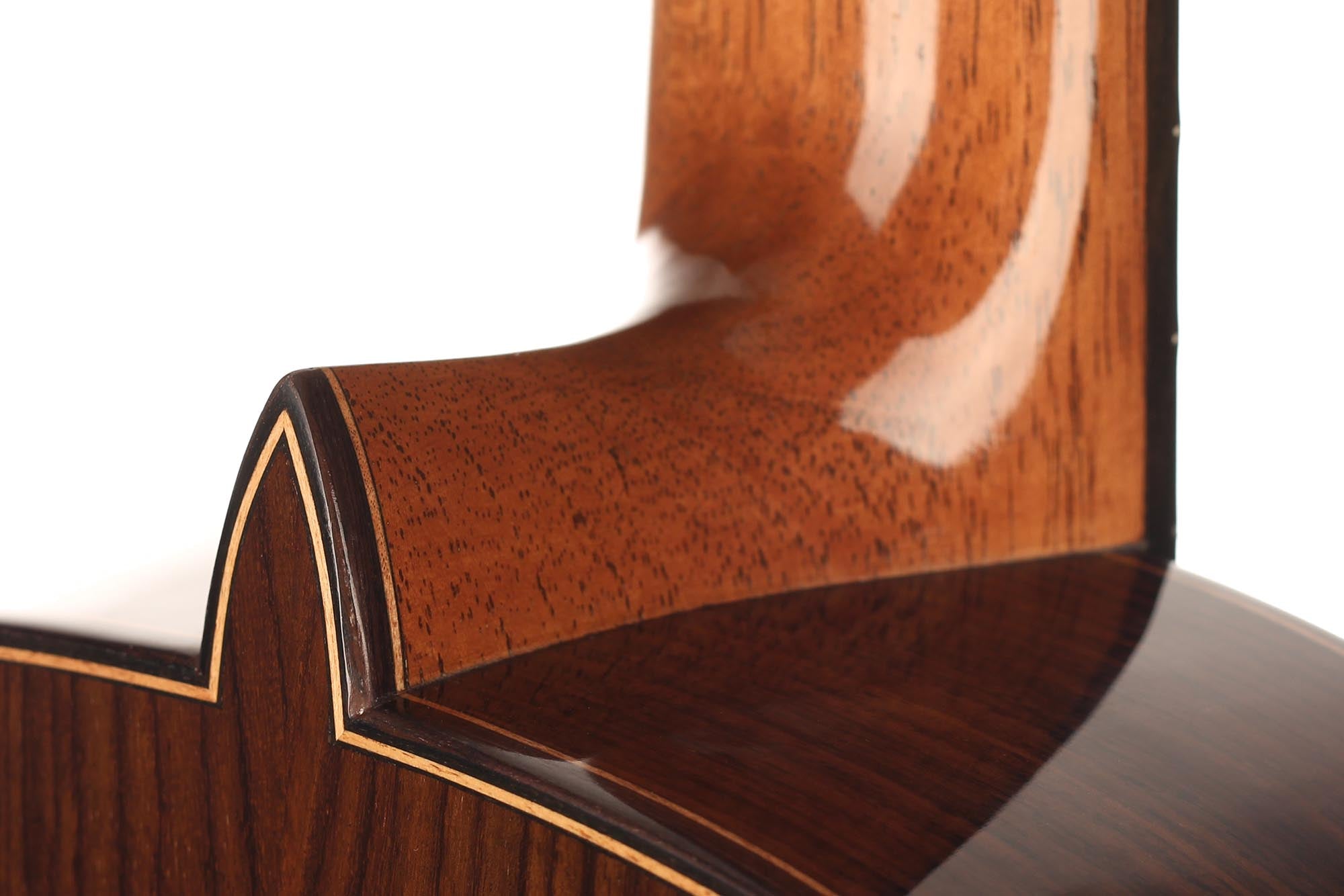 We were also very pleased with this beautiful, traditionally built instrument. It is a very light and reactive concert guitar with Spanish influence, which is reflected in the traditional bracing as well as in the aesthetics of the rosette, whose appearance reminds of guitars made by José Luis Romanillos.