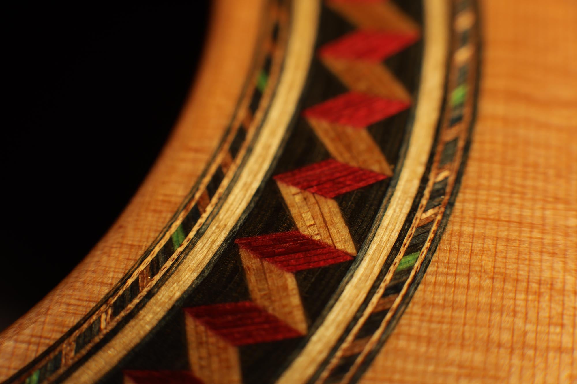 Eine Armauflage aus stabilisiertem Holz , besonders glatte Bünde zusammen mit einem zusätzlichen Zargen-Schallloch und einer tiefen Saitenlage machen das Chamber-Concert-Modell außergewöhnlich leicht und komfortabel spielbar.