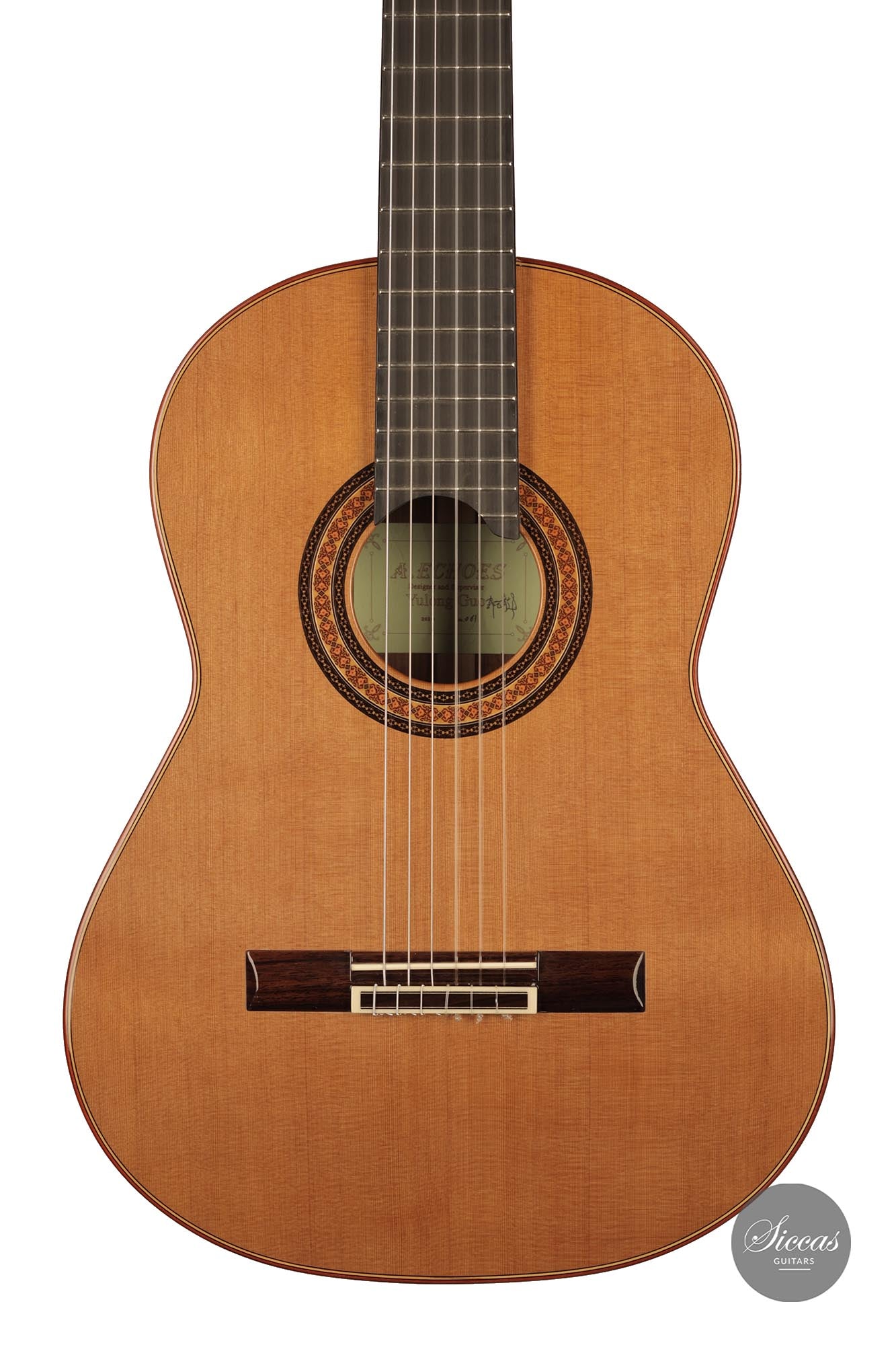 Dieses Instrument ist kraftvoll und warm klingend. Ein weicher und farbiger Ton wird sehr leicht und ohne Anstrengung erreicht. Dank des erhöhten Griffbretts hebt sich diese besondere Gitarre von den anderen A. Echoes-Modellen ab und bietet einen hohen Spielkomfort in den hohen Lagen ab dem 12. Bund Auffallend ist auch die Leichtigkeit des Spiels für die linke Hand, die es dem Gitarristen erlaubt, frei zu spielen und schnell Fortschritte zu machen. Das Ergebnis ist eine wunderschön gearbeitete Gitarre, die mit ihrem überzeugenden Klang und ihrer leichten Spielbarkeit zu den besten Gitarren in dieser Preisklasse gehört.