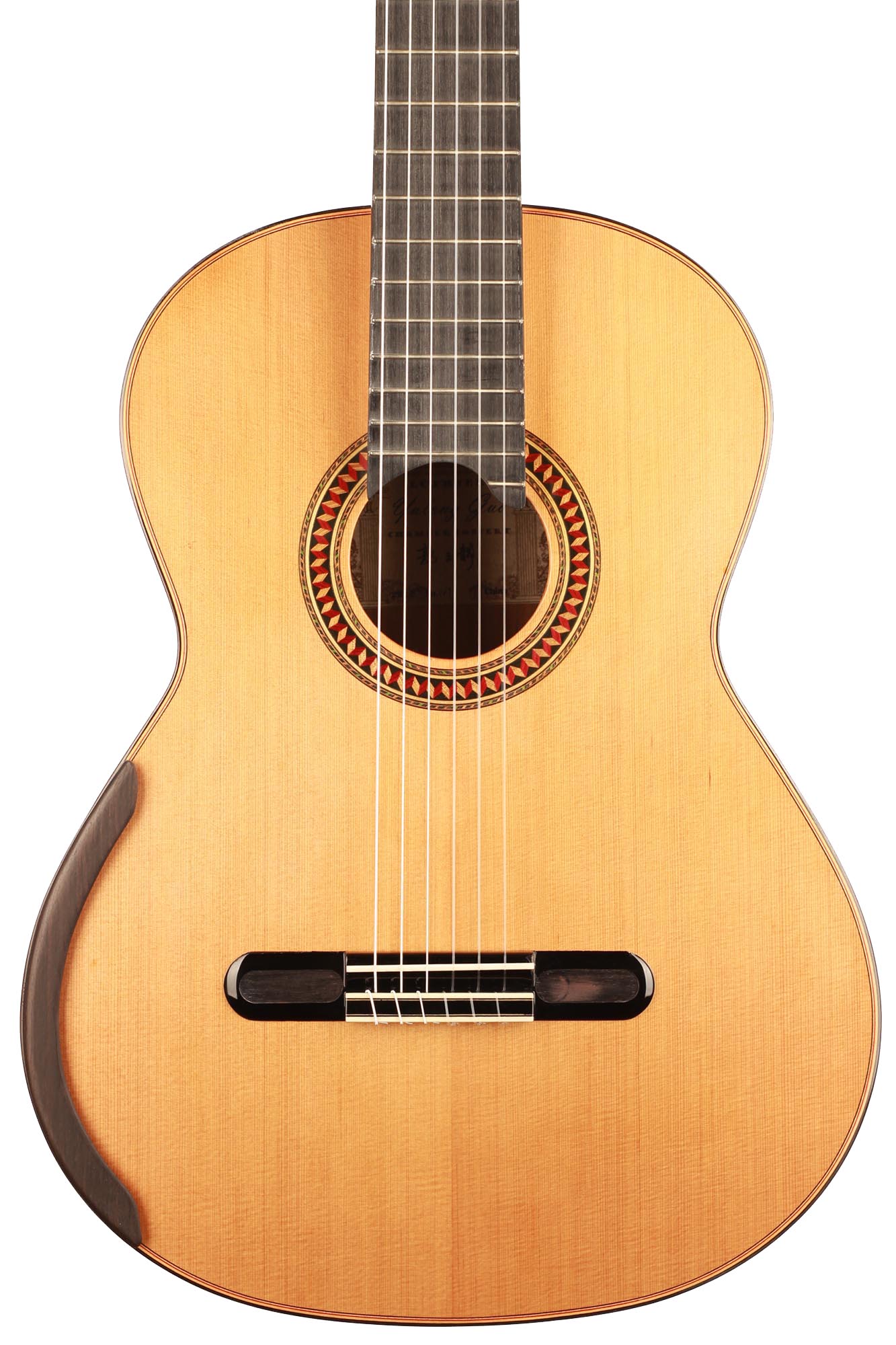 The Concert model by Master Luthier Yulong Guo is a world-class professional concert guitar. The craftsmanship in the woodworking and finish are evident and matched by the wonderful acoustic properties of this beautiful guitar.