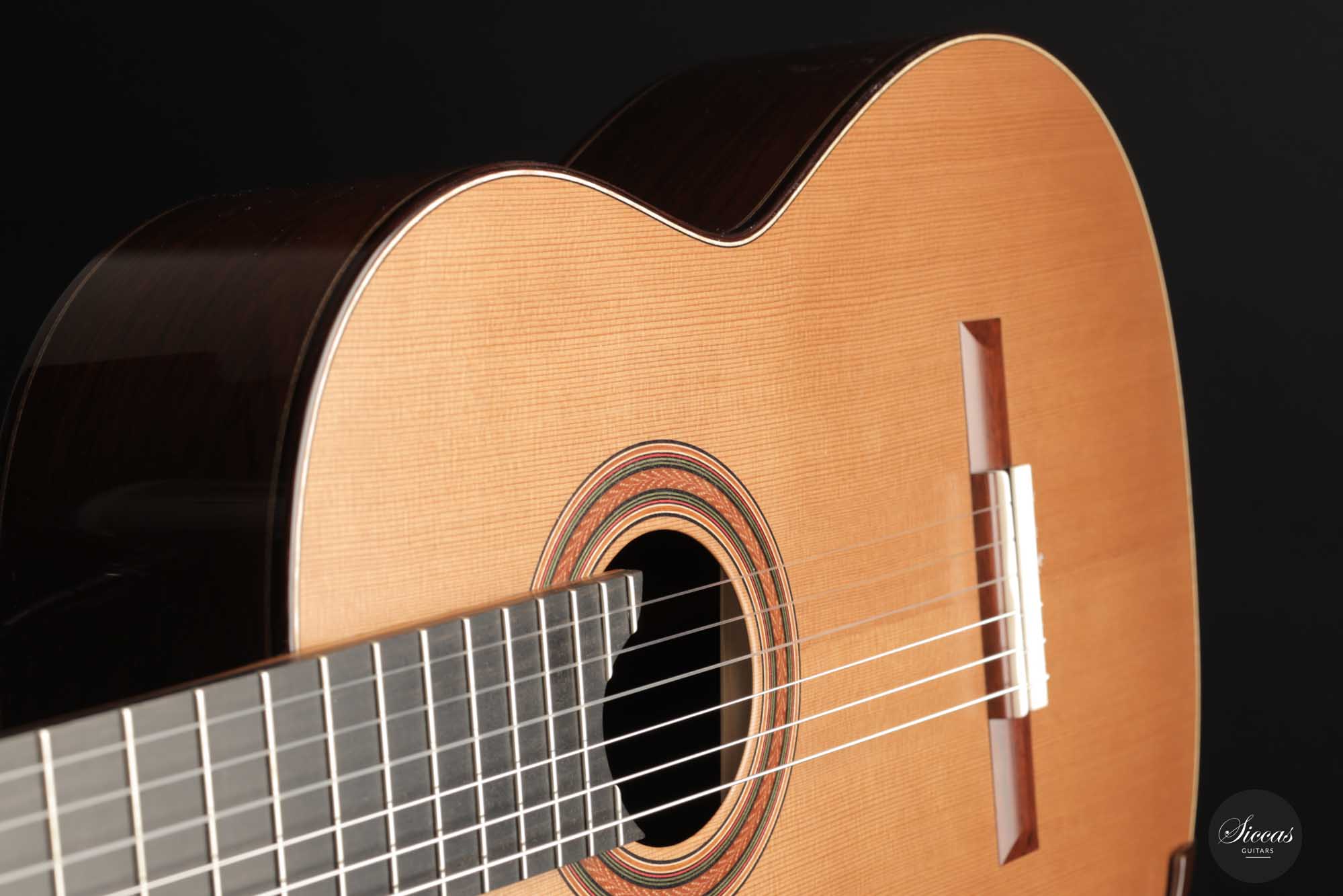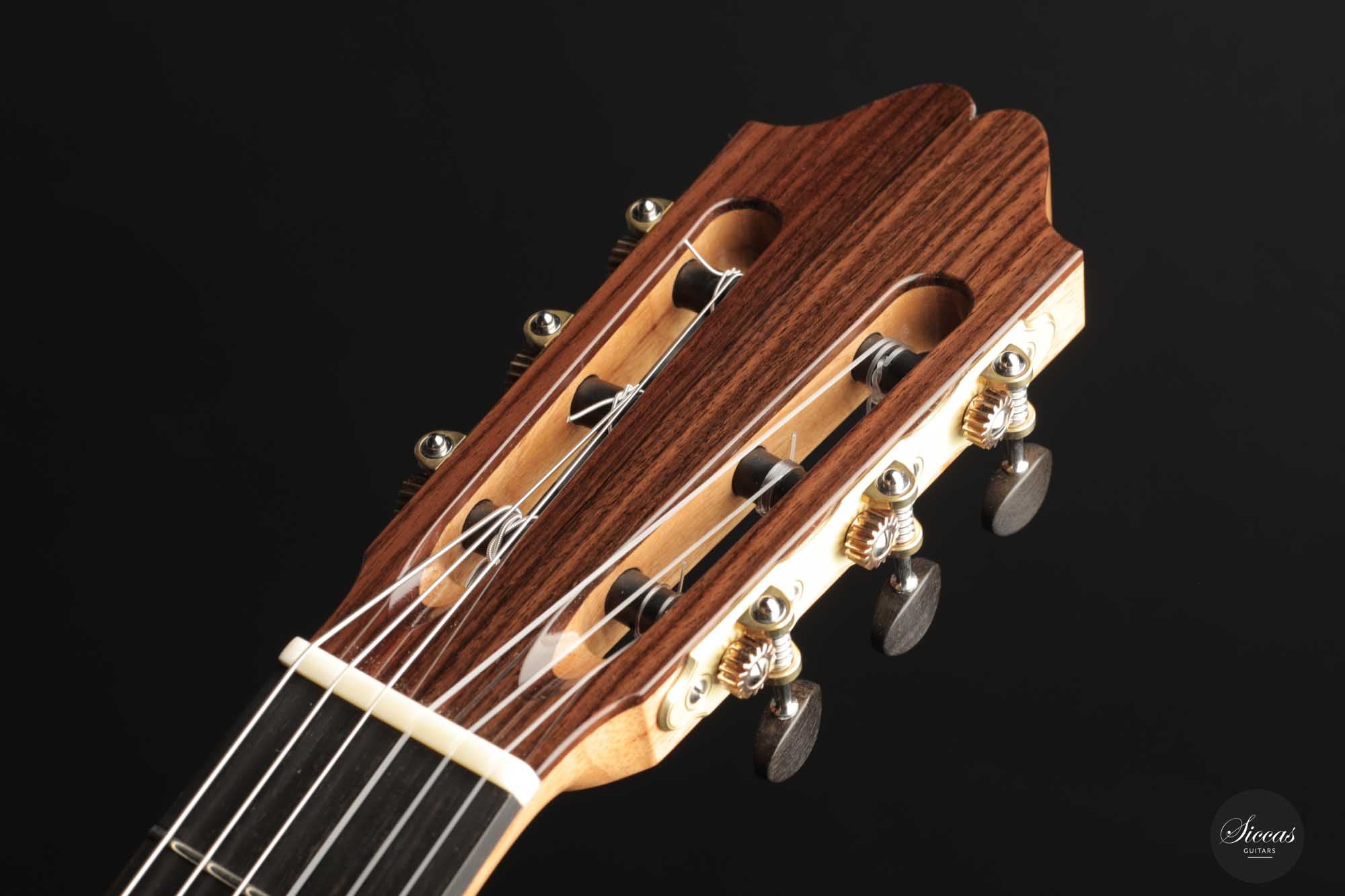 Die klassische Gitarre mit ihren weichen Nylonsaiten und ihrem charakteristischen Timbre ist zum Symbol der Kammermusik, der spanischen Tradition und des Konzertrepertoires geworden. Ihre moderne Form prägte Antonio de Torres im 19. Jahrhundert, indem er den Standard für Korpus, Fächerbeleistung und die 65-Zentimeter-Mensur setzte, die bis heute verwendet werden. Instrumente dieser Kategorie eröffnen eine reiche Palette von den feinen romantischen Miniaturen Tárregas bis zu den majestätischen Konzerten Rodrigos. Hier finden Sie Gitarren, die historische Kontinuität bewahren und zugleich zu neuen Interpretationen anregen.