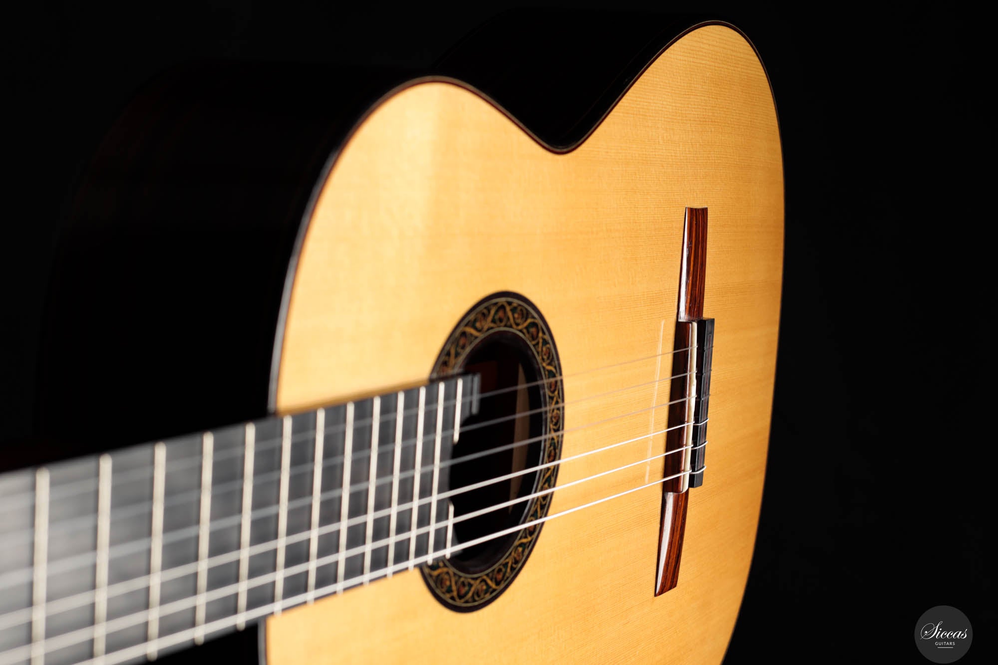 The classical guitar, with its soft nylon strings and characteristic timbre, has become a symbol of chamber music, Spanish tradition, and concert repertoire. Its modern form was shaped by Antonio de Torres in the 19th century, setting the standard for the body, fan bracing, and the 65-centimeter scale length that are still used today. Instruments in this category open up a rich palette from the refined Romantic miniatures of Tárrega to the majestic concertos of Rodrigo. Here you will find guitars that preserve historical continuity and at the same time inspire new interpretations.