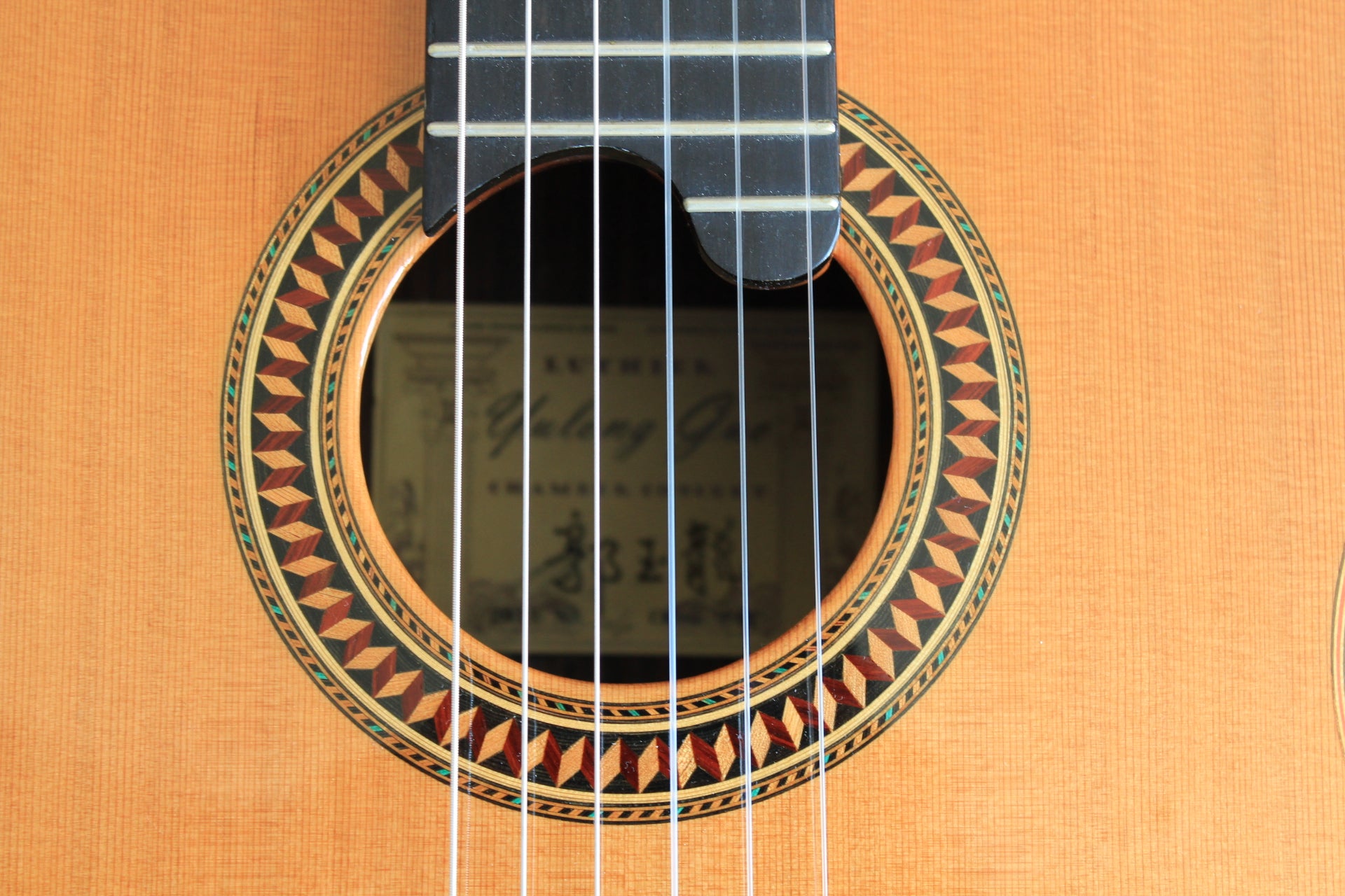 The Chamber Concert model by Master Luthier Yulong Guo is a world-class professional model concert guitar. The craftsmanship in the woodworking and finish are evident and matched by the wonderful acoustic properties of this beautiful guitar.