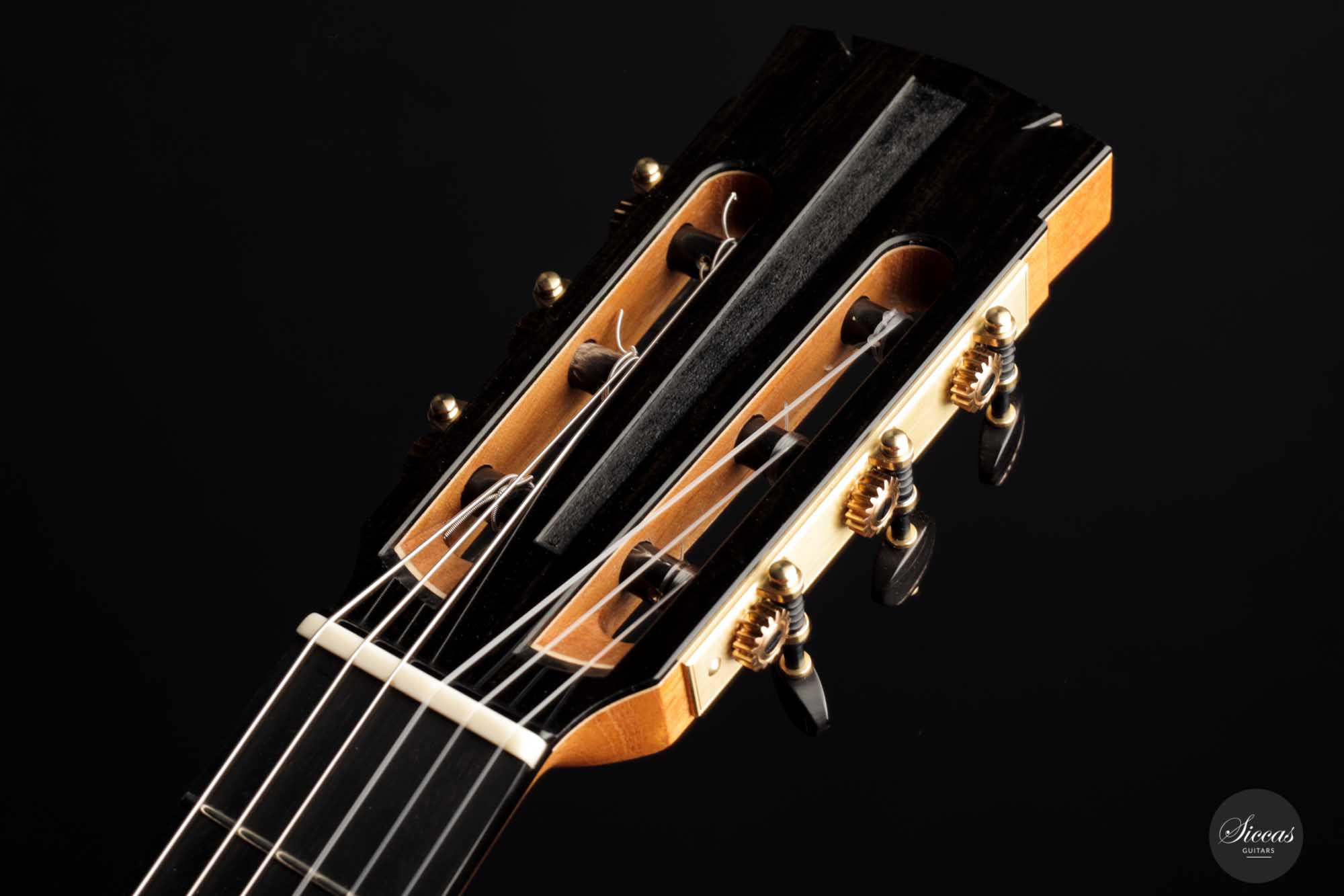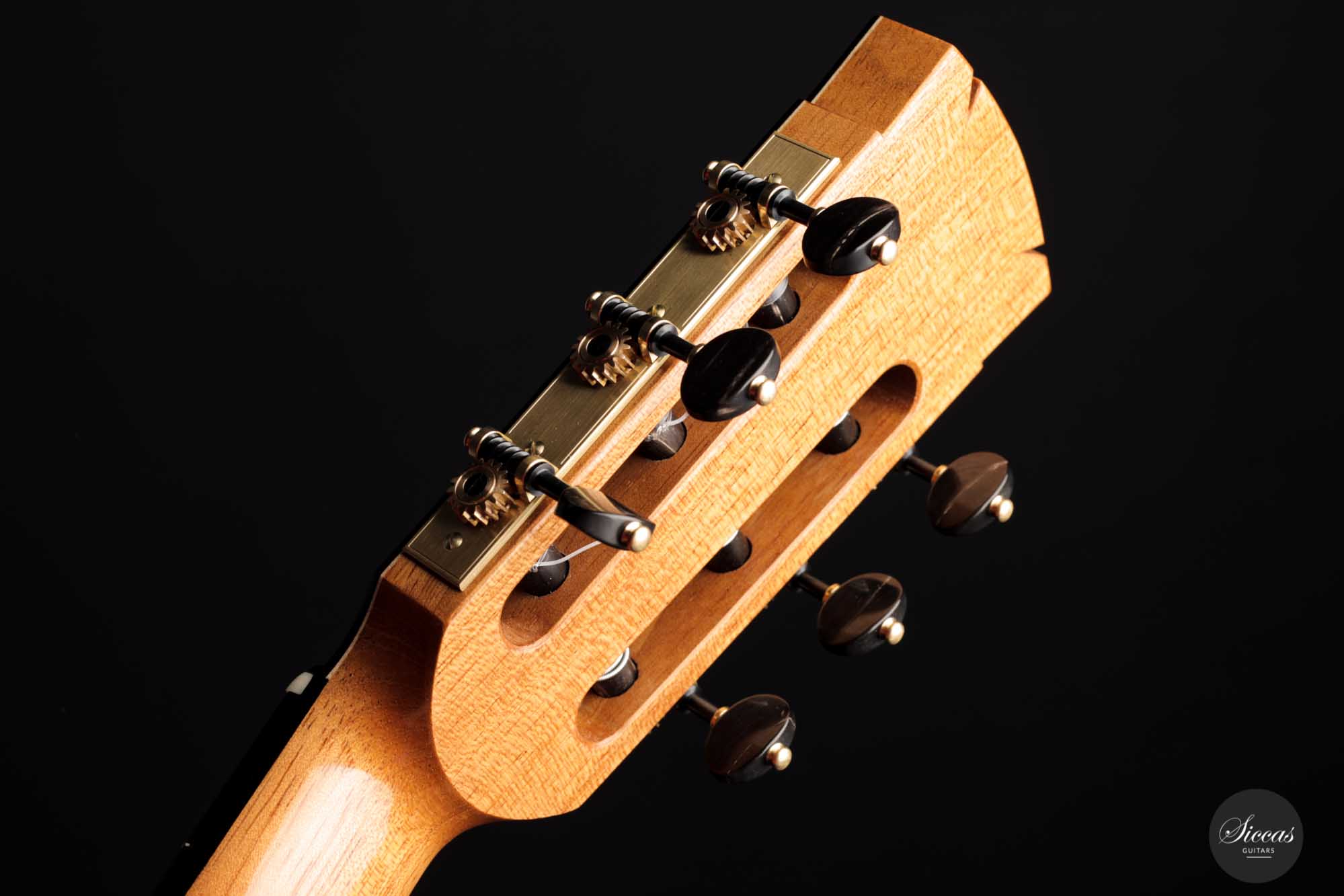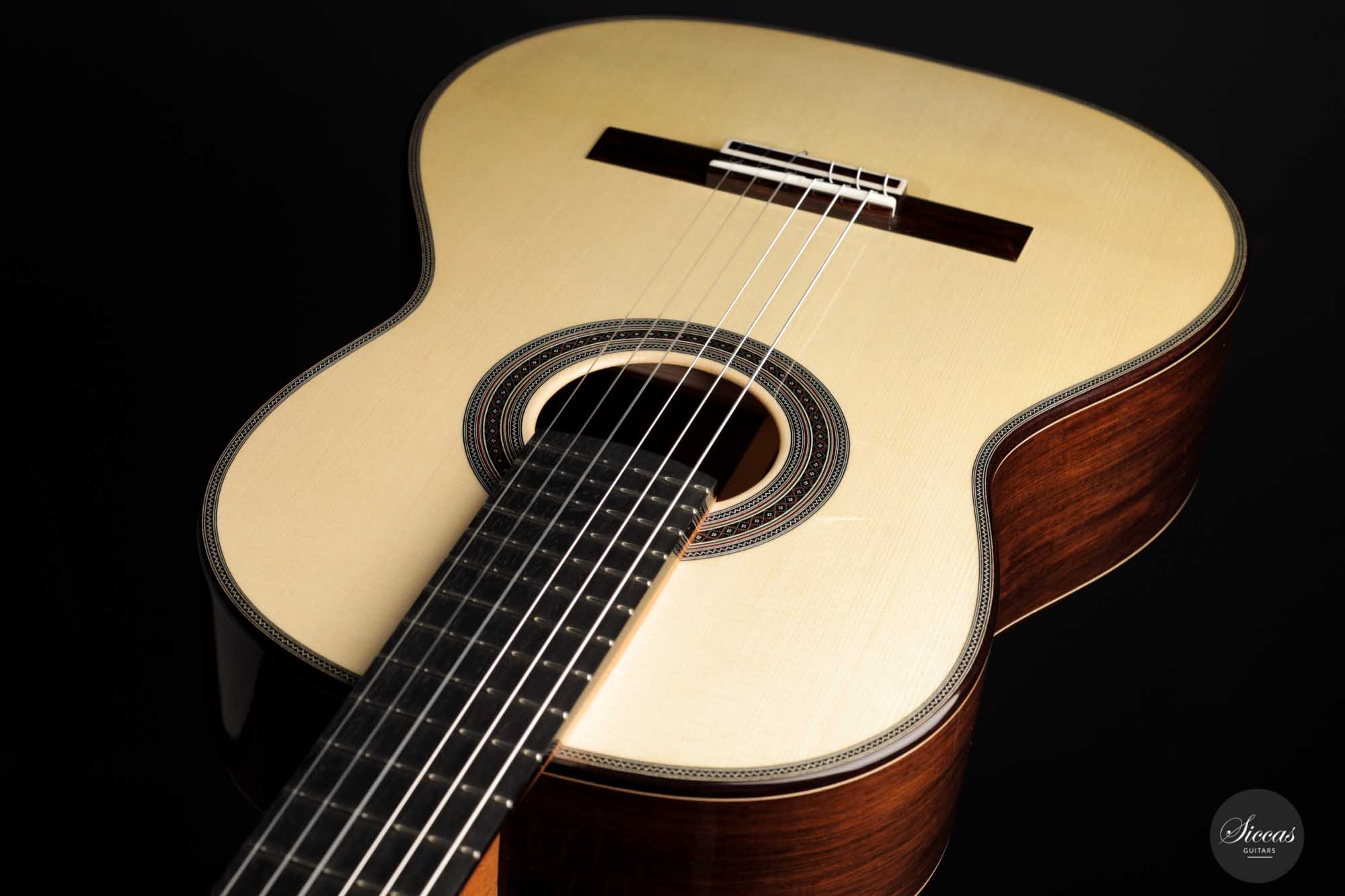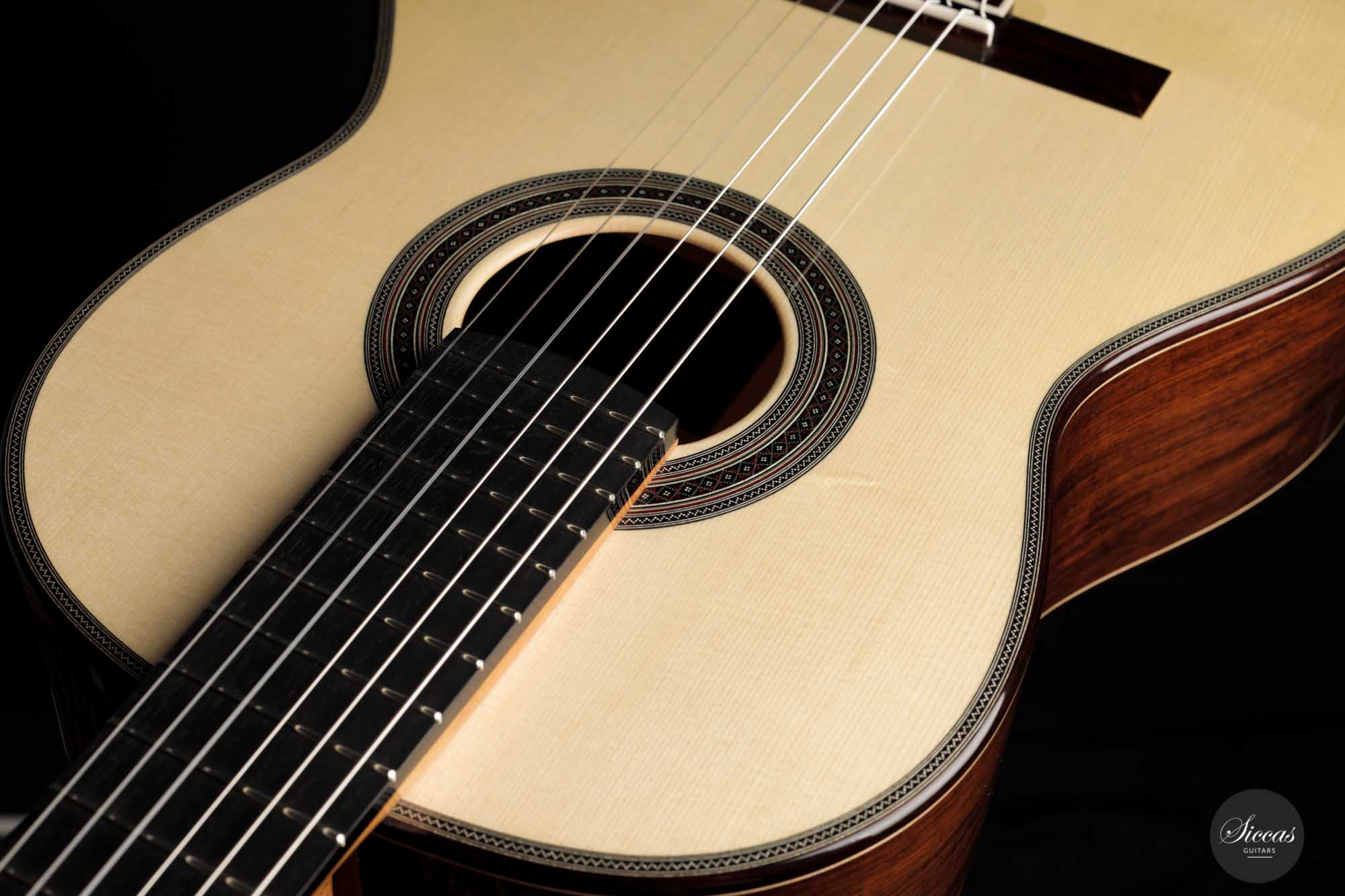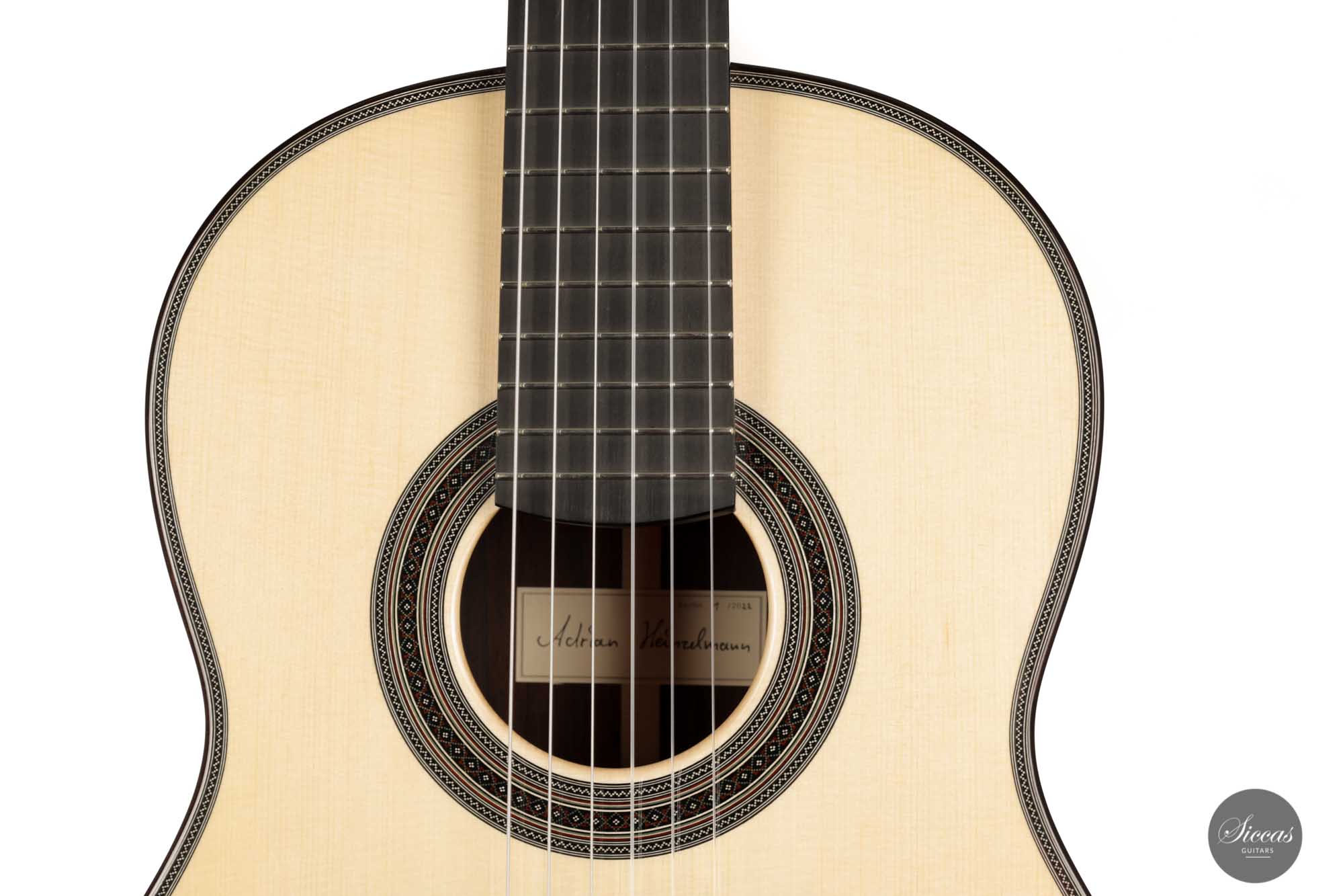His craftsmanship and the way Adrian Heinzelmann designs his soundboards are unique. Many narrow parallel trenches are carved in the inside of the spruce soundboard to optimize its weight and flexibility. This technique, combined with a lightweight lattice bracing, gives an instrument of great sensitivity and impressive volume. Playing Adrian Heinzelmann’ s guitar gives a feeling of confidence and pushes the guitarist to go beyond his limits.